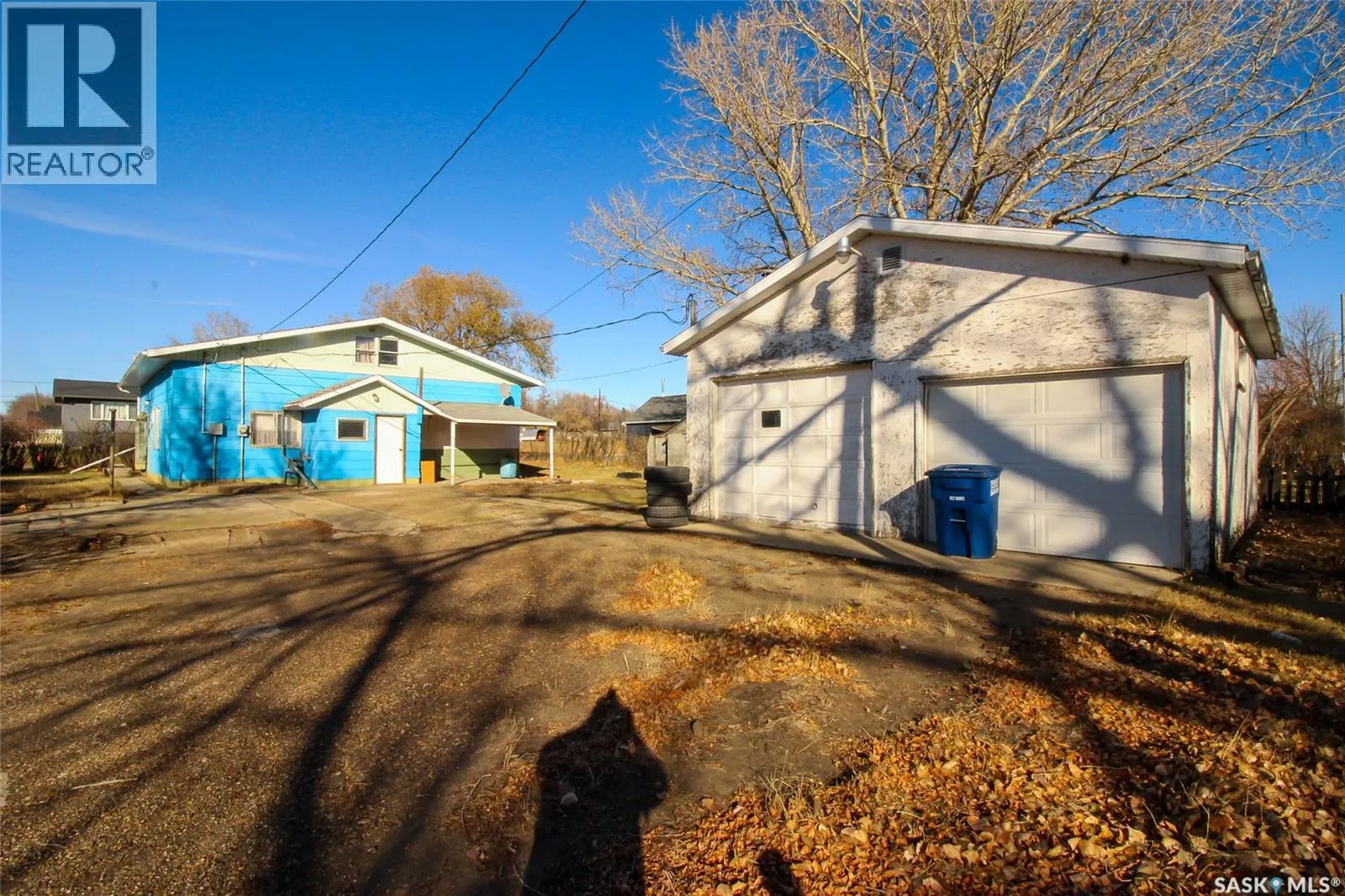 Discover the character and charm of this 3-bedroom, 2-bathroom home, perfectly situated on a large corner lot. This property offers a unique blend of vintage appeal and modern convenience, featuring a double detached garage that was previously used as a business. The garage is fully equipped with a 2-piece bathroom, hot water heater, furnace, office space, and two separate bays, making it ideal for a workshop, studio, or home-based business. Inside, the living room boasts a cozy wood-burning stove, with a convenient wood room off to the side for easy access. The spacious kitchen seamlessly opens to the dining area, creating a welcoming space for gatherings. The main floor hosts the primary bedroom and a laundry room with ample storage, ensuring convenience and functionality. The second floor has lots of space and two more good sized bedrooms. There is ample storage in the attic spaces and a 2-pc bath. There is a wonderful lounge space off the bedrooms as well. Don't miss the opportunity! (id:27476)
