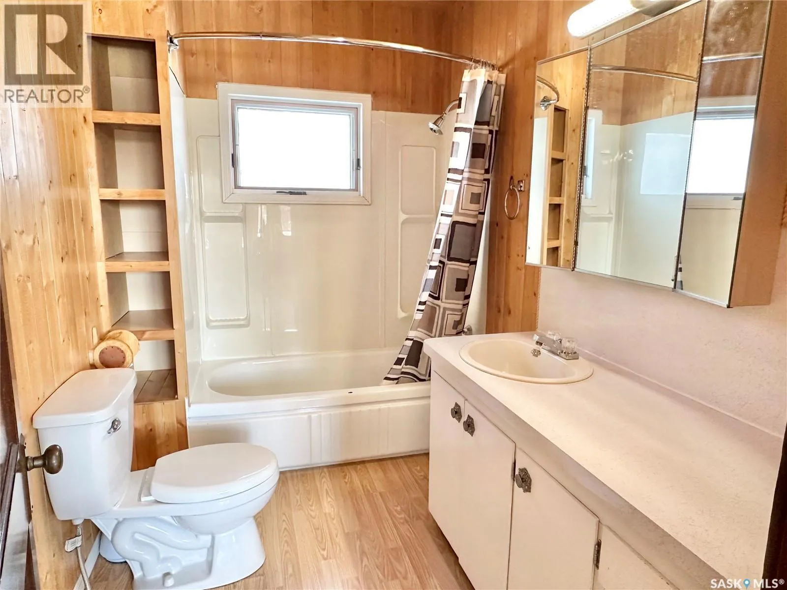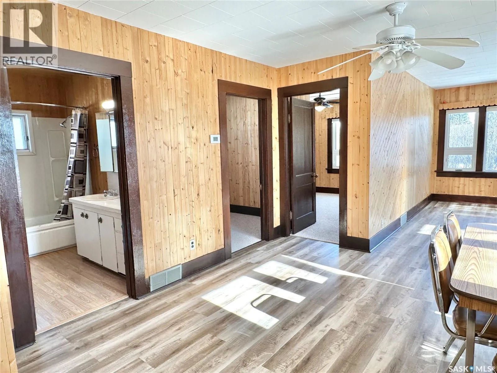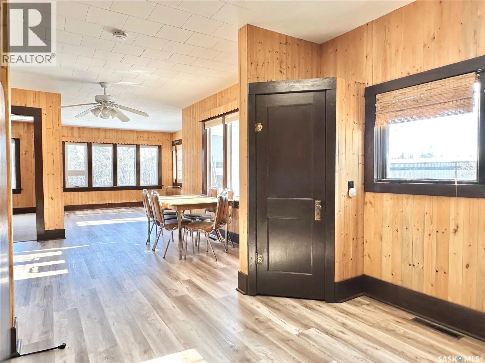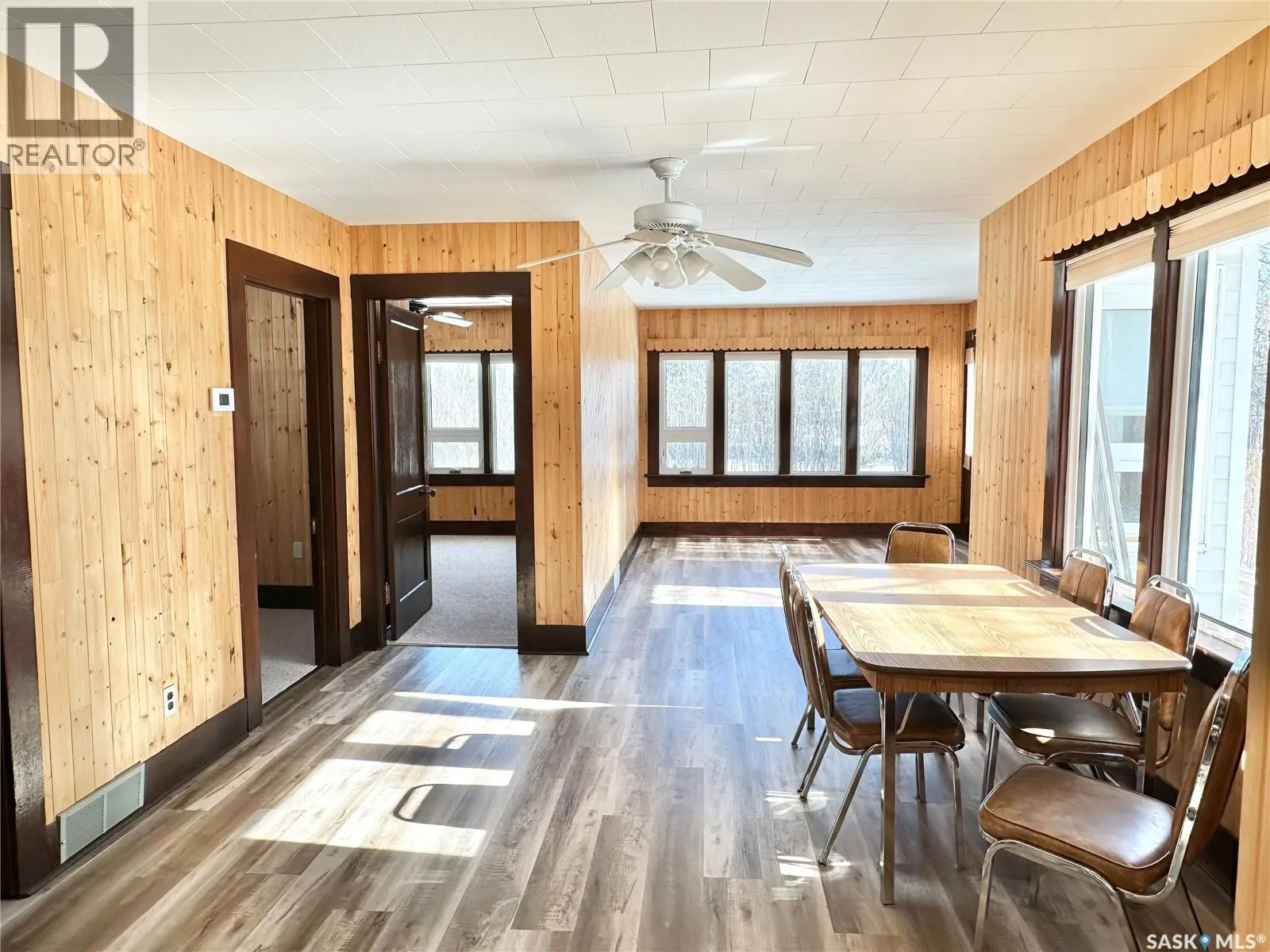 A lovely Family Home in Shell Lake community - This delightful bungalow is situated on a spacious corner lot (29,000 sq ft), providing plenty of privacy on Second Avenue West. Featuring three bedrooms and one bathroom, the home showcases pine walls throughout. Upon entering, you'll find a generous foyer that leads into the kitchen, and a large dining area. The living room boasts east and south-facing windows, granting access to a sizable deck. The home has central air conditioning so youâll always be nice and cool in the summer months at the lake!b The yard is adorned with mature trees and shrubs, creating a private outdoor environment. Recently, a 24x24 heated garage was added to accommodate your lake toys or keep your vehicles warm during winter. The property includes a brand new well (drilled in 2024) and has undergone several updates including the electrical service. This home has been well cared for, and has a high-efficiency furnace and a new water softner. The expansive yard is easy to maintain, offering space for children's play, RV parking, and ample storage options. Contact your REALTOR® to view! (id:27476)