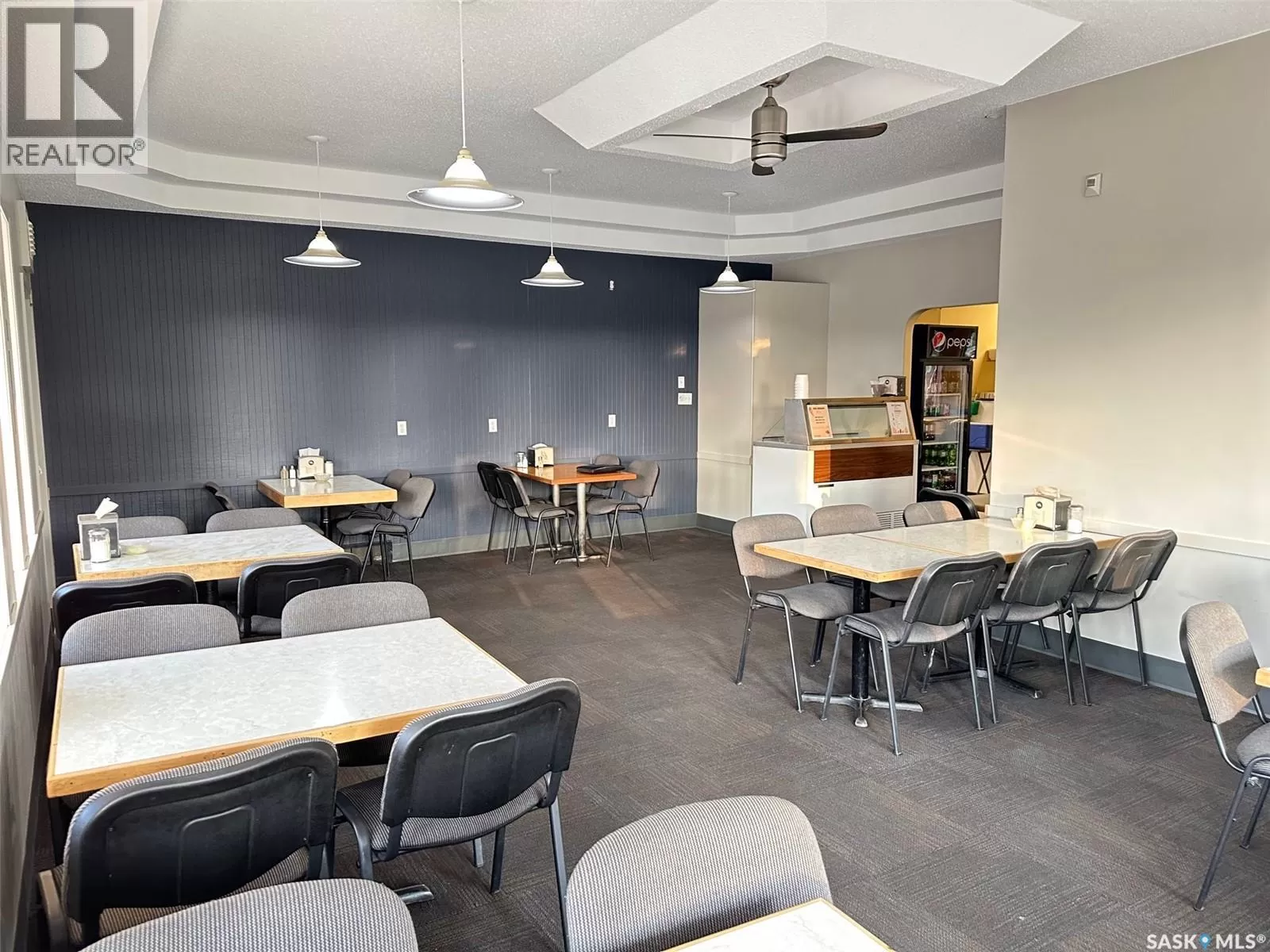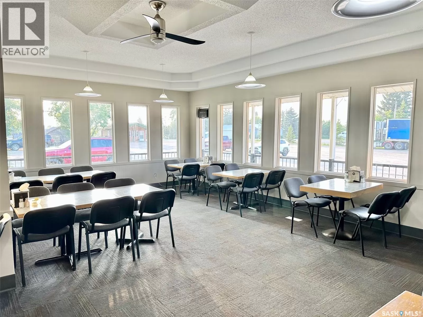 The Lark Restaurant is a staple in the bustling community of Shell Lake!! Here you will find the best food around in portions fit for a hungry belly. This property was built in 1991 and has served the community and its guests since. The building is 2134 sq ft with a full basement for storage. There are two âsidesâ to the main floor serving as two separate dining rooms. There is seating for 70+ inside and around 20 outside on the patio. The kitchen has seen some updates to the equipment, as well as the dining rooms over the last couple of years have been remodeled. The shingles were replaced in 2020, there are two floor model furnaces for heat, central air conditioning and the hot water tank was replaced in 2021. They currently are open 6 days a week from 10am to 7pm, in the summer they are open 7 days a week. Ideally operating with 6-7 staff in the winter months and more during the busy summer lake season. The lark enjoys fabulous views of Memorial Lake Regional Park Golf Course fairways and is right in the heart of the community. If youâre interested in taking over this well-established and loved business in Shell Lake contact your agent for more information. (id:27476)
