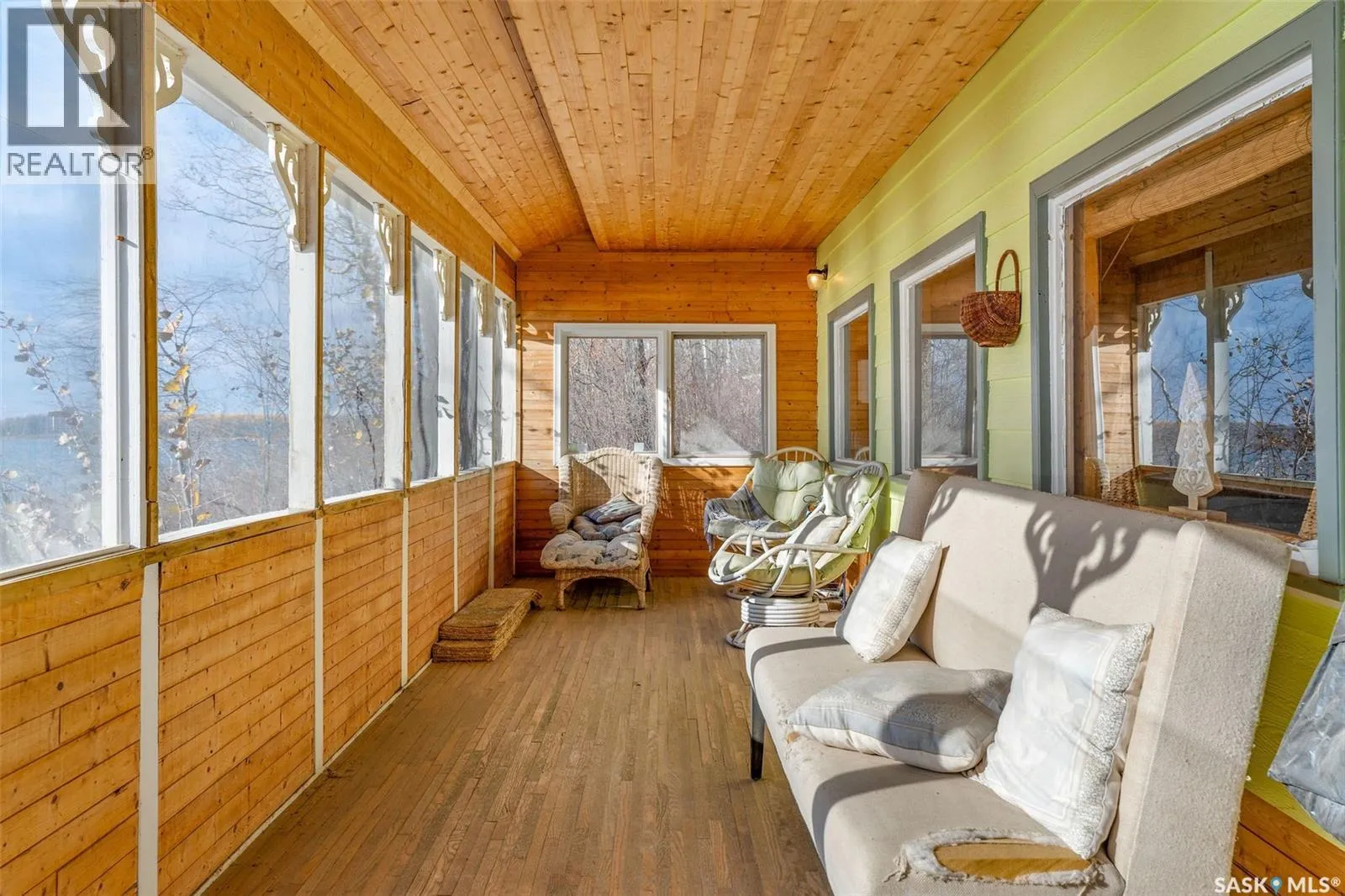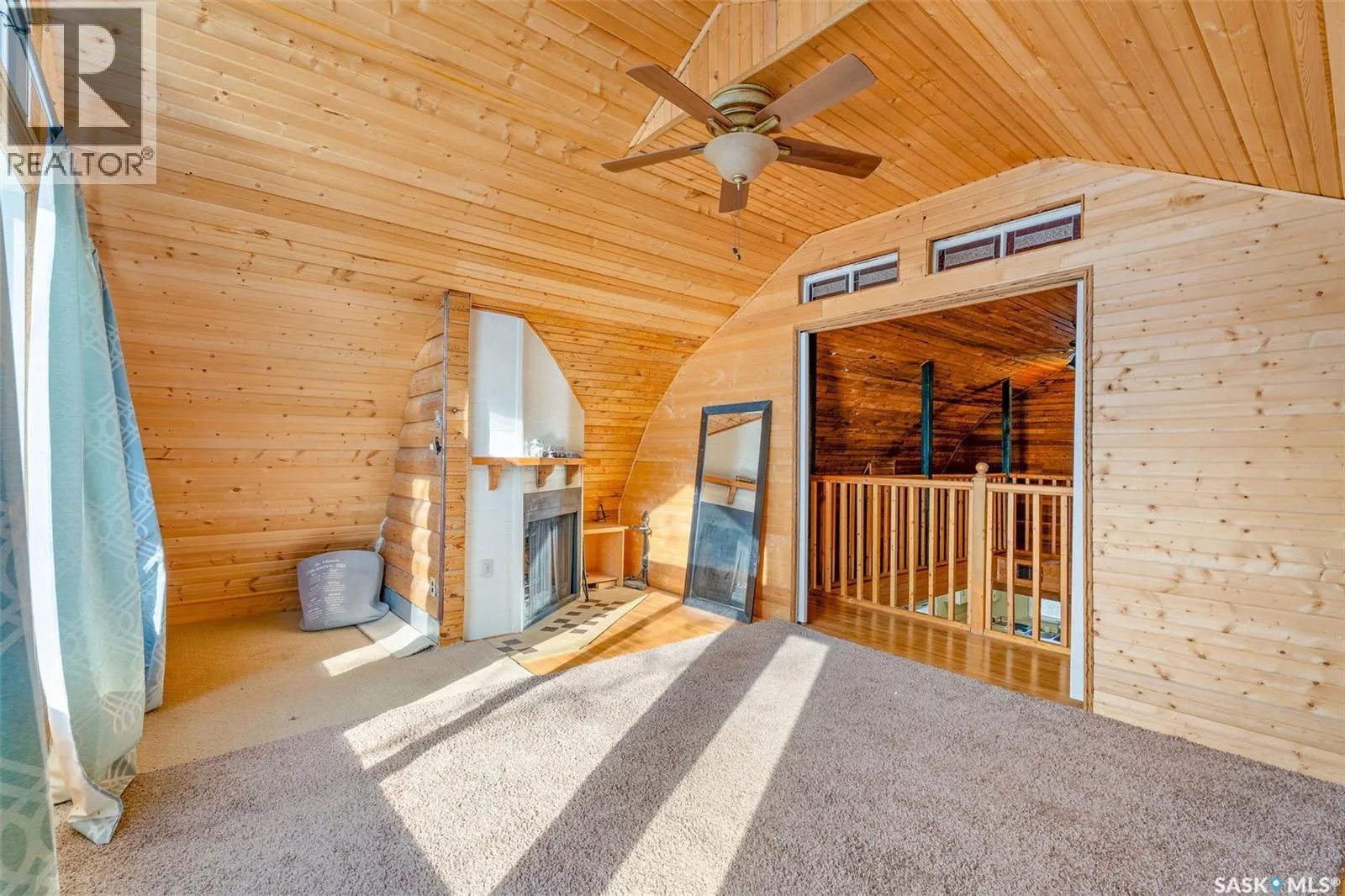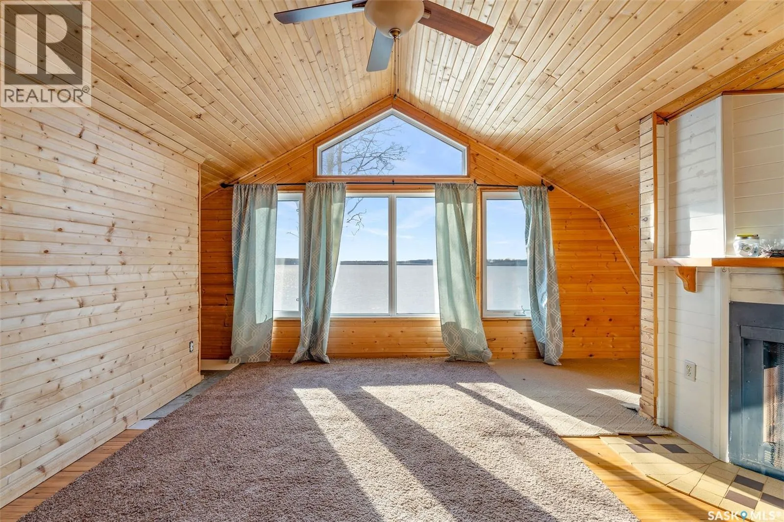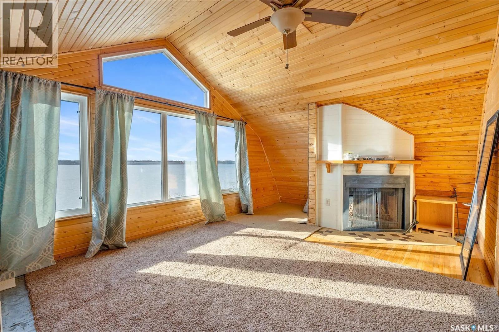 Escape to your own private lakefront retreat with this charming year-round cabin located at beautiful Round Lake. Nestled in a peaceful Co-op community, this property offers stunning views, cozy comfort, and everything you need to enjoy lake life in every season. The home features approximately 1,242 square feet of living space, including 864 square feet on the main floor and additional space on the upper level. There are three bedrooms, including a primary bedroom with a wood-burning fireplace, and a full three-piece bathroom on the main floor.The community was built around three guiding values: fostering a welcoming and social atmosphere among residents and their guests, maintaining the property as a peaceful and affordable retreat, and preserving the natural surroundings to protect local wildlife and birds. In keeping with these values, the use of motorboats, ATVs, and snowmobiles is not permitted. If youâre seeking a serene lakefront experience and a slower pace away from the busier northern lakes, this could be your ideal getaway. The sunroom provides a relaxing spot to take in the lake views, while the wraparound deck is perfect for entertaining or unwinding outdoors. A detached 20 by 20 foot garage offers storage and workspace, and the property also includes a shed and outhouse for added convenience. Appliances include a natural gas stove, fridge, wine cooler, microwave, washer, dryer, and hood fan. The home is heated with a natural gas forced-air furnace and has an electric water heater. Water is supplied by eight 1,000-litre holding tanks, and the lot offers excellent privacy with approximately 60 feet of brush separating it from neighboring properties. (id:27476)