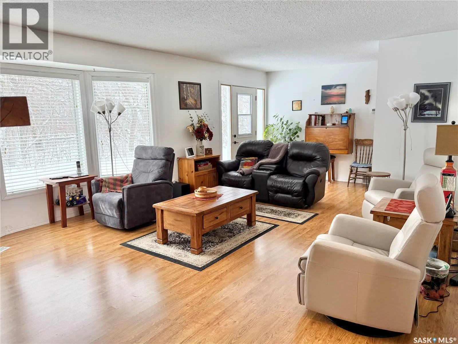 Nestled on a private 2.12-acre lot just 5 miles from town, this charming 1480 sq ft bungalow offers the perfect blend of modern comfort and serene country living. With 3 spacious bedrooms and 3 bathrooms, the home has been beautifully renovated, featuring laminate flooring throughout, updated doors and windows, and maintenance-free stucco siding. The main floor also includes a convenient laundry area, while the expansive, nearly finished basement with a concrete foundation boasts a large family room and a generous officeâideal for those working from home. Surrounded by lush trees, the property provides a peaceful, private setting, complete with a fire pit area for summer lounging, a garden space, and a cold storage room for vegetables and canning. Large triple-pane windows flood the home with natural light, and the low-maintenance yard offers plenty of room to enjoy the outdoors. With plenty of storage and a warm, inviting atmosphere, this home is a true retreat. (id:27476)