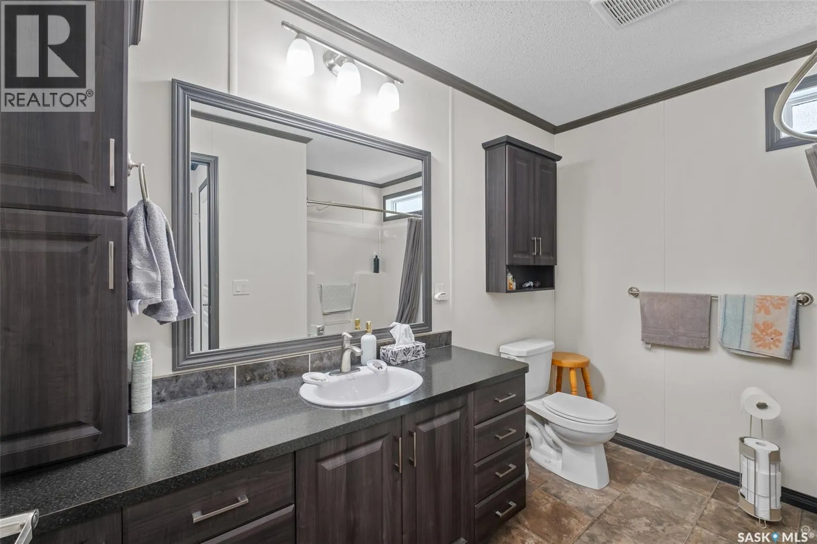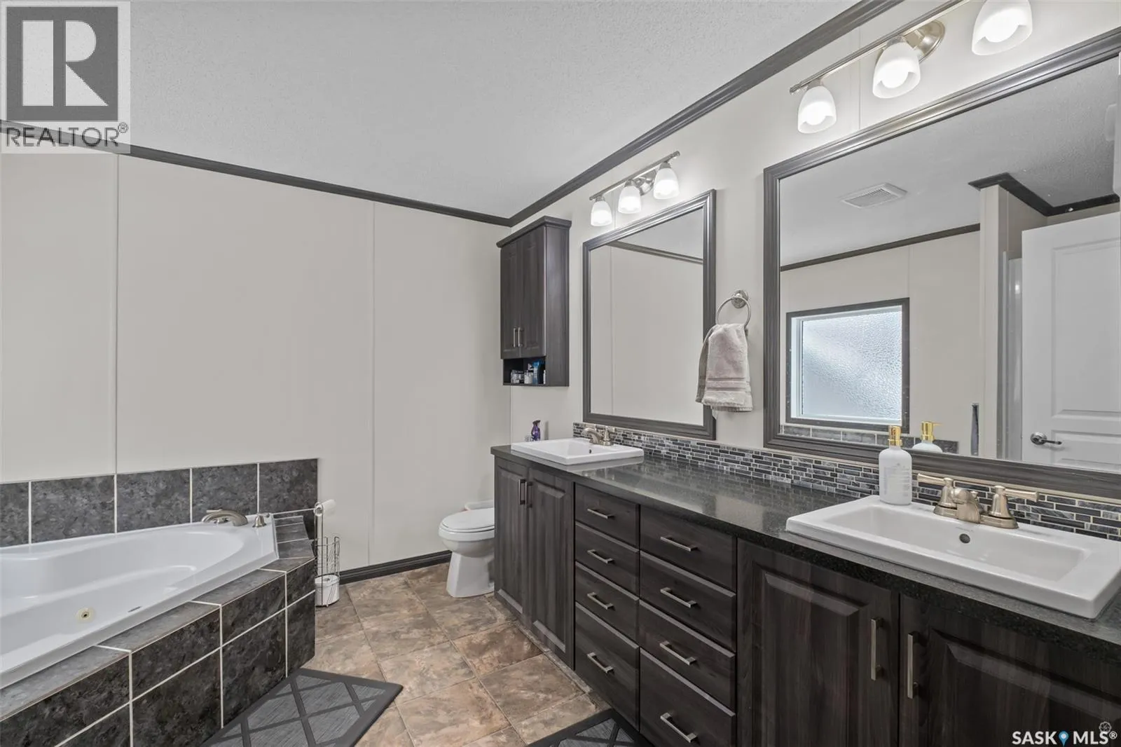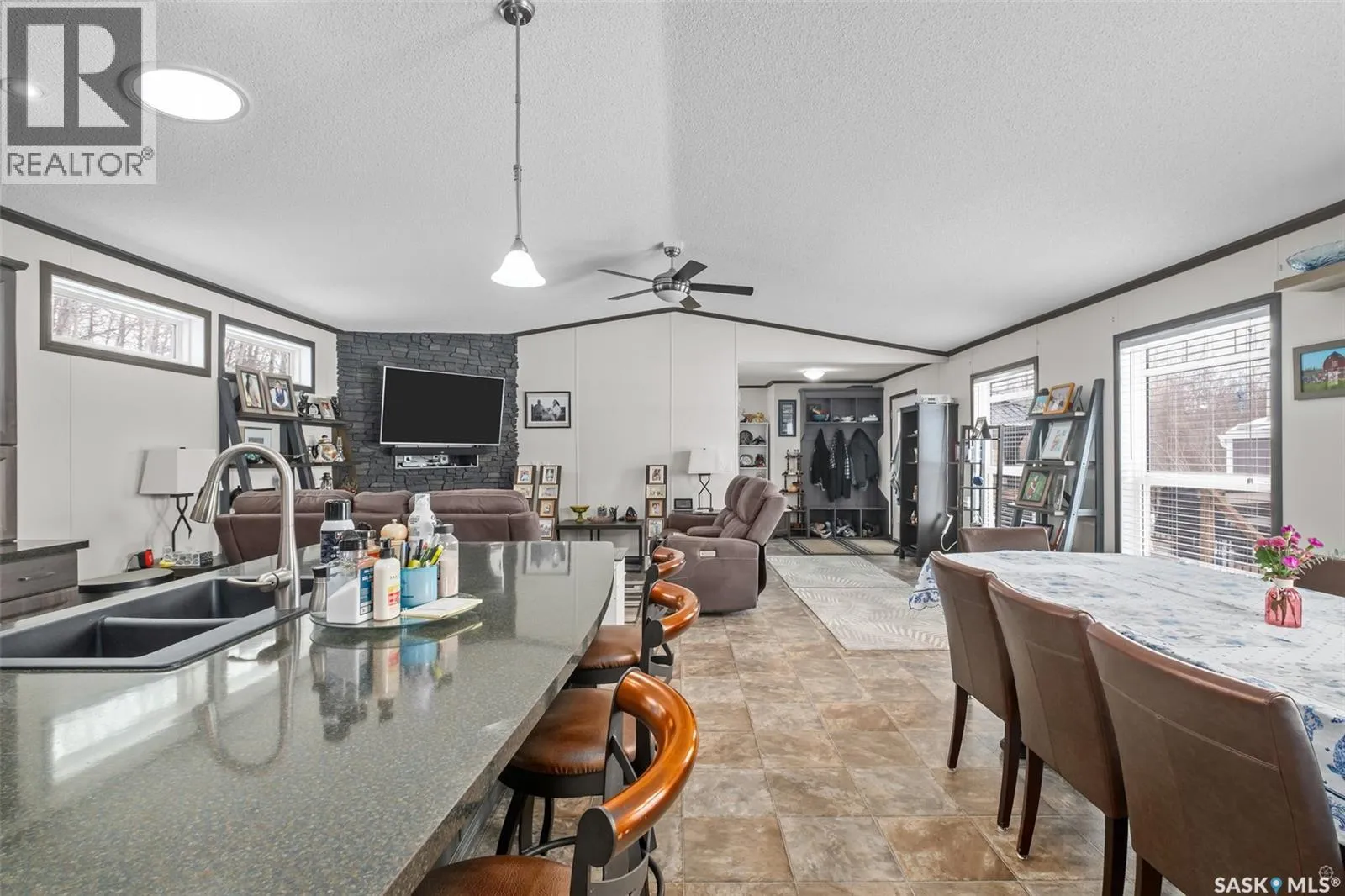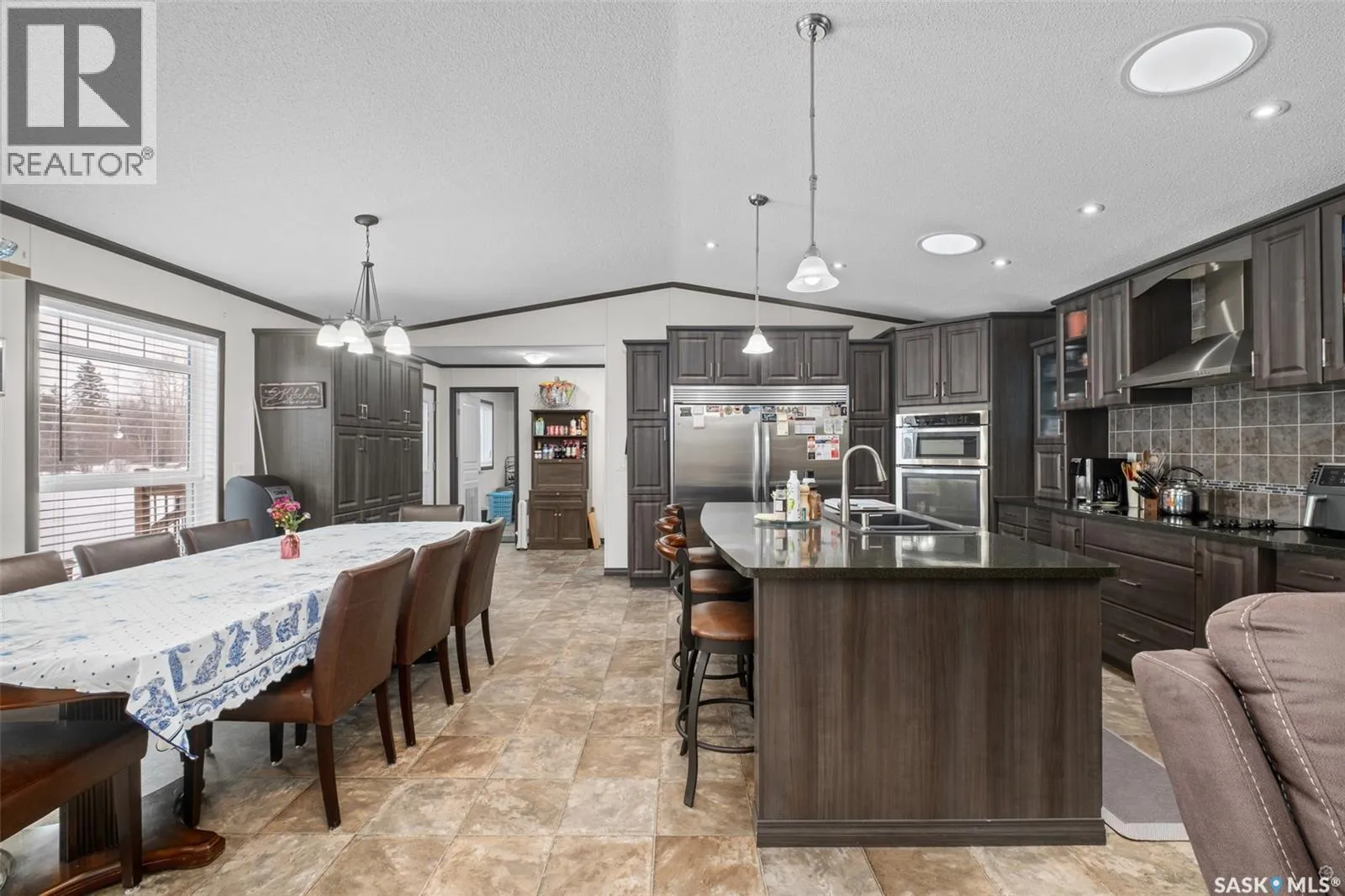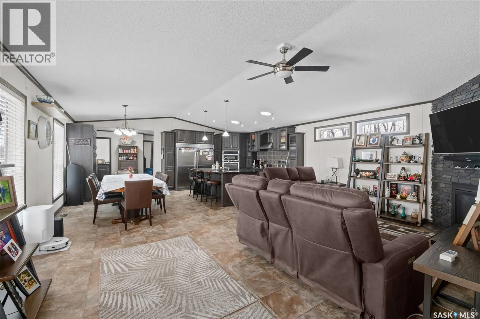 Exceptional 2016 built 3 bedroom and 2 bathroom premier show model manufactured home offering spacious design, quality finishes and small town living just minutes from the city. The open concept main living area is bright and beautifully laid out with vaulted ceilings, an abundance of windows and stylish pot lighting that enhances the modern feel throughout. The living room features a cozy gas fireplace with a dark grey stone surround and the dining area offers plenty of space for a large table. The kitchen showcases rich dark brown cabinetry, stainless steel appliances, an oversized fridge and freezer, built-in stovetop with stainless steel hood fan, built-in oven and microwave and a massive island with bar seating that makes gathering effortless. The primary bedroom offers a private retreat complete with a generous walk-in closet and a luxurious 5 piece ensuite featuring a jacuzzi tub, dual sinks and a stand up shower. Two additional well sized bedrooms, a full 4 piece bathroom and a convenient laundry room with its own sink complete the thoughtful layout. The property includes mature trees and a spacious deck ideal for relaxing or entertaining. A 24 x 30 heated two car garage with 10 foot ceilings and spray foam insulation provides ample space for vehicles, storage or a workshop. Located in the welcoming community of Holbein, just 20 minutes from Prince Albert and 10 minutes from Shellbrook, this property delivers rural charm and everyday convenience. A fantastic opportunity to enjoy modern comfort in a quiet small town setting. Call today to take the next step. (id:27476)