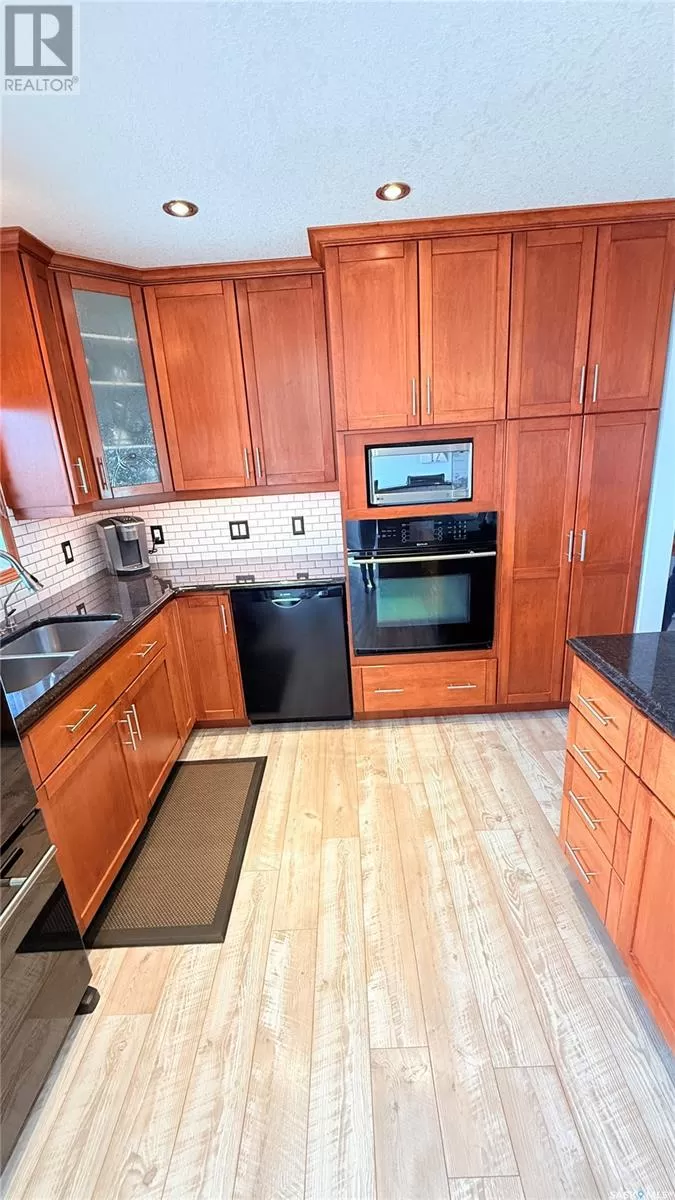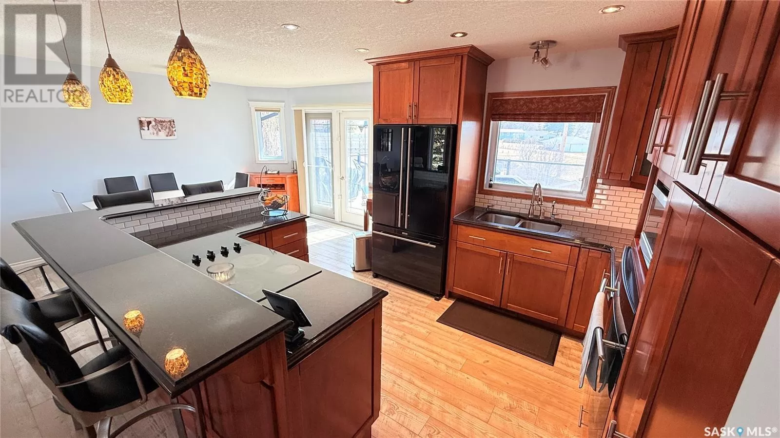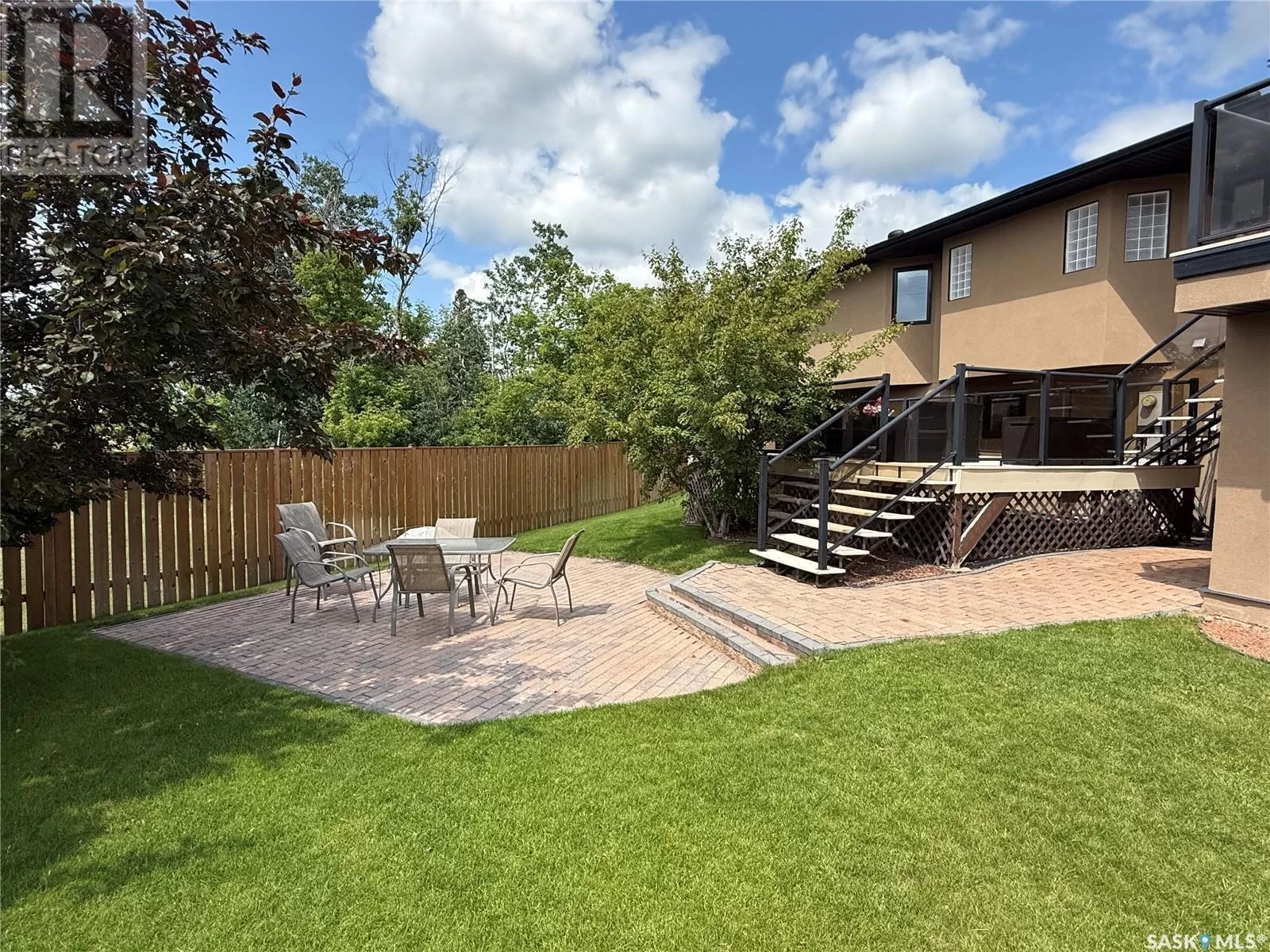 Shellbrook Family home at its finest! Situated on a quiet cul-de-sac, not only can you enjoy your fully fenced backyard with options to garden, sit and relax on the raised deck, soak in the hot tub or enjoy a fire on the ground level patio and firepit area, you could also watch the kids from your home enjoying their time at the beautiful town playground park or outdoor pool! The dwelling boasts room for all the family with its open concept living area including the custom designed kitchen with maple cabinets and granite countertops with adjoining dining area, all overlooking the backyard and park which also is open to the living room making this a great area for entertaining. 4 bedrooms on the main level, include 2 kidâs rooms with walk in closets and the stunning master bedroom with its bright and open ensuite with large tile surround shower and his/her soaker tub. The lower level provides full walk out access to the backyard from the sprawling family room where the real entertaining takes place. Combine the large sitting area to watch your favorite movie or big game with the games area, this family room is the sellerâs favorite area to relax and overlook the backyard. This well-designed home has made is especially easy for the home-based business owner with direct private access to the homebased office space and adjoining den currently used as an exercise space. The built-in 4 car heated garage provides space for your vehicles or toys. Shingles and acrylic stucco and fencing updated in the past 4 years and maintenance free decks makes this an easy home to just move into and enjoy! (id:27476)