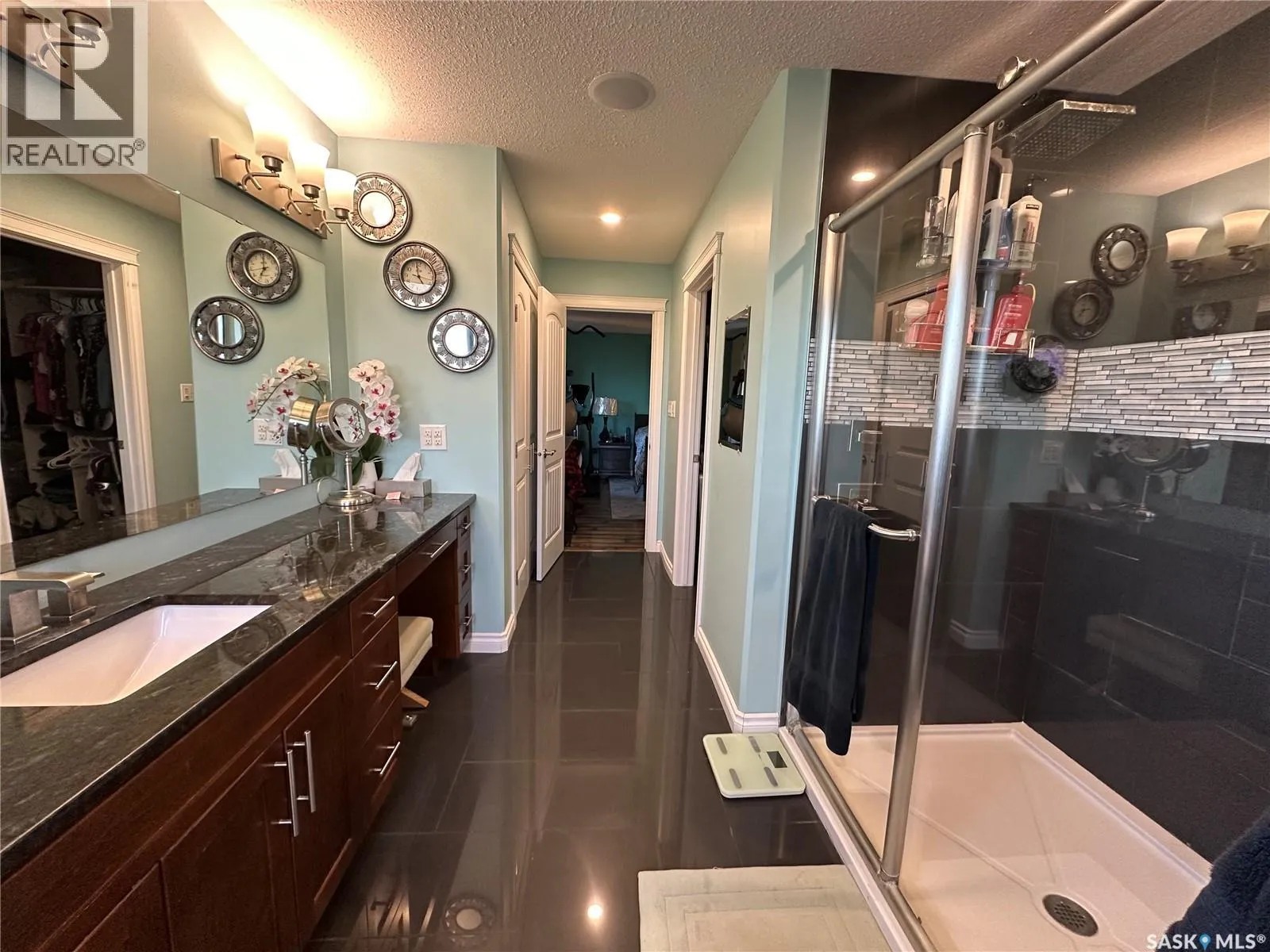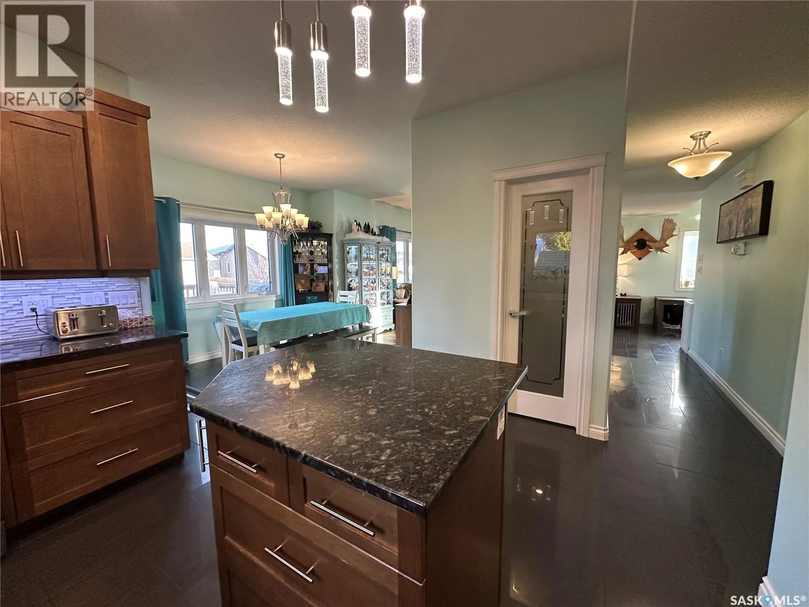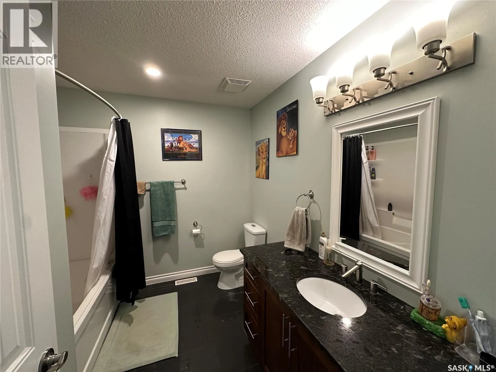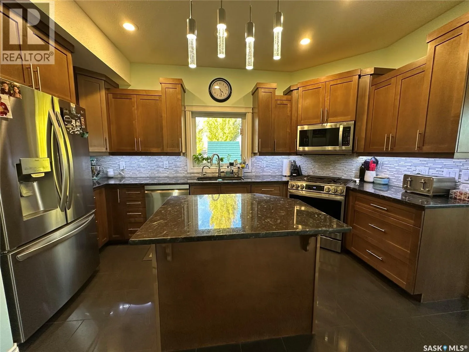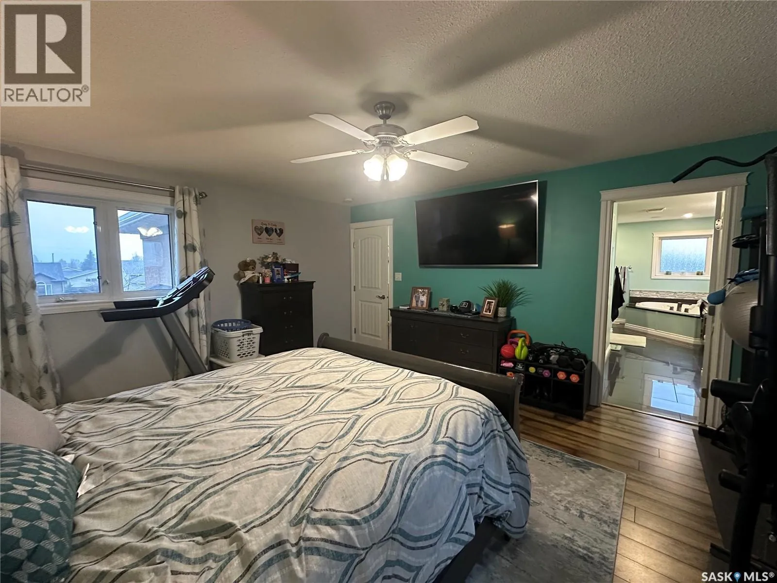 This 2 Storey Family home in Shellbrook is a must see. Built in 2013 this 4 +2-bedroom home offers over 2300 sqft on 2 levels, plus the fully finished basement. The spacious entrance way invites you in with its stylish ceramic tile floors and French Doors leading to the private office space. The large family room flows nicely into the main dining area before you enter the beautiful kitchen with island, maple cabinetry and granite countertops featuring a brand-new natural gas 4 burner stove. Finishing off the main floor is the large laundry room and 2 pc bath. The 2nd level boasts 3 large kidâs bedrooms and bath, in addition to the impressive master bedroom and beautiful ensuite with Jacuzzi tub, ceramic tile shower and large walk-in closet. The fully finished basement provides lots of extra space for the kids in the family room, 2 more bedrooms and full bathroom. The oversized heated double garage offers additional workspace. This spectacular home is situated on an oversized lot with a maintenance free fence enclosing the yard complete with the kids play structure, hot tub, fire pit area and a 12 x 16 shed with concrete floor for the toys. Extra RV Parking included. (id:27476)