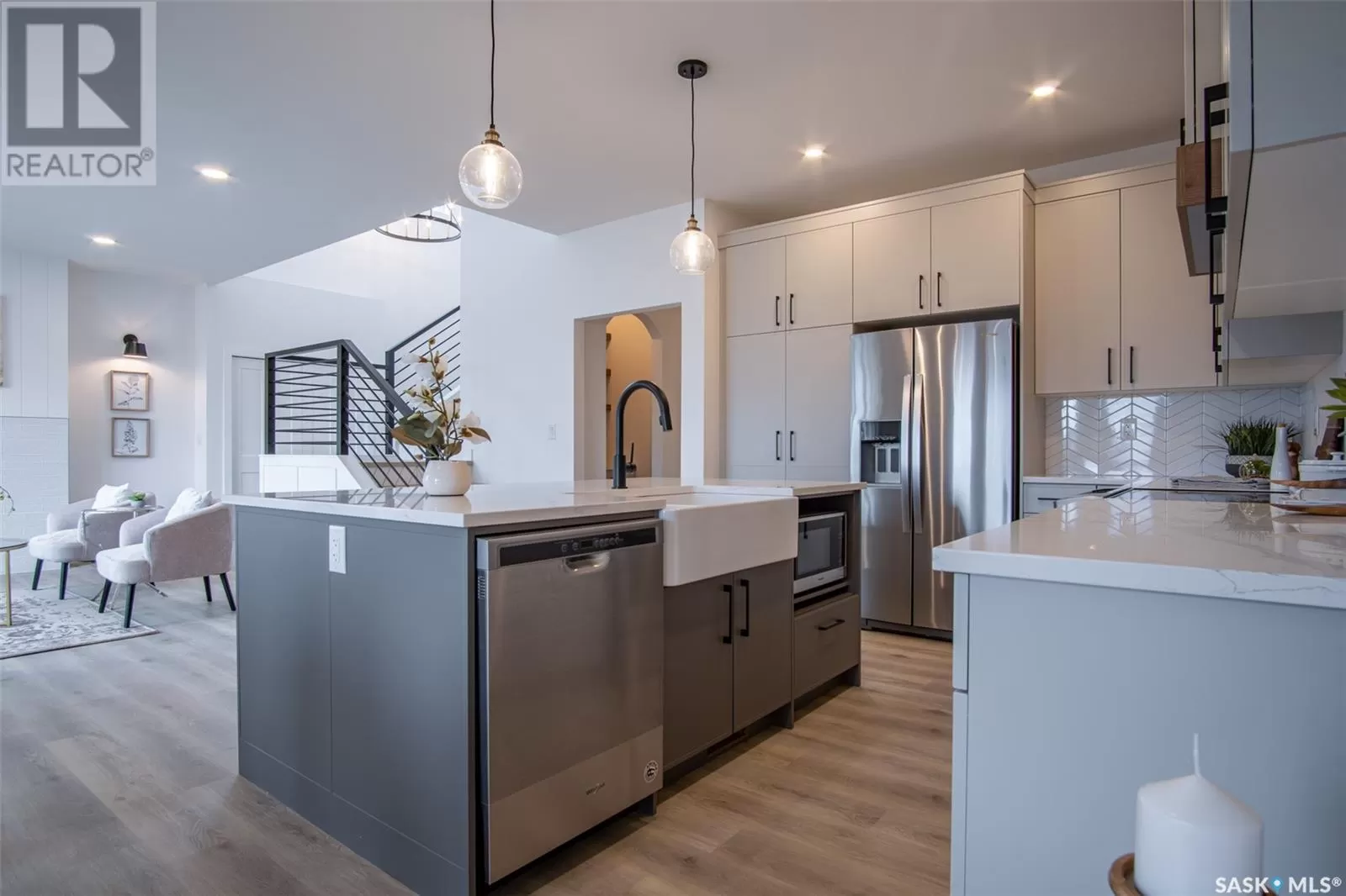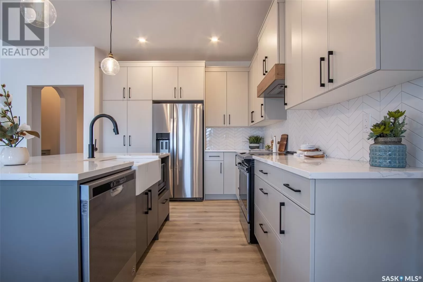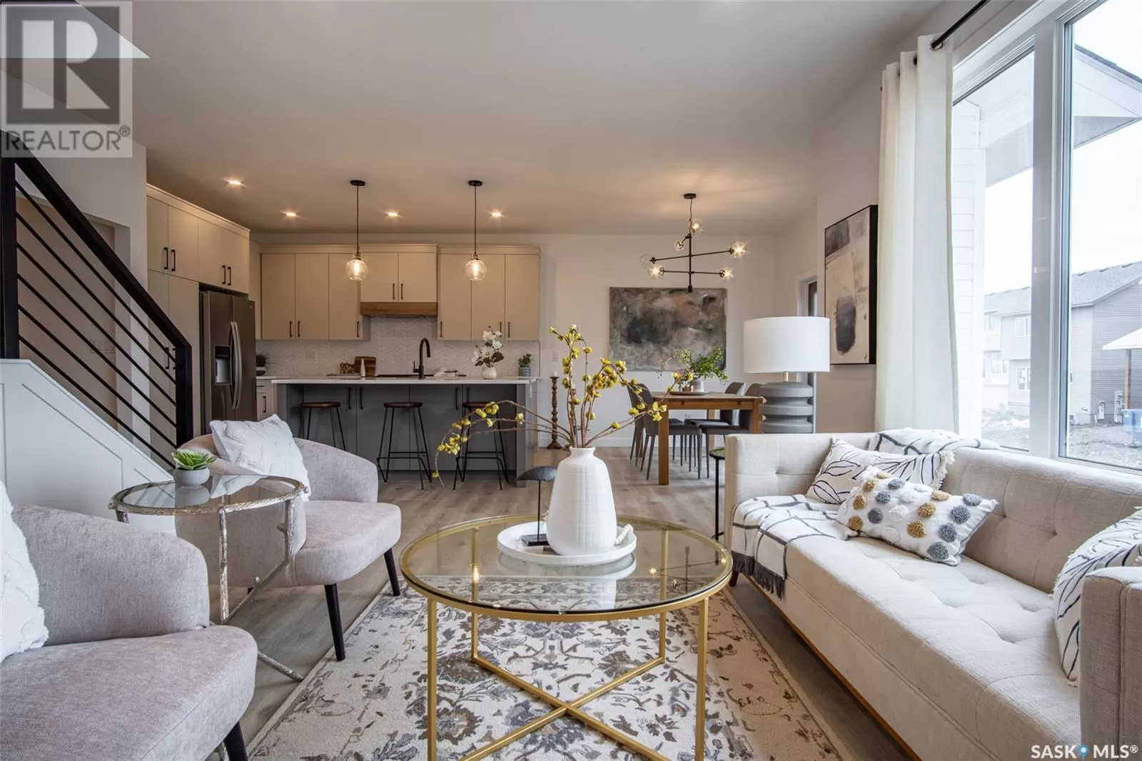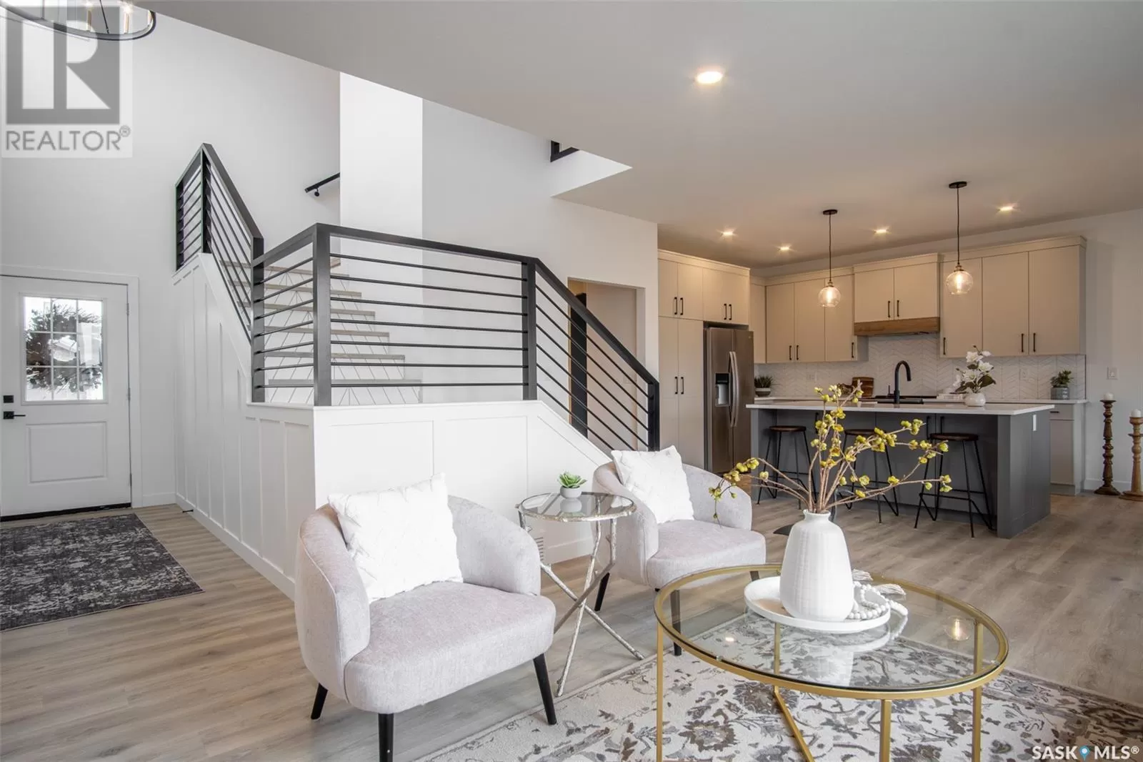 Located in the Sunterra Ridge development on Blackstrap Lake Please note: Exterior photo is a rendering. Other photos are from a previous build. This home is not yet built. Welcome to the Muriel 2.0! This award winning 2,051 sq. ft. two-storey walkout is designed by local builder Bronze Homes, and is set in the picturesque community of Sunterra Ridge. This home backs onto the Shields Golf Course and Blackstrap Lake, offering peaceful lake living just 25 minutes from Saskatoon. Located in the Resort Village of Shields, residents enjoy a vibrant, active lifestyle with access to a golf course, beaches, lake access, parks, a multi-sport court, ball diamonds, a community centre, and local clubs - perfect for families, retirees, and anyone seeking a balanced lifestyle. From the moment you walk in, the soaring ceilings in the front entry make a grand impression. The main floor features an open-concept living space, ideal for entertaining, with a spacious kitchen complete with a coffee pantry for added convenience and style. Upstairs, you'll find three generously sized bedrooms, including a luxurious primary suite with a spa-like ensuite and walk-in closet. The walkout basement opens onto a large lot backing the golf course, providing flexible space for future development and seamless access to nature. A triple attached garage and large lot offers room for all your toys. Now is the perfect time to customize your finishes and tailor this stunning home to reflect your personal style. Additional lots available at different price points. Reach out with any questions! (id:27476)