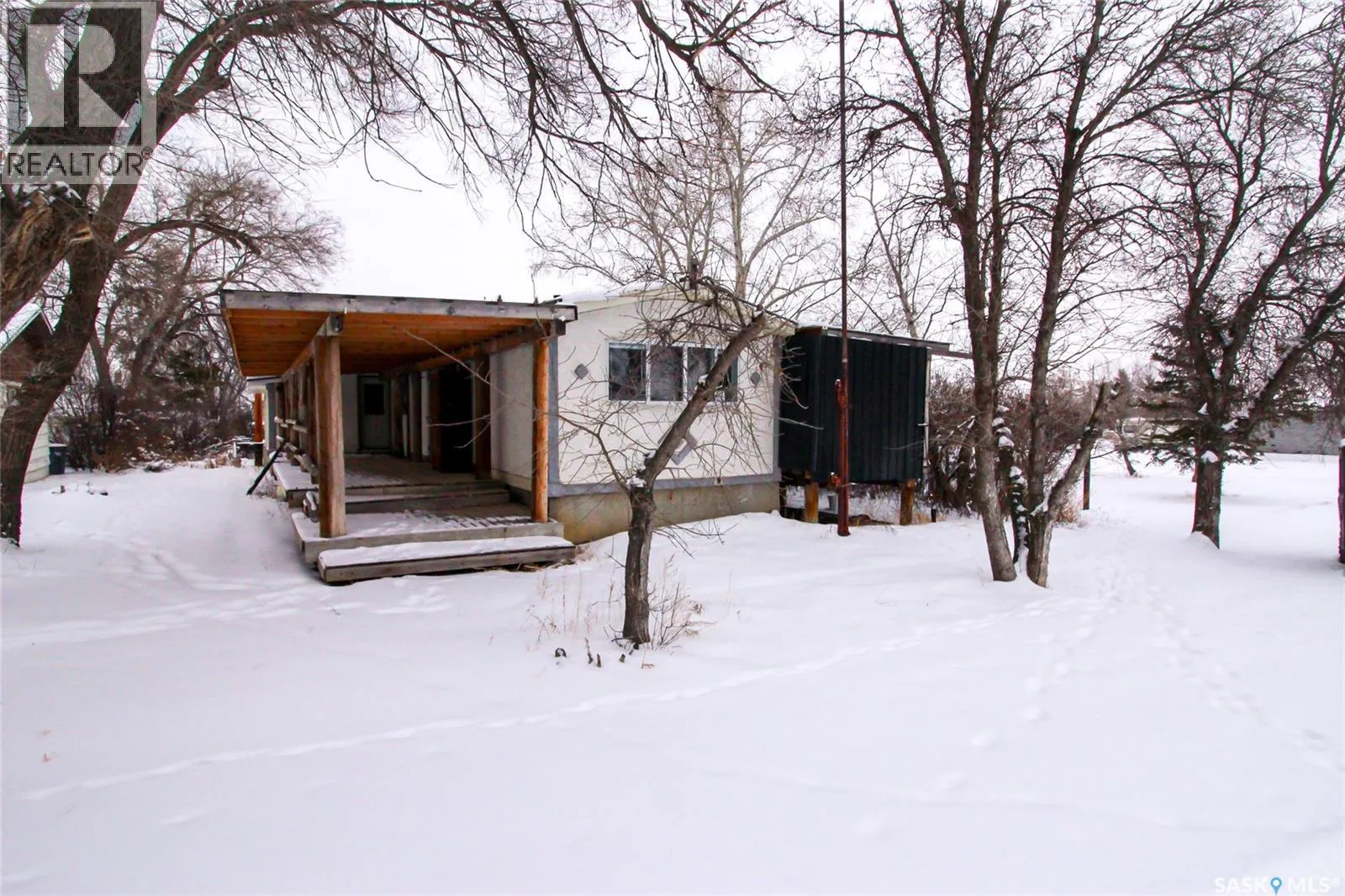 Bring your fishing rod and move into the best cottage in Simmie, SK just steps from Duncairn Dam. This property is a double lot site on a corner with all the amenities you are looking for. The home is a mobile home, set up on a full preserved wood basement. Lots of loving care has been put into this home with, upgraded electrical panel, new natural gas furnace, new hot water heater and an all metal roof. The home is pretty unassuming from the street but features two large covered decks for all of the outside enjoyment. The home has an open kitchen to living room space with neat laminate flooring and access to the deck through garden doors. There are two bedrooms with tons of closet space and the main floor bath is fully renovated with ceramic tile and a modern look. The lower level is framed out for various rooms and rough plumbed for a bathroom. With all this space, there is room to add any out building you are interested in, the current Atco Trailer on the site is slated to be moved in the spring so there is plenty of room for a garage. Affordabe and peaceful this property has location locked in and is ready for you. (id:27476)