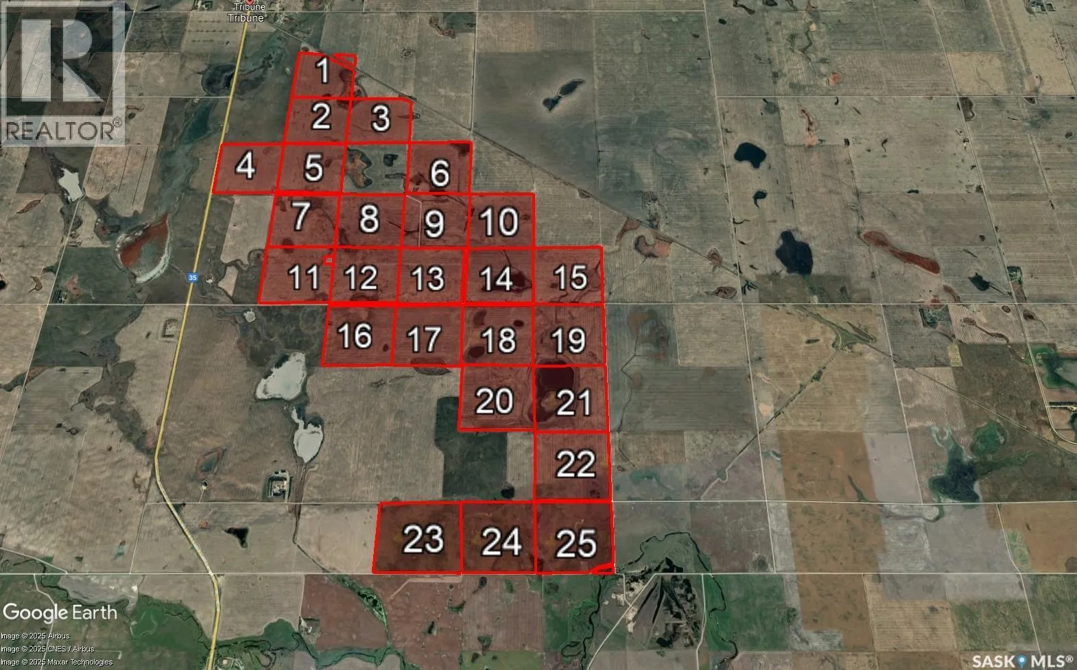3956 Acres 1.5 Miles of South of Tribune This is a rare opportunity to acquire a premier large-scale grain operation in the heart of southern Saskatchewan. Situated just one and a half miles south of Tribune, this remarkable property includes 25 quarter sections of highly productive farmland, all in a continuous block â a configuration that is exceptionally hard to find in todayâs market. The total land base encompasses 3,956.56 acres, and 3,462 cultivated acres from the Sama records. The layout of the farm allows for efficient, uninterrupted farming practices with minimal wasted space, thanks to its large, corner-to-corner fields and excellent access throughout the entire property. The property comes with two bin yards that include 21 grain bins. The bins include a mix of flat-bottom and hopper styles, providing flexibility for storing grain, seed, or fertilizer. This farm is strategically located just 40 miles west of Estevan and 30 miles south of Weyburn, placing it within easy reach of major service centers, grain terminals, and the U.S. border â making logistics and cross-border trade efficient and accessible. The land is currently leased for the 2026 crop season to a strong local operator and is available for the 2027 season. With a total assessed value of $6,182,800 and an exceptionally rare block of 25 quarter sections, this property stands out as a top-tier investment opportunity in Saskatchewanâs farmland market. Whether you are expanding an existing operation or investing in one of the provinceâs most valuable assets â quality farmland â this is a package that delivers scale, quality, and long-term potential. Contact S/A agent for additional information. (id:27476)