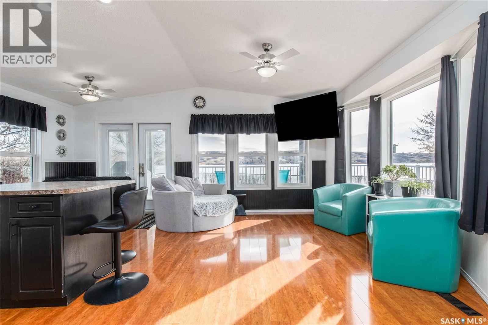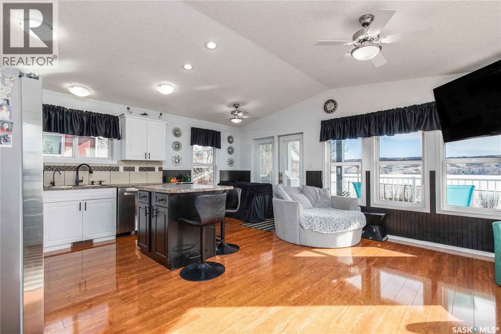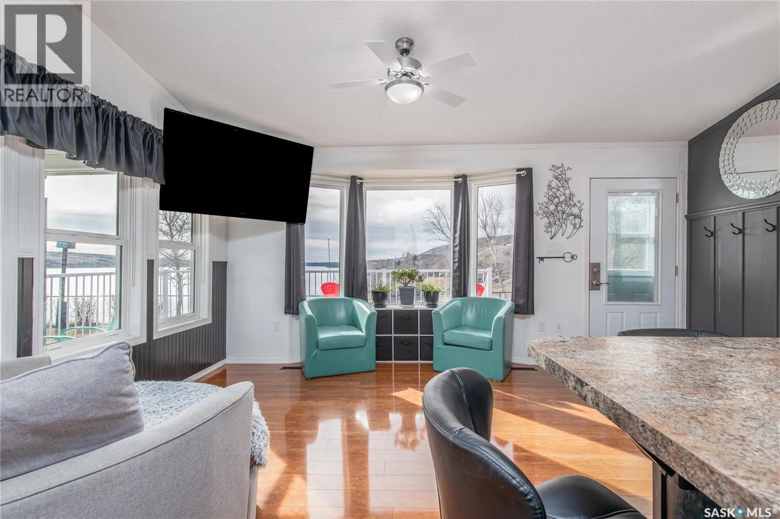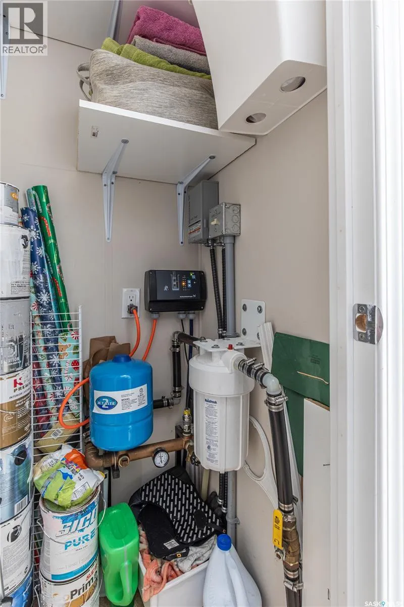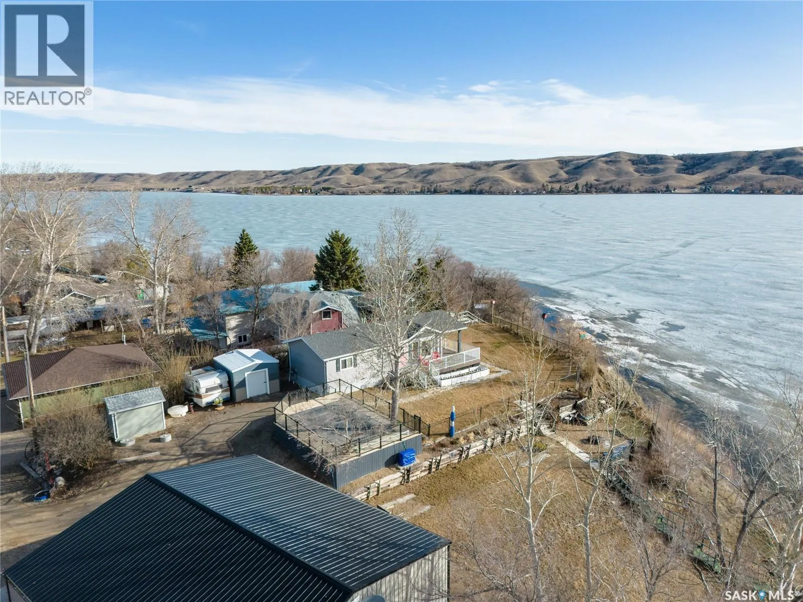 Turn right off of HWY2 before the seed cleaning plant. Follow the gravel road to the T in the road. Turn right at the stop sign and then follow the road and stay in the left lane (Marine Drive) follow that road and you will see the large double garage at the end of the lane. That is the property Welcome to your waterfront escape at South Lake, Buffalo Pound-where privacy, comfort, and lake life come together. Situated at the very end of a quiet dead-end road, this property offers exceptional seclusion as itâs the last home to the east, making it a rare find for those seeking peace and uninterrupted views. This 2013, 809 SQ/ft mobile home features a bright and inviting layout with 2 bedrooms and a beautifully remodelled 4-piece bathroom (2025). Recent upgrades include new triple-pane windows (January 2026) on the east side of the living room and both bedrooms, enhancing energy efficiency and maximizing those stunning lake views. The home is equipped with reverse osmosis, a stove, built-in dishwasher, washer and dryer, and a newer fridge with a clear-view screen. Step outside and enjoy the wraparound deck spanning two sides of the home-perfect for entertaining or relaxing-with a natural gas BBQ hookup ready to go. The 36 x 40 natural gas heated garage is a standout feature, complete with; LED lighting, 220V plugs, a floor drain, and even a convenient ânot so privateâ 2-piece bathroom. Thereâs ample room for all your vehicles, tools, toys, and even a place to watch the game! Behind the garage, youâll find a 20 x 30 private playground space, along with RV parking that includes a power hookup. The tiered lot is thoughtfully designed with multiple outdoor living areas, including a firepit, horseshoe pit, and steps leading down to the water where a deck pad awaits on the shorelineâperfect for soaking up those summer days. A GPS-marked location is already set for your boat lift, adding to the ease of lakefront living. Additional features include underground sprinklers, one storage shed, and a heated 10 x 20 outdoor pool with its own wraparound deckâideal for entertaining family and friends. Whether youâre looking for a year-round home or the perfect lake retreat, this property delivers lifestyle, location, and unmatched privacy. (id:27476)