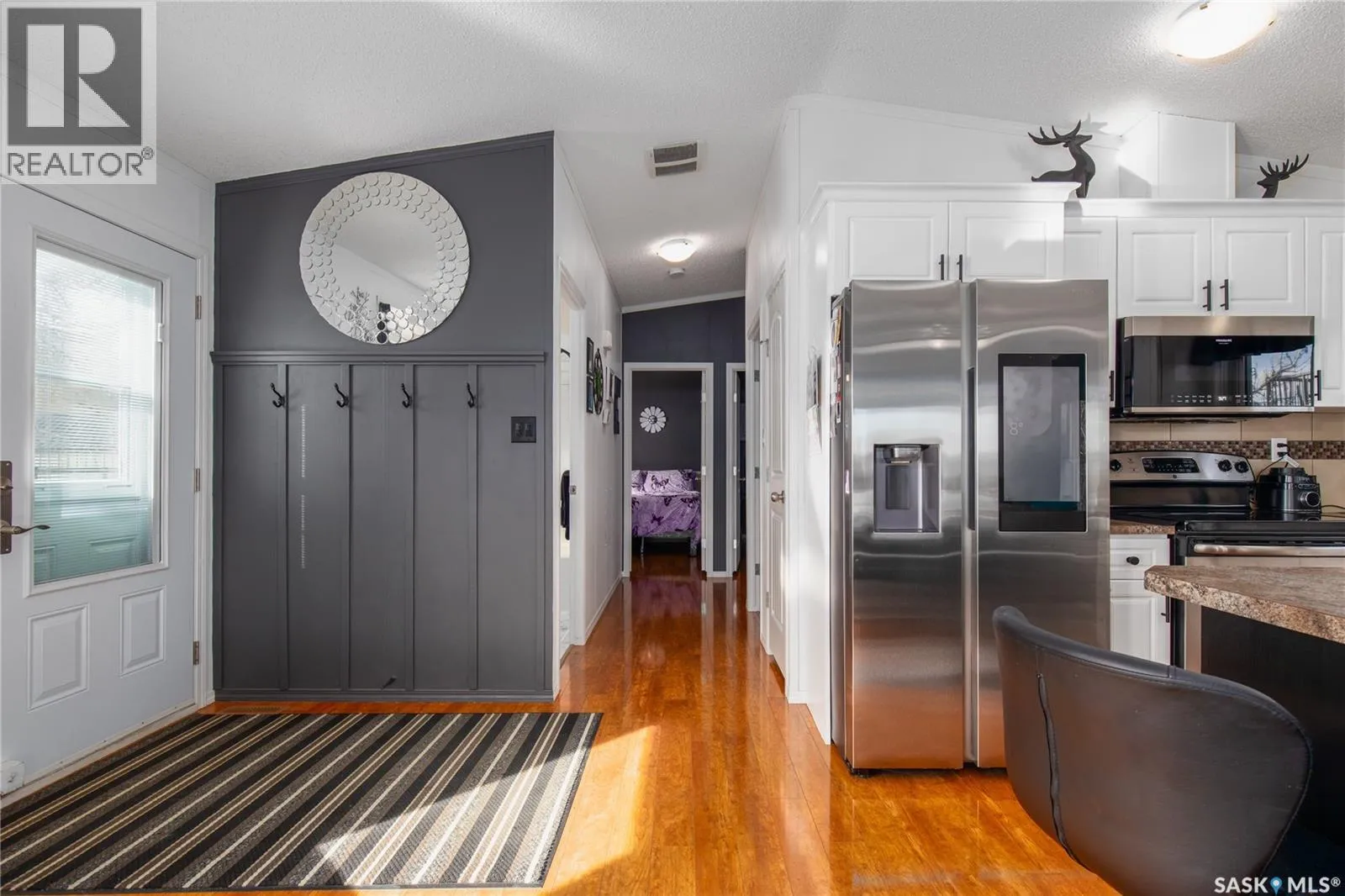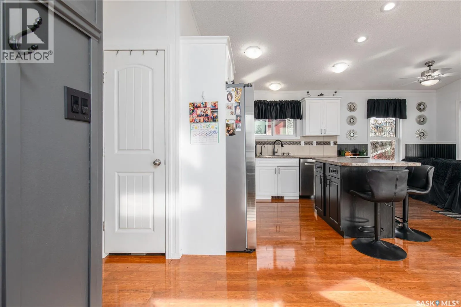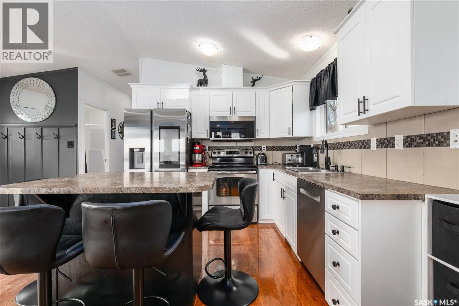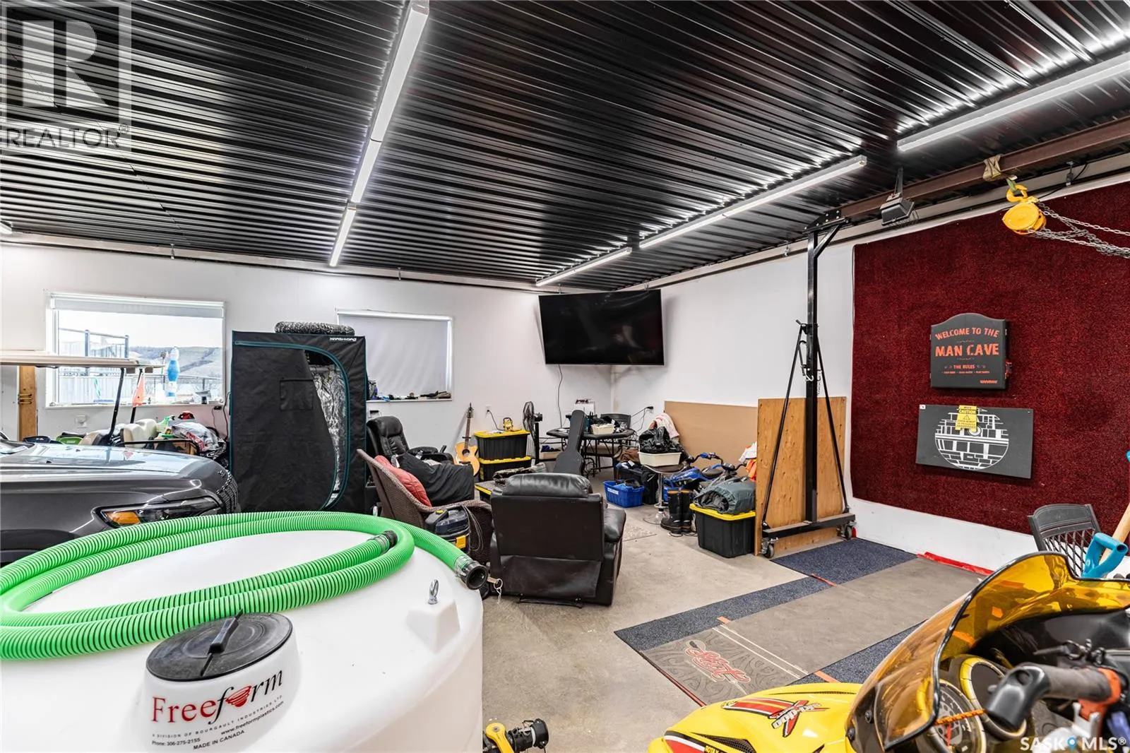 Turn right off of HWY2 before the seed cleaning plant. Follow the gravel road to the T in the road. Turn right at the stop sign and then follow the road and stay in the left lane (Marine Drive) follow that road and you will see the large double garage at the end of the lane. That is the property Welcome to your waterfront escape at South Lake, Buffalo Pound-where privacy, comfort, and lake life come together. Situated at the very end of a quiet dead-end road, this property offers exceptional seclusion as itâs the last home to the east, making it a rare find for those seeking peace and uninterrupted views. This 2013, 809 SQ/ft mobile home features a bright and inviting layout with 2 bedrooms and a beautifully remodelled 4-piece bathroom (2025). Recent upgrades include new triple-pane windows (January 2026) on the east side of the living room and both bedrooms, enhancing energy efficiency and maximizing those stunning lake views. The home is equipped with reverse osmosis, a stove, built-in dishwasher, washer and dryer, and a newer fridge with a clear-view screen. Step outside and enjoy the wraparound deck spanning two sides of the home-perfect for entertaining or relaxing-with a natural gas BBQ hookup ready to go. The 36 x 40 natural gas heated garage is a standout feature, complete with; LED lighting, 220V plugs, a floor drain, and even a convenient ânot so privateâ 2-piece bathroom. Thereâs ample room for all your vehicles, tools, toys, and even a place to watch the game! Behind the garage, youâll find a 20 x 30 private playground space, along with RV parking that includes a power hookup. The tiered lot is thoughtfully designed with multiple outdoor living areas, including a firepit, horseshoe pit, and steps leading down to the water where a deck pad awaits on the shorelineâperfect for soaking up those summer days. A GPS-marked location is already set for your boat lift, adding to the ease of lakefront living. Additional features include underground sprinklers, one storage shed, and a heated 10 x 20 outdoor pool with its own wraparound deckâideal for entertaining family and friends. Whether youâre looking for a year-round home or the perfect lake retreat, this property delivers lifestyle, location, and unmatched privacy. (id:27476)