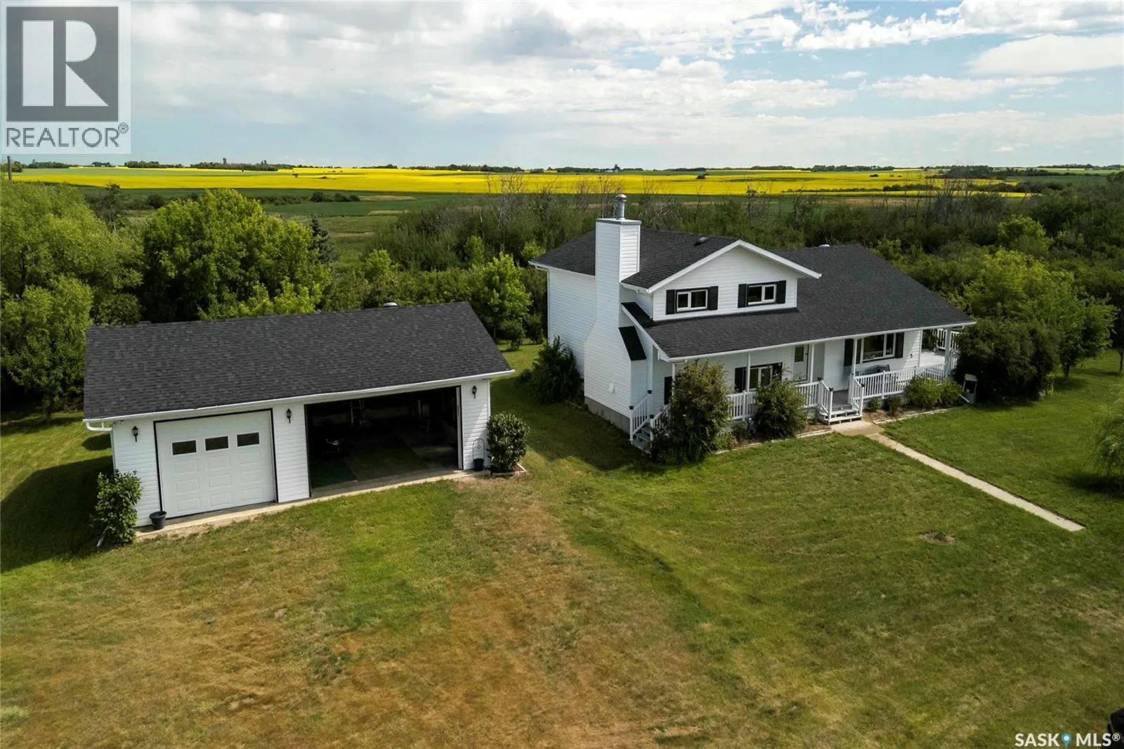 Highway 48 just north of Davin Seller says sell! Try an offer! Quick possession! Freedom from commotion and the bustle of the city with nothing but open skies and peaceful living. Located approximately 40 kms from Regina sits 80 acres (40 cultivated acres) of green gently rolling hills and tranquil surroundings. Winding around the row of trees the house comes into view and you will immediately feel like youâre in a different world. Pride of ownership shines through in every corner of the house and land. Imagine Saskatchewan sunsets or getting lost in a book from your wraparound deck. Behind the house are fruit trees and even some almond trees with a fire pit off to the side. The yard site has a 36â x 24â garage, 29â x 49â shop (10â doors) and a little further in behind is a 25â x 48â barn with 2 stalls. Fenced corals and pastures are ready for new animals. 40 acres of cultivated land. 2 sloughs. The house is so loved and very well maintained. Built with 2x6 construction. Living room at the front of the house with the eat-in kitchen, dining room and main floor laundry at the back. Located at the back door is a powder room which is perfect for coming in from the garden and cleaning up without bringing the mess through the house. Upper level has 3 good sized bedrooms, 4-piece bathroom with the primary bedroom having a 3-piece en-suite. 3rd level has a huge family room with a wood burning fireplace, 4th bedroom and a 2-piece bathroom. Lower level is open for development which could be a children's play area or family games room. Meticulously maintained and cared for over the years. Easy access from the highway but surrounded by trees makes you feel like youâre all alone. Well on property with water treatment system included. Lagoon. School bus to Vibank approx 13kms. K-12. Directions: Highway 48 about 20 minutes south of White City. Just East of Davin on opposite side of highway. Farm is across the road from large cross on hill. (id:27476)