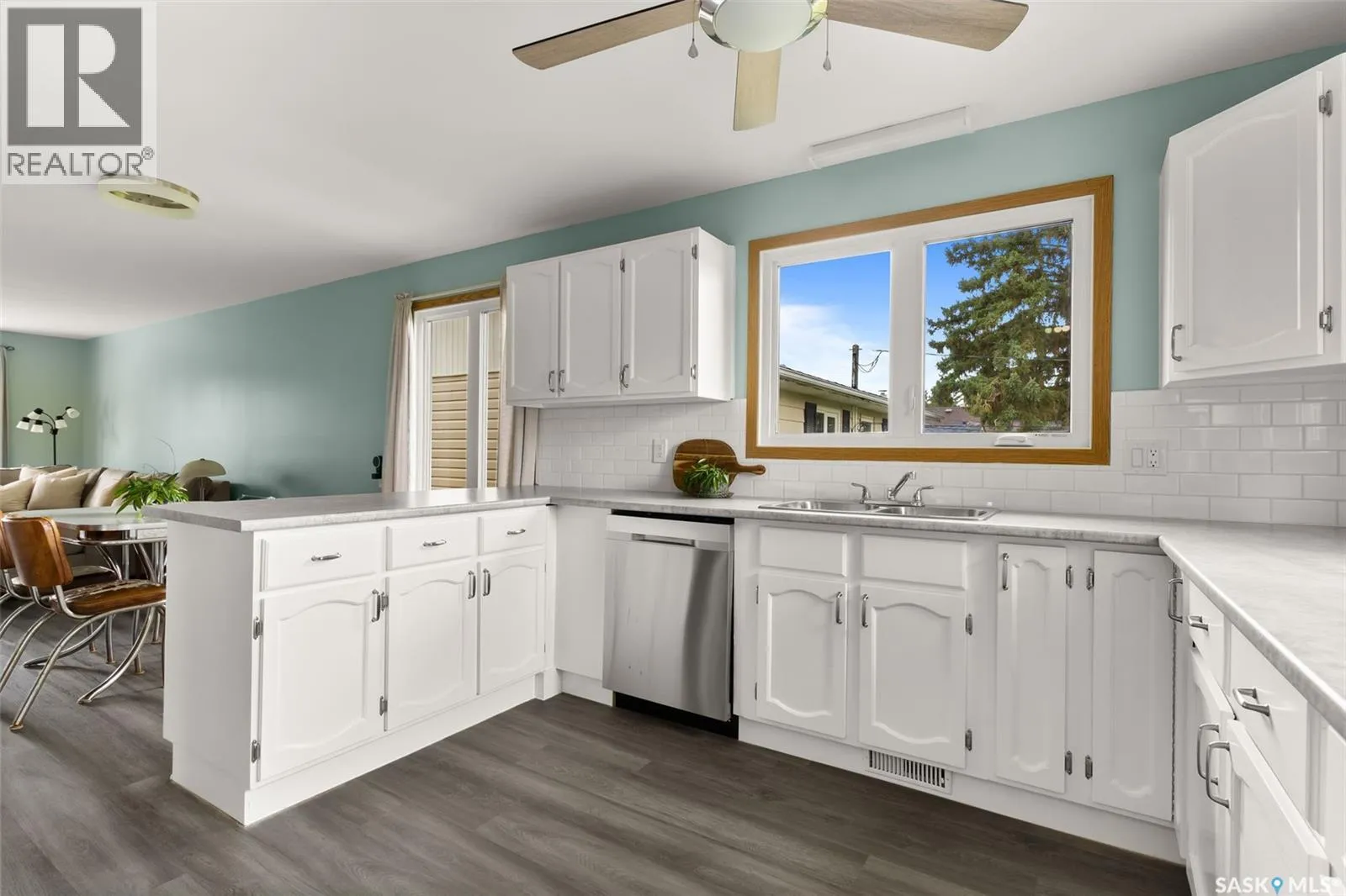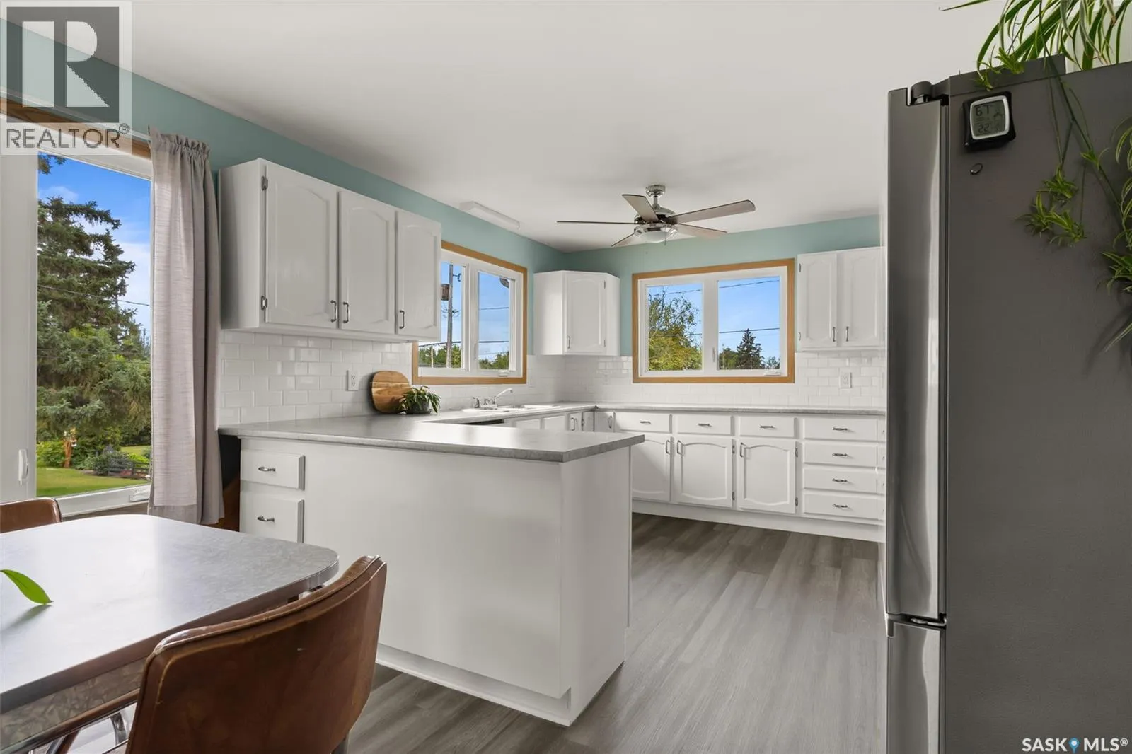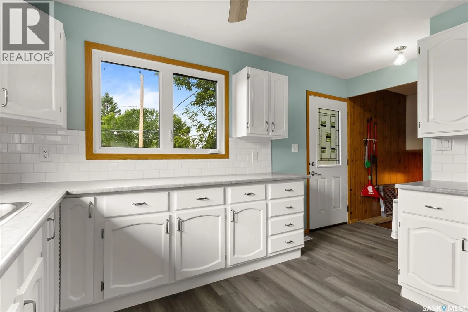 Charming curb appeal welcomes you with a front veranda complete with new vinyl deck and posts with a thoughtfully designed open-concept layout inside. Bright and airy, the main level is enhanced by upgraded PVC triple-pane windows, luxury vinyl plank flooring, and plush carpet in the two generously sized bedrooms. The refreshed white kitchen shines with newer stainless steel appliances, timeless subway tile backsplash, new countertops, hardware and a spacious pantry. The main floor 4 piece bath has been refreshed including flooring, sink, taps, tub and surround. The basement offers a functional layout with large windows that fill the space with natural light. Enjoy a spacious rec room, 2-piece bath, third bedroom, laundry area, cold room, and ample storage. Recent upgrades include a new water heater (Dec 2022), water softener (2025), and new lighting throughout the main level. Outside, the backyard is a gardenerâs dream with established perennials including hascap and gooseberry bushes, garden beds, a wood deck for summer entertaining, and a large shed. The property also includes a large single garage (no direct entry to the house). (id:27476)