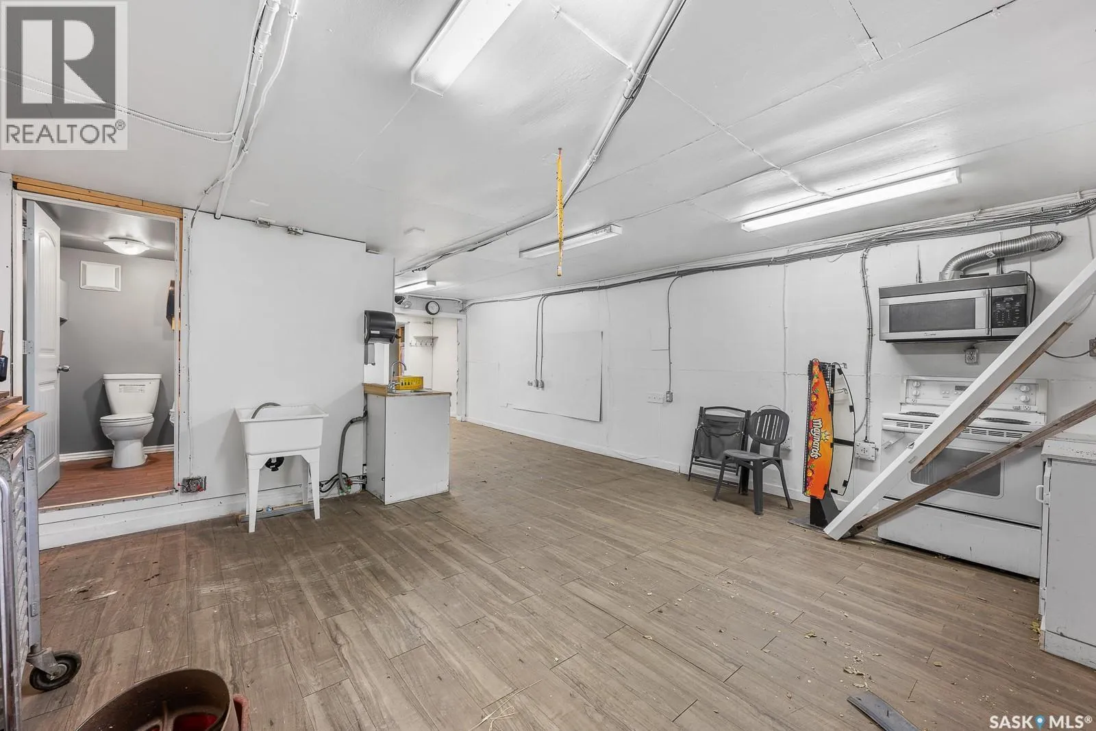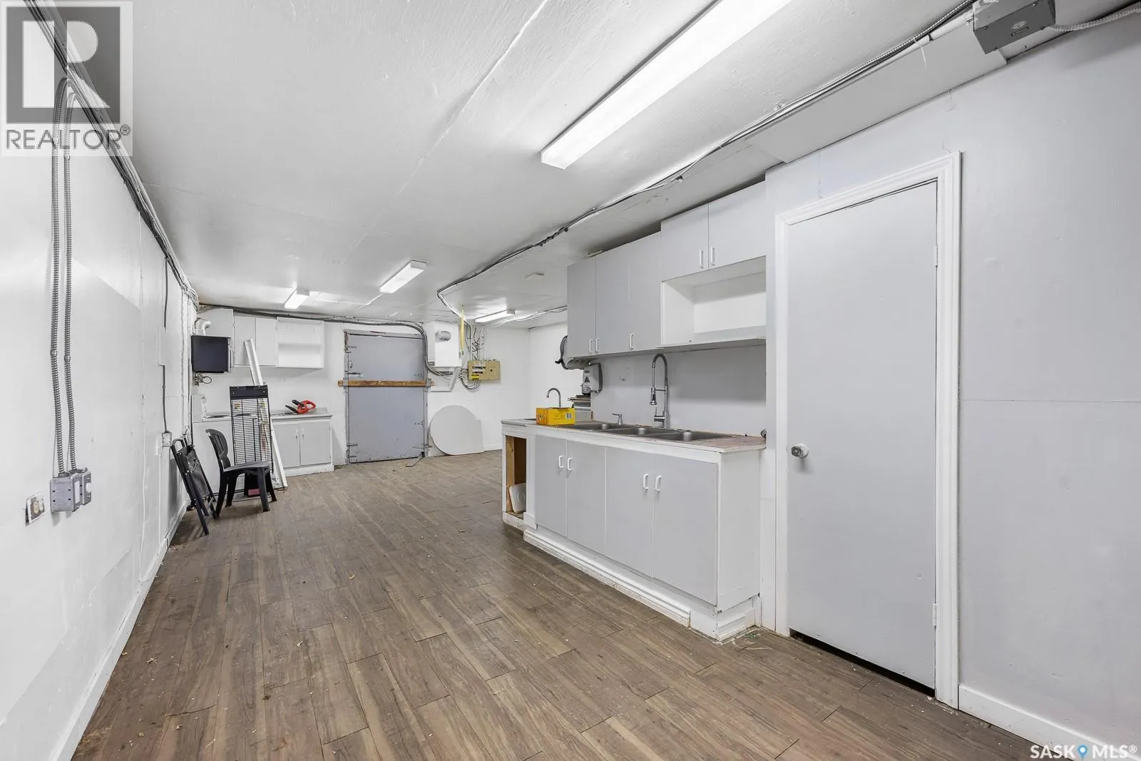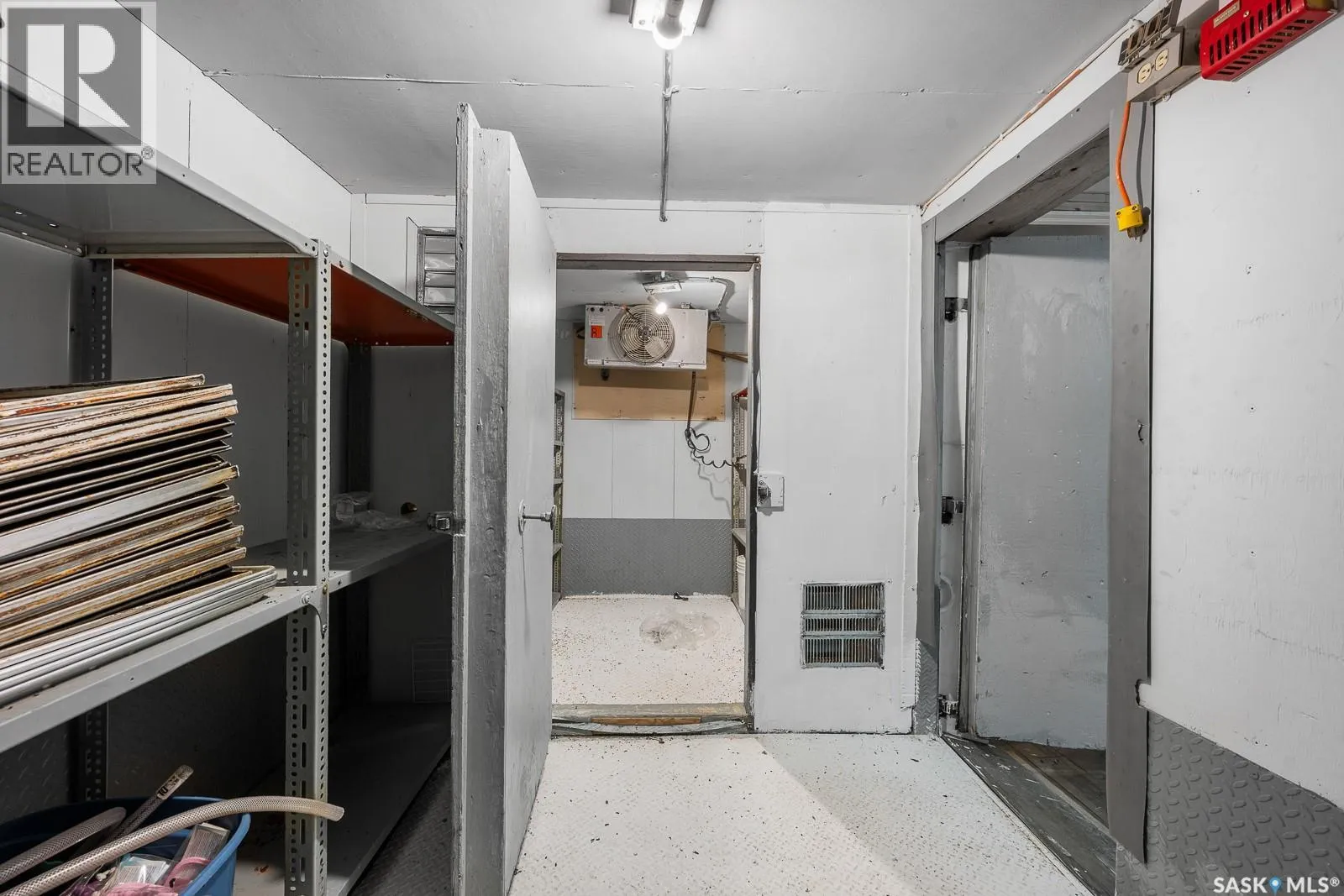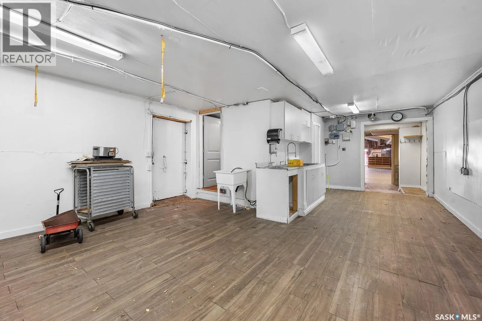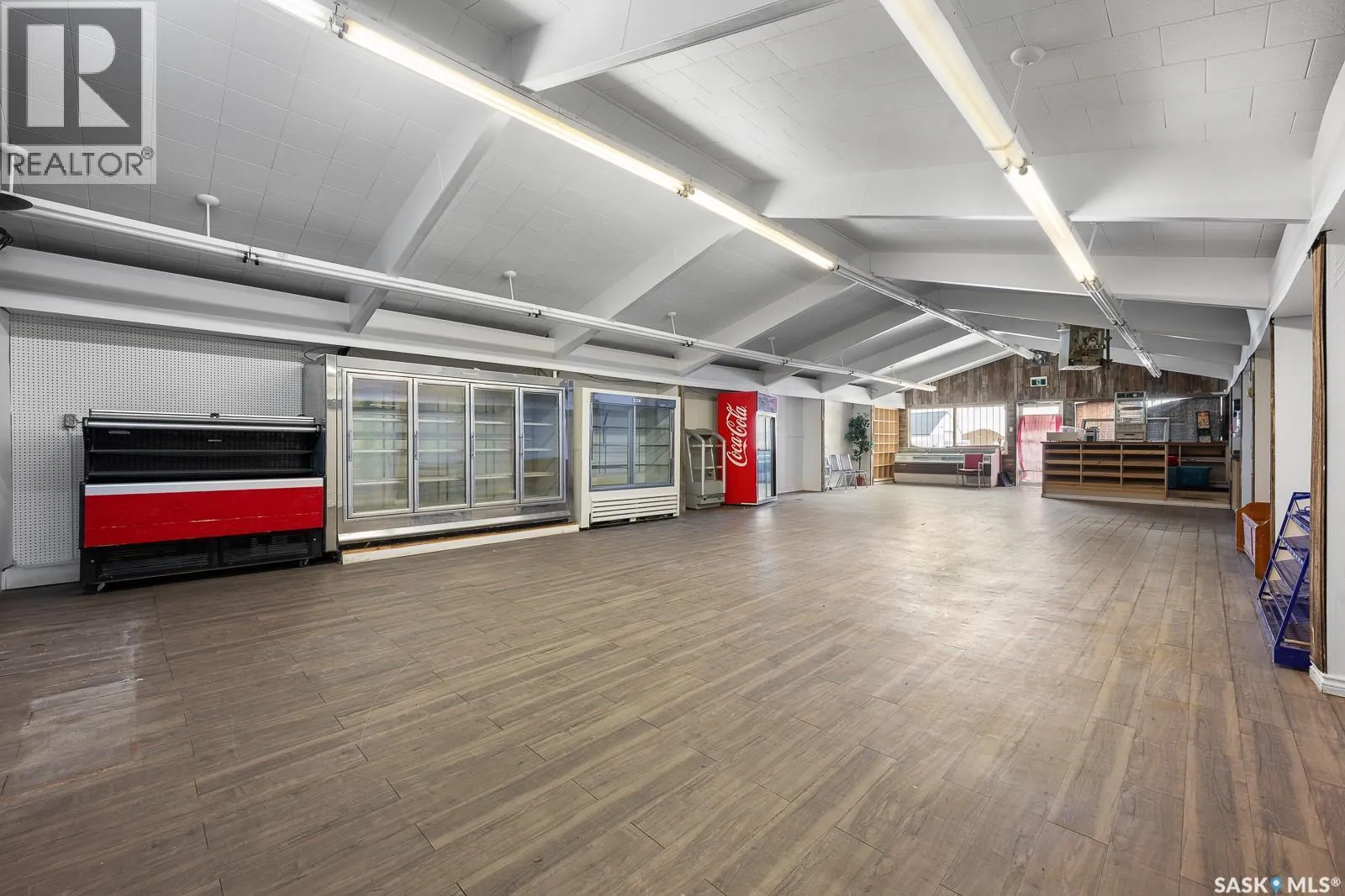 In the growing, town of Southey half an hour north of Regina. This commercial property presents a unique opportunity that is to create a thriving business environment tailored to your specific needs. Whether you are looking to establish a grocery store, bakery, coffee shop, restaurant, or retail space, the combination of a large kitchen area, walking freezer, and flexible layout makes this property a fantastic choice. This property is for sale as well. The freezers and coolers are as-is condition. (id:27476)