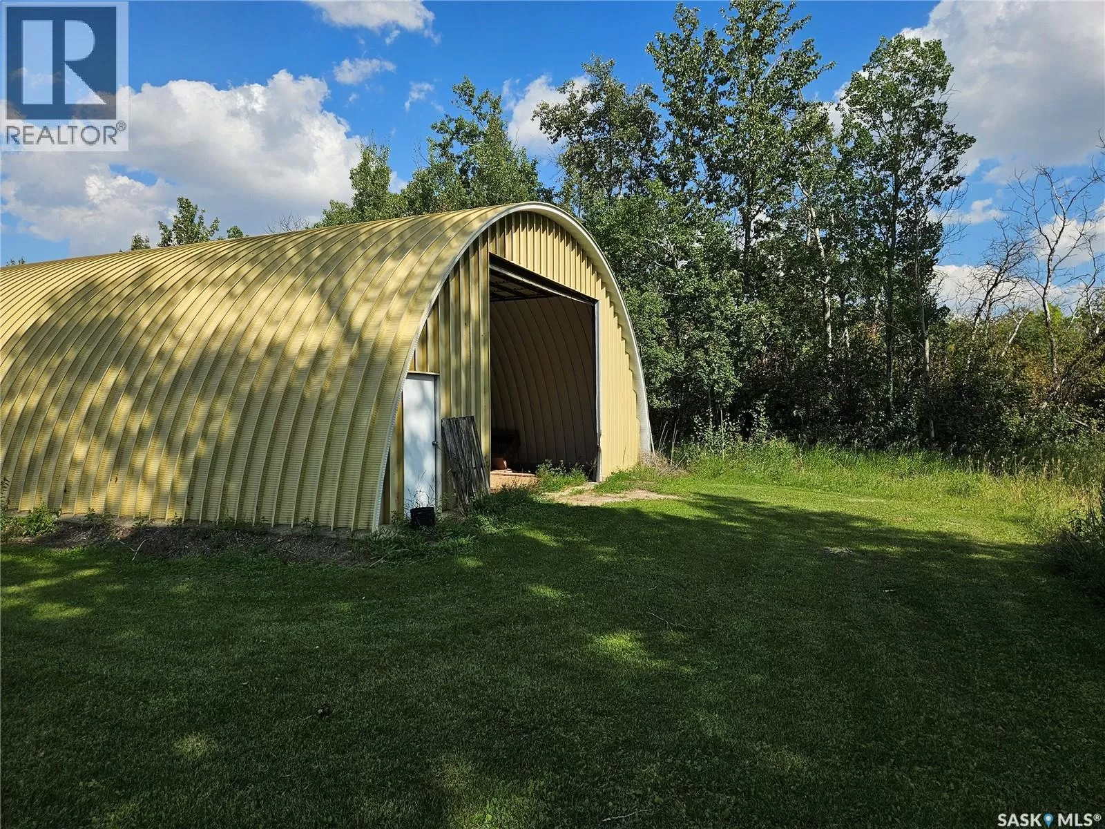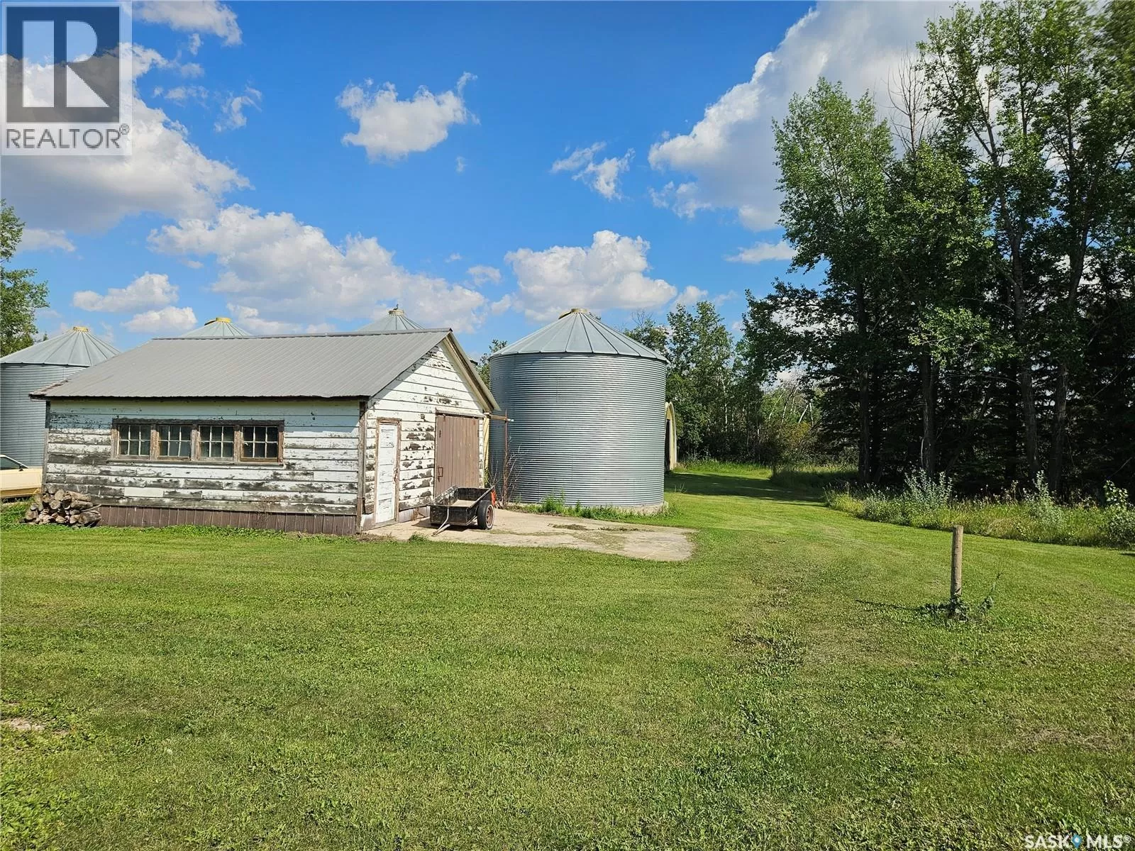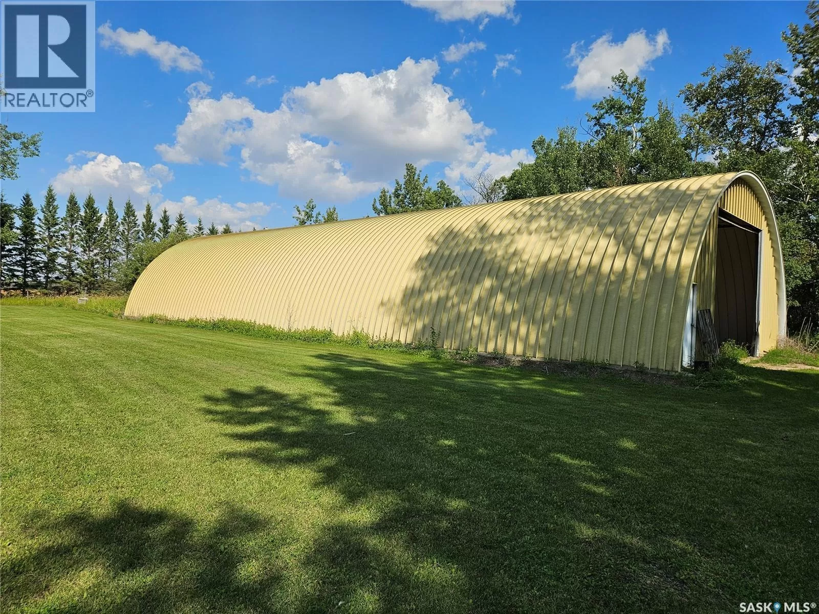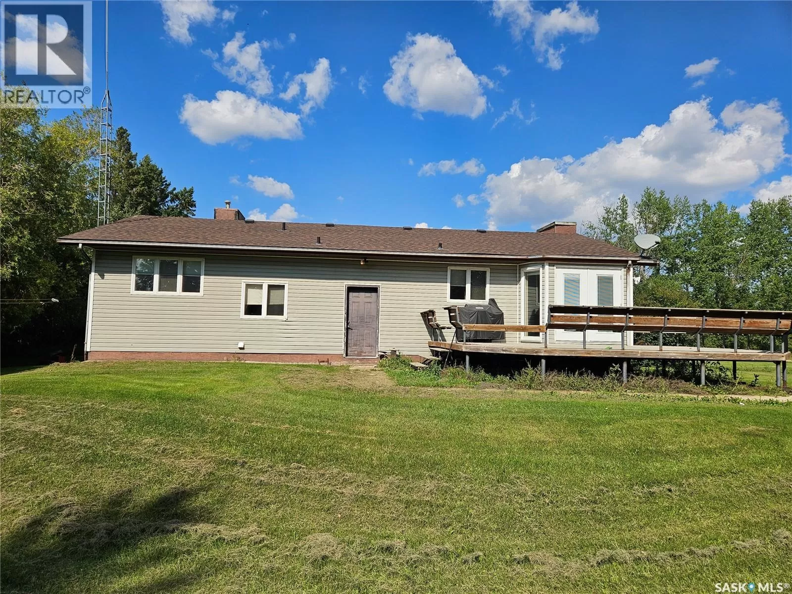 LSD 13-36-37-16-2 Ext7. Country living at it's best! Well treed yard site with a 1428 sq.ft. Bungalow built in 1978 located in the RM of Spalding #368 (close to Quill Lake). The house has 4 bedrooms (3 up & 1 down) and 2.5 bathrooms. This house must be seen to be truly valued as it is very well laid out. From a mud room at the entrance which includes a half bath and laundry facilities, patio doors off the kitchen leading outside to a large deck, and a huge rec room downstairs with a wet bar. The yard is fully treed and has 2 older sheds, 4 grain bins and an 40*100 ft Quonset. Water for the yard comes from a well located beside a large dugout. Drinking water is ran through an RO system in the house. The total land included is 34.85 acres with additional acres available. Make arrangements to come see this acreage ASAP! (Please note that the sale will be subject to completion of the subdivision process). (id:27476)