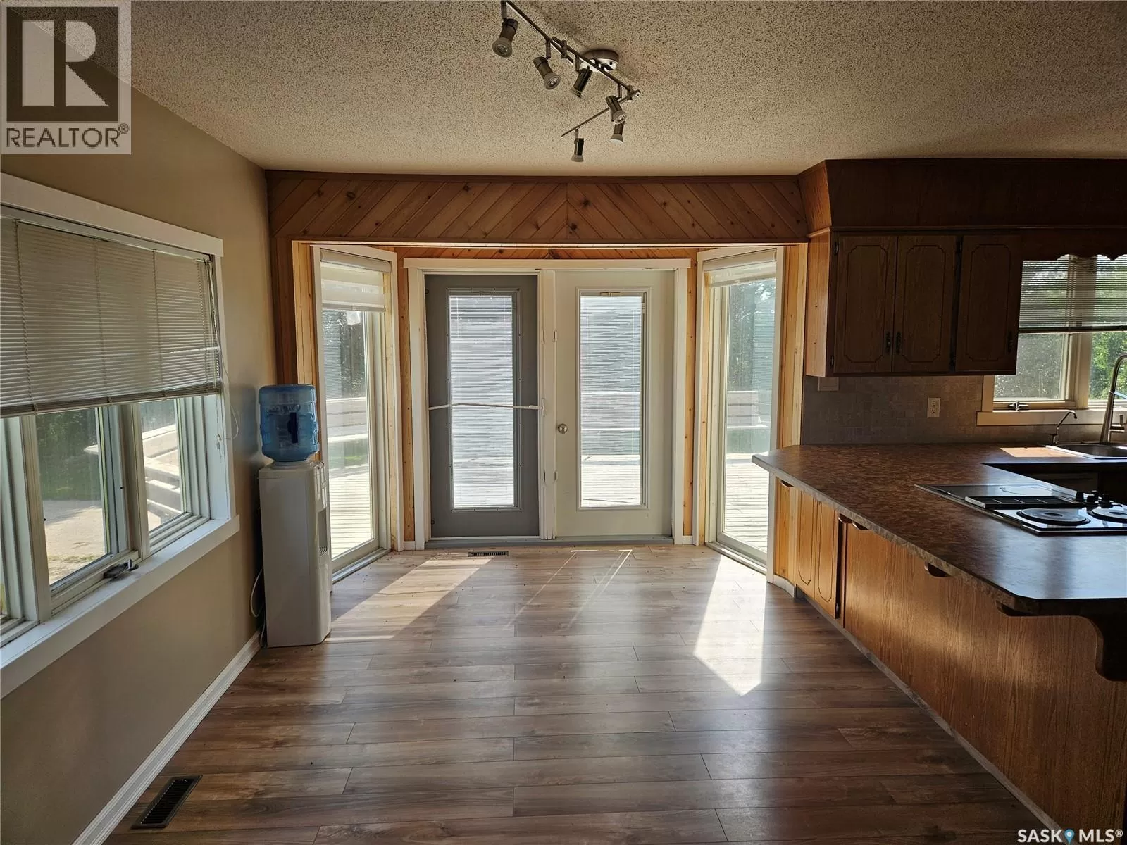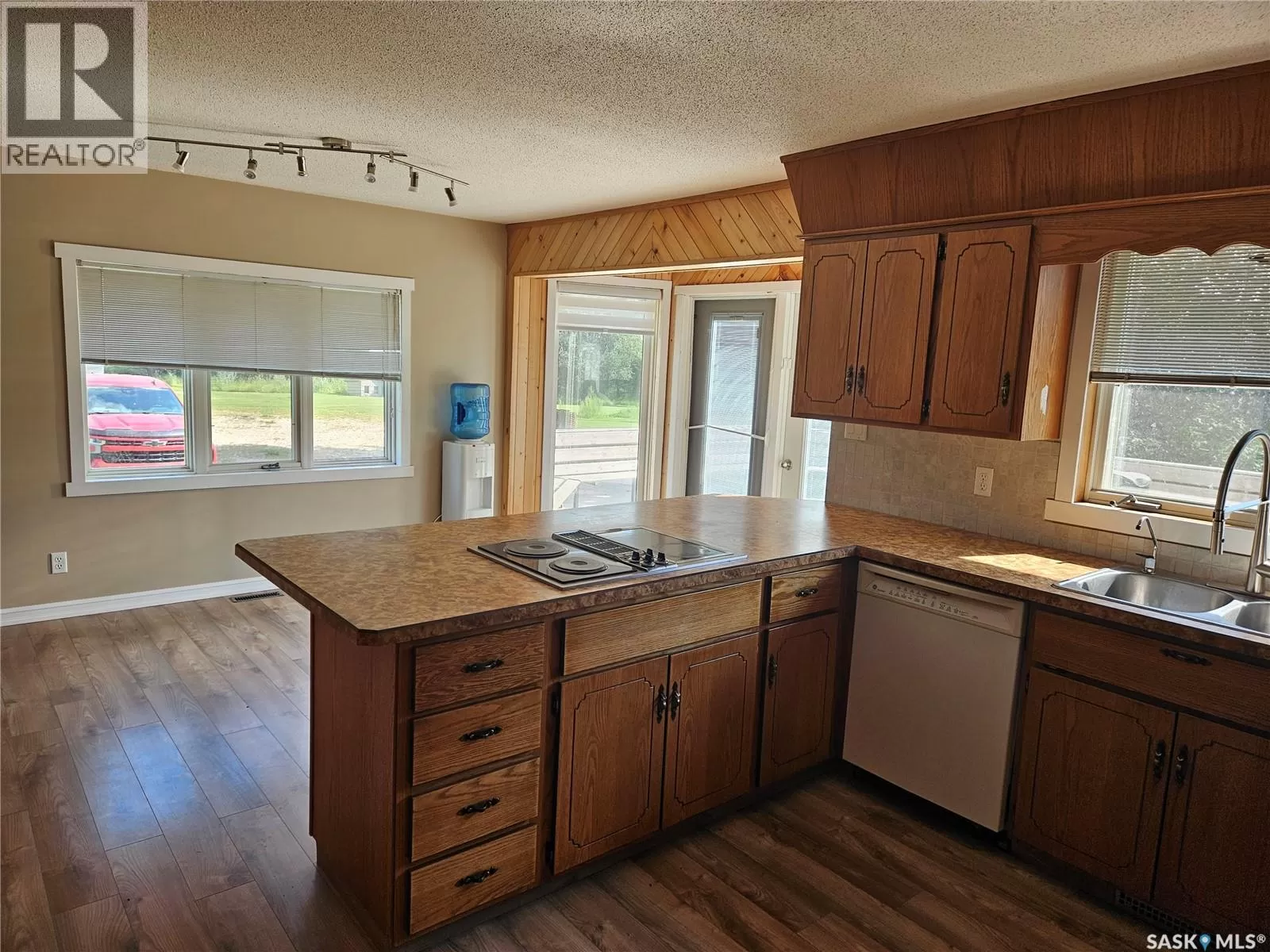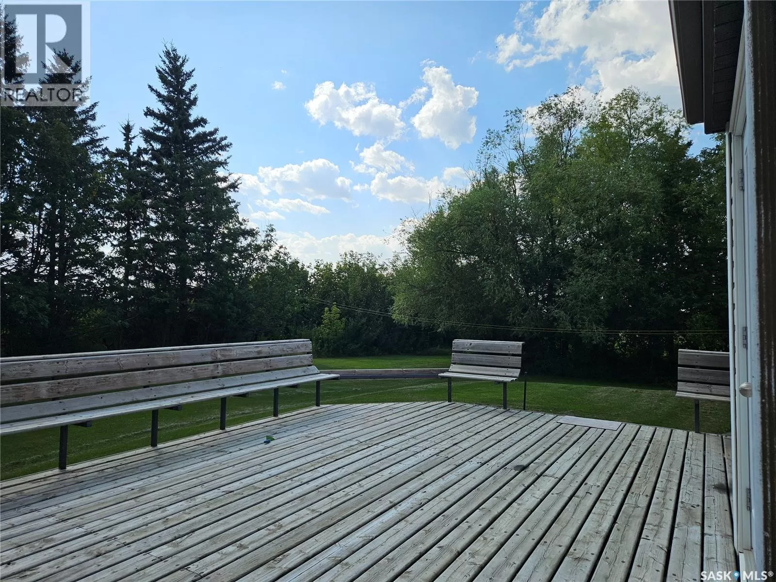 LSD 13-36-37-16-2 Ext7. Country living at it's best! Well treed yard site with a 1428 sq.ft. Bungalow built in 1978 located in the RM of Spalding #368 (close to Quill Lake). The house has 4 bedrooms (3 up & 1 down) and 2.5 bathrooms. This house must be seen to be truly valued as it is very well laid out. From a mud room at the entrance which includes a half bath and laundry facilities, patio doors off the kitchen leading outside to a large deck, and a huge rec room downstairs with a wet bar. The yard is fully treed and has 2 older sheds, 4 grain bins and an 40*100 ft Quonset. Water for the yard comes from a well located beside a large dugout. Drinking water is ran through an RO system in the house. The total land included is 34.85 acres with additional acres available. Make arrangements to come see this acreage ASAP! (Please note that the sale will be subject to completion of the subdivision process). (id:27476)