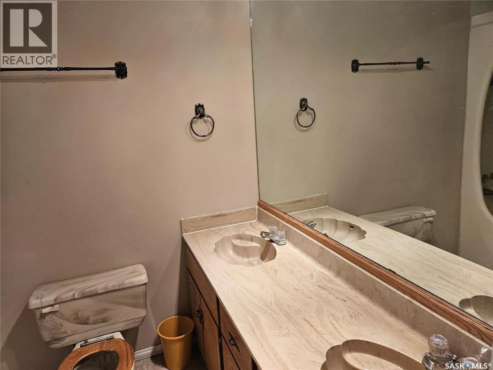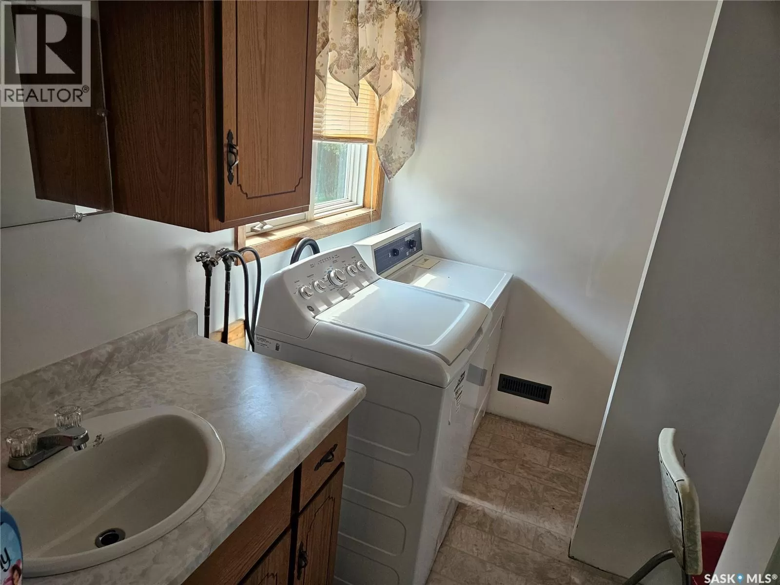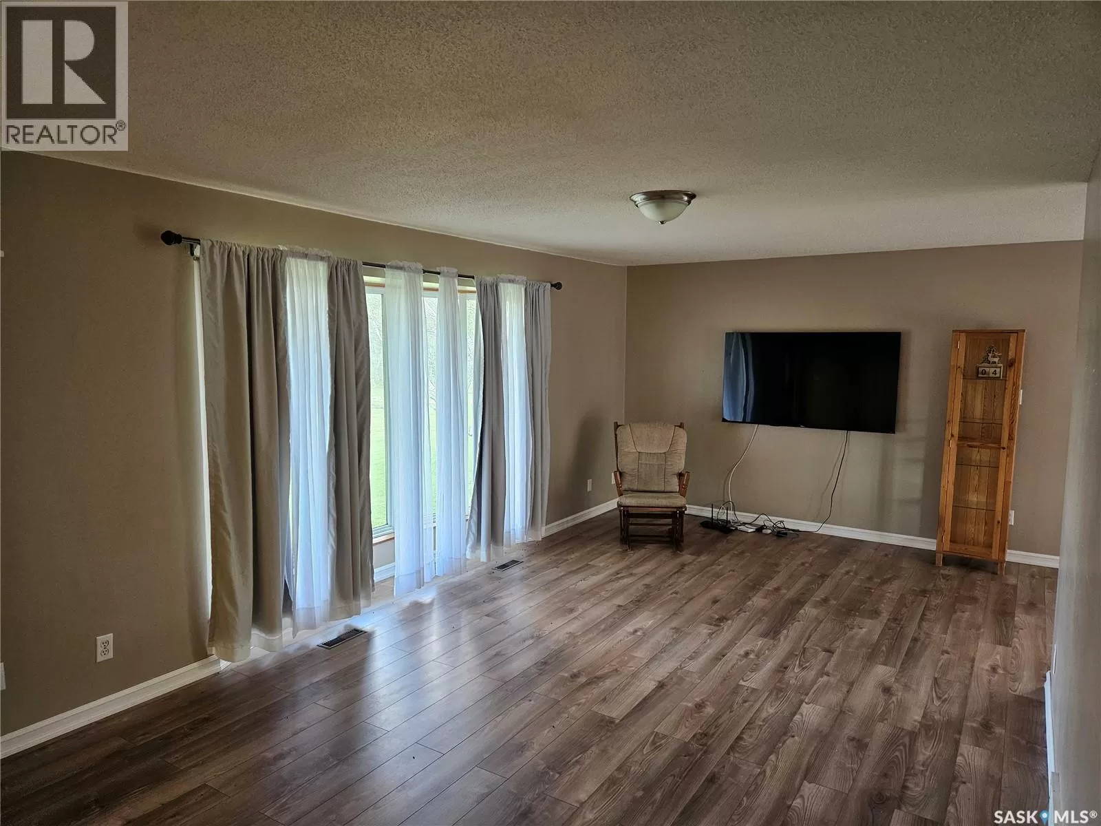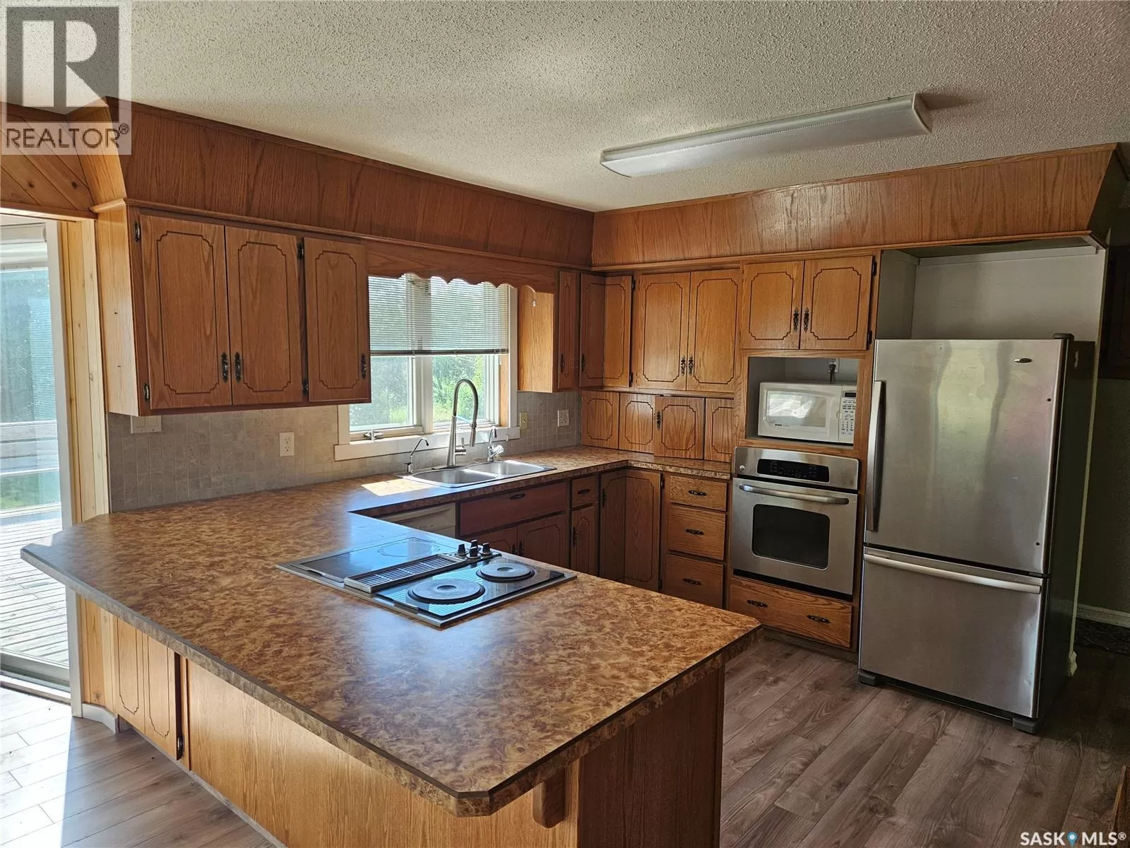 LSD 13-36-37-16-2 Ext7. Country living at it's best! Well treed yard site with a 1428 sq.ft. Bungalow built in 1978 located in the RM of Spalding #368 (close to Quill Lake). The house has 4 bedrooms (3 up & 1 down) and 2.5 bathrooms. This house must be seen to be truly valued as it is very well laid out. From a mud room at the entrance which includes a half bath and laundry facilities, patio doors off the kitchen leading outside to a large deck, and a huge rec room downstairs with a wet bar. The yard is fully treed and has 2 older sheds, 4 grain bins and an 40*100 ft Quonset. Water for the yard comes from a well located beside a large dugout. Drinking water is ran through an RO system in the house. The total land included is 34.85 acres with additional acres available. Make arrangements to come see this acreage ASAP! (Please note that the sale will be subject to completion of the subdivision process). (id:27476)