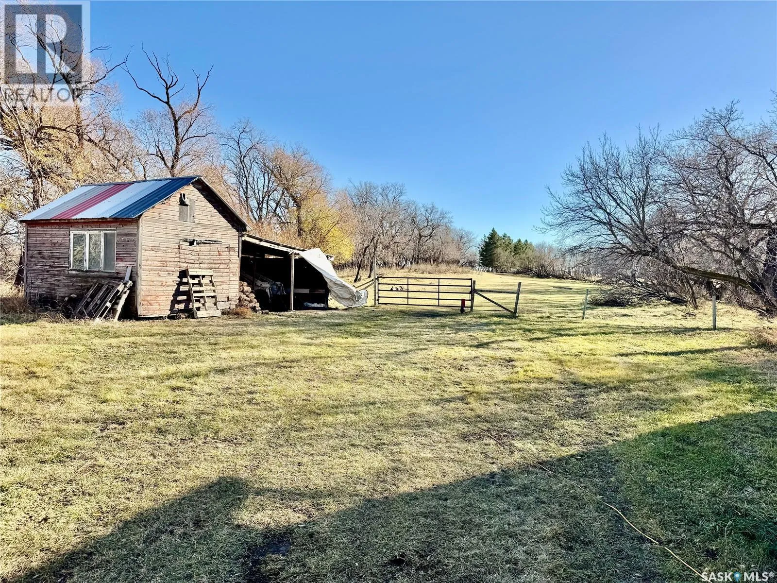 Acreage Living Just Minutes from Spalding! Discover this picturesque 38-acre property located only 5 km east of the Town of Spalding, just off Highway 6. This beautifully maintained acreage offers the perfect blend of comfort, space, and functionalityâideal for families, farmers, or anyone seeking peaceful prairie living with all the right amenities. The 1½-storey, 1,600 sq. ft. home was originally built in 1920 with a thoughtful addition in 1978. Step inside to a spacious porch with main-floor laundry leading into an open-concept kitchen and dining area featuring abundant cabinetry and natural light. A cozy 3-season sunroom extends off the dining area, perfect for relaxing or entertaining. The main level also includes two comfortable bedrooms and a 4-piece bath. Upstairs, youâll find a large third bedroom offering privacy and charm. The lower level provides a generous recreation room and a convenient 2-piece bath. The home is efficiently heated by a high-efficiency natural gas furnace connected to a wood furnace for versatile heating options. Outside, the property is set up for livestock or farming with perimeter fencing and nine individual paddocks, complete with watering bowls and outbuildings suitable for small animals. A 40Ã40 insulated barn and 26Ã32 shop add excellent utility for storage, equipment, or workshop space. Approximately 20 acres of pasture offer grazing potential, while the mature yard provides privacy, beauty, and shelter from prairie winds. This acreage captures the essence of country livingâroom to roam, functional outbuildings, and a comfortable homeâall just minutes from town amenities. Call today to view! (id:27476)