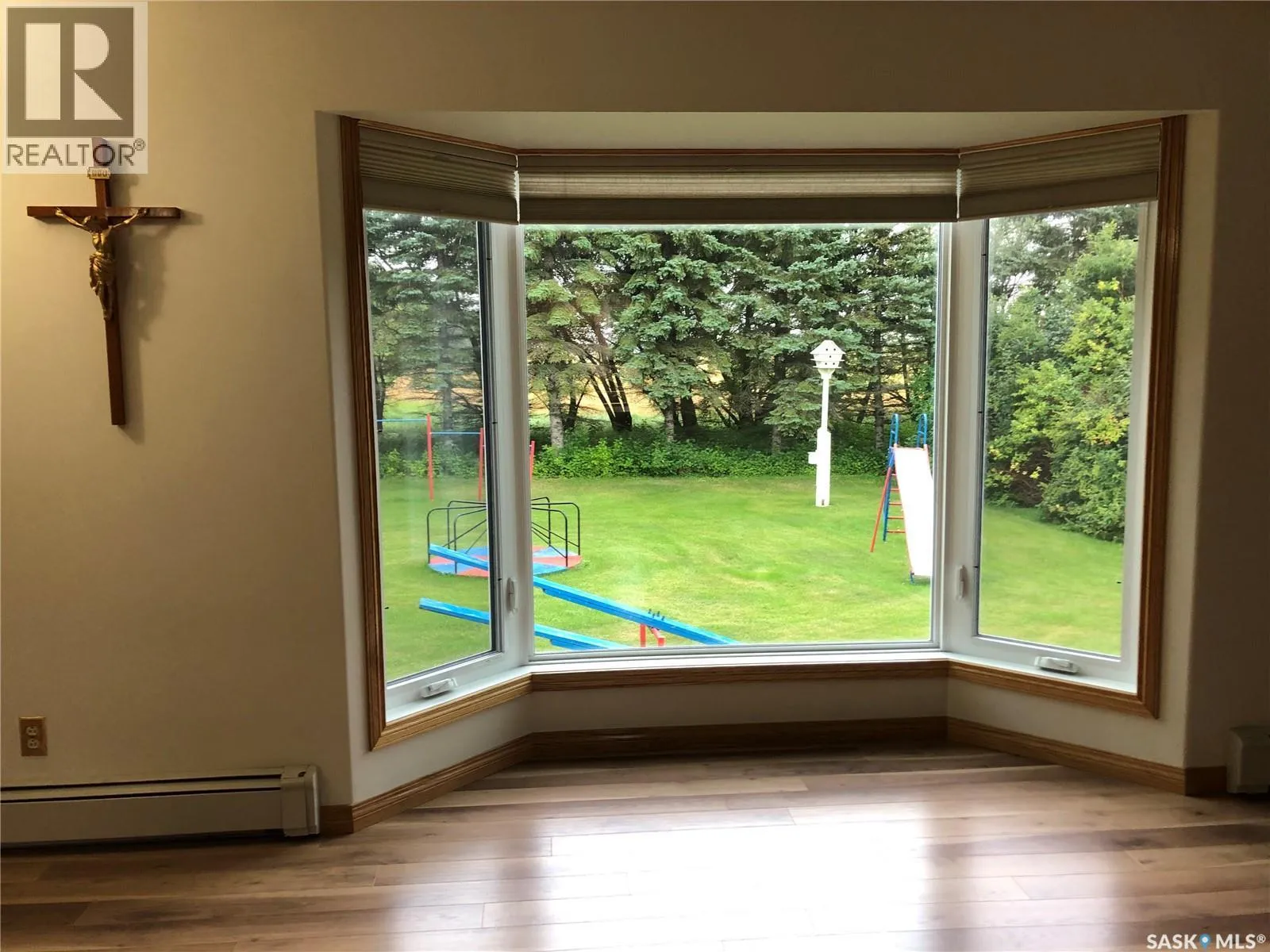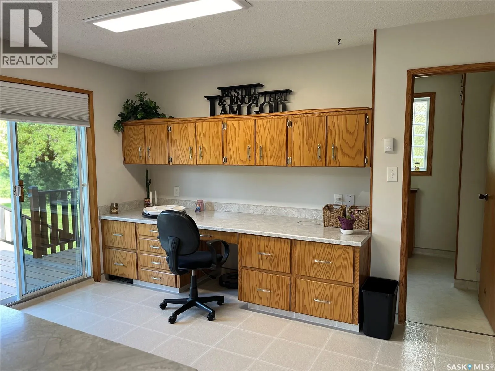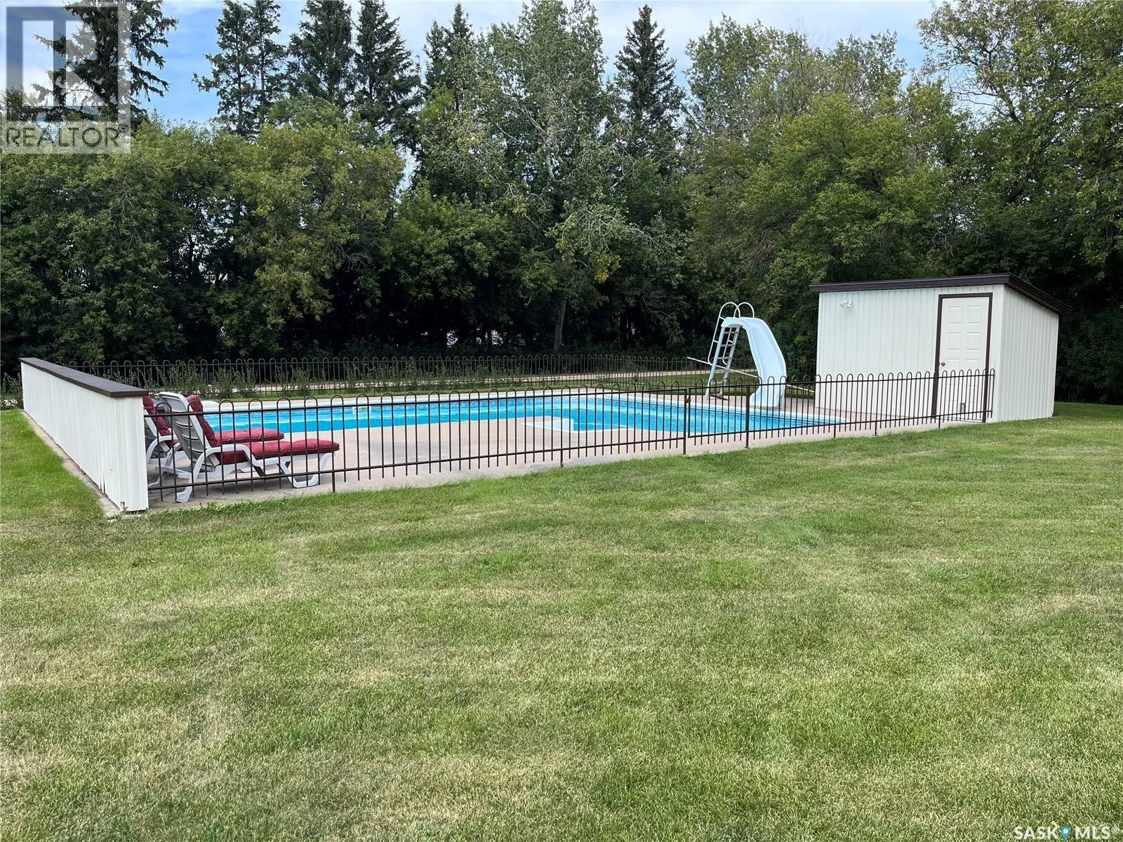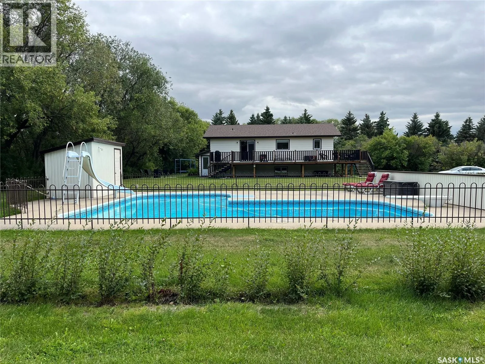 Beautiful Acreage located between Spalding and Annaheim. Nestled within a beautifully treed 10 acre property, this charming acreage offers the perfect blend of comfort and tranquility. Built in 1982, the 1134 square foot home is thoughtfully designed, featuring a primary bedroom and a 4 piece bathroom on the main floor, providing ease of living. The main floor also includes a versatile office, a spacious living room, a generous dining area and a large kitchen equipped with a large island, ample storage space and newer stainless steel appliances. A convenient mudroom/laundry area adds to the home's functionality. Descend to the recently renovated basement completed in 2020, and discover three additional bedrooms, another 4 piece bathroom, a sprawling family room perfect for gatherings, and a separate back door entrance with a mudroom. The basement also offers plenty of storage options, ensuring everything has its place. The outdoor amenities are just as impressive. A wrap-around deck invites you to enjoy the serene surroundings, while the yard features a metal 8-piece playground, concrete firepit area with seating for 10, an inground swimming pool for those warm summer days, and a volleyball net for fun with family and friends. The home is heated with an efficient electric boiler with in-floor heating, ensuring comfort throughout the year. This property combines the best of rural living with modern conveniences, making it an ideal retreat for those seeking a peaceful lifestyle. Located 9 miles from Annaheim, 7 miles from Spalding and 40 minutes from Humboldt, this is an amazing space to raise a family or enjoy quiet times. Call your Realtor® to view today! (id:27476)