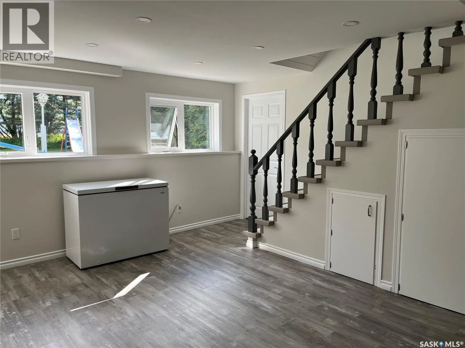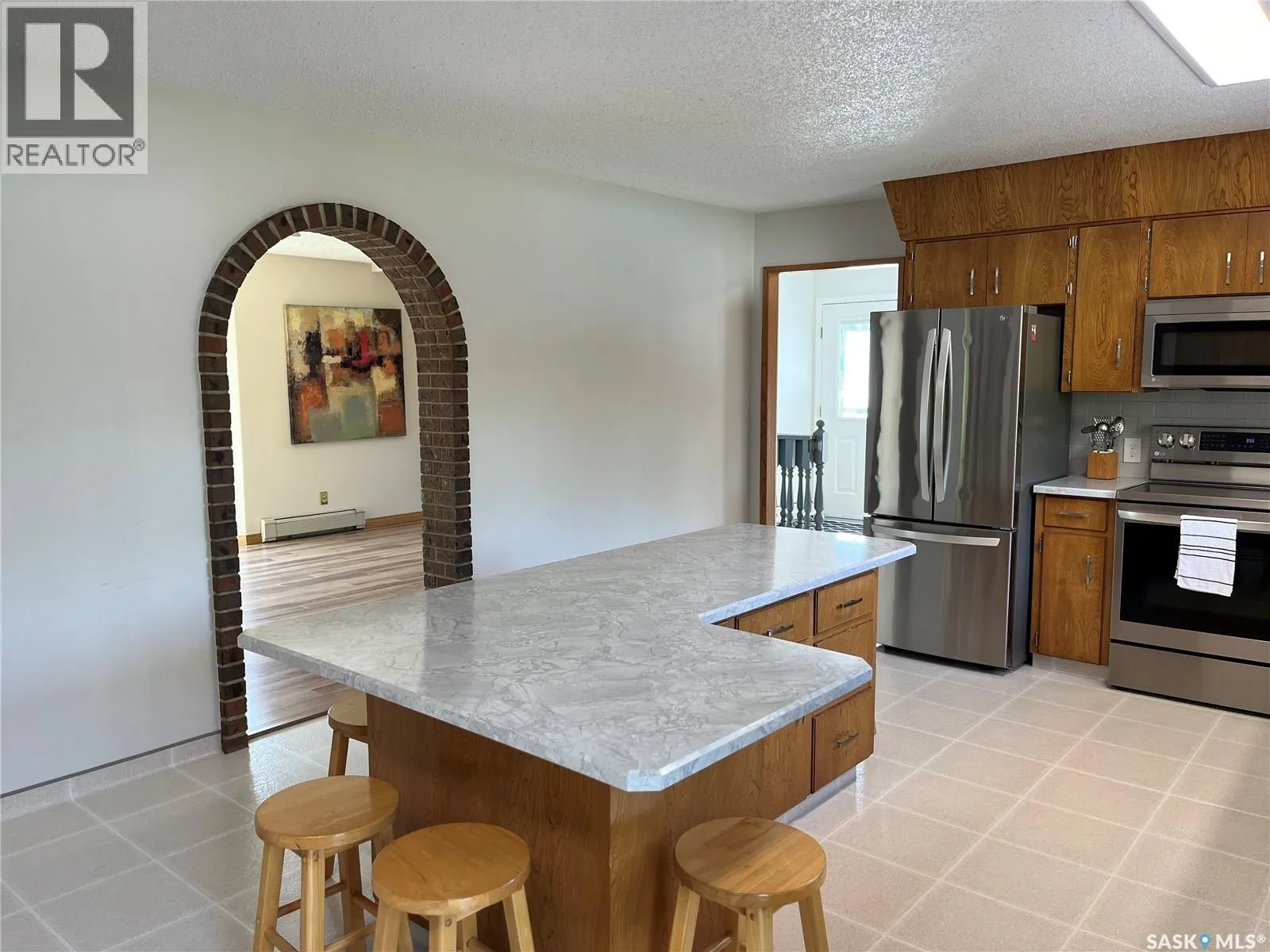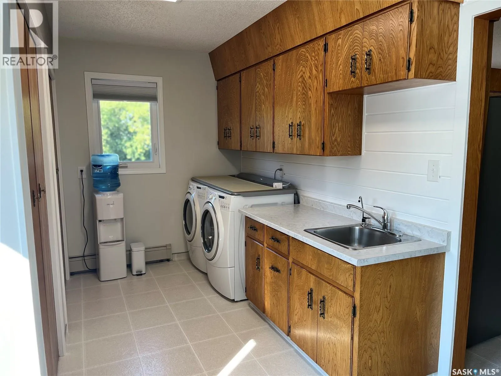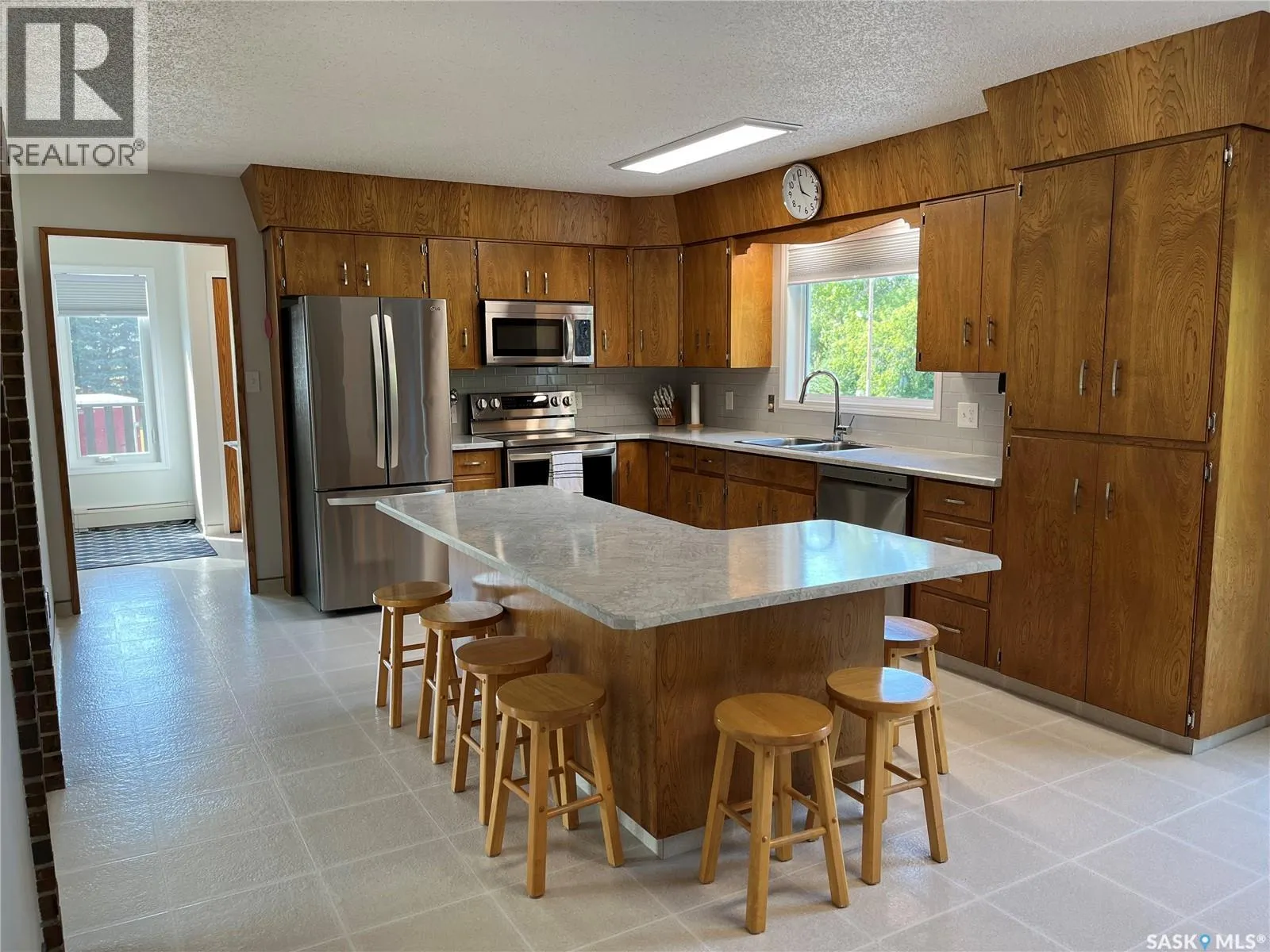 Beautiful Acreage located between Spalding and Annaheim. Nestled within a beautifully treed 10 acre property, this charming acreage offers the perfect blend of comfort and tranquility. Built in 1982, the 1134 square foot home is thoughtfully designed, featuring a primary bedroom and a 4 piece bathroom on the main floor, providing ease of living. The main floor also includes a versatile office, a spacious living room, a generous dining area and a large kitchen equipped with a large island, ample storage space and newer stainless steel appliances. A convenient mudroom/laundry area adds to the home's functionality. Descend to the recently renovated basement completed in 2020, and discover three additional bedrooms, another 4 piece bathroom, a sprawling family room perfect for gatherings, and a separate back door entrance with a mudroom. The basement also offers plenty of storage options, ensuring everything has its place. The outdoor amenities are just as impressive. A wrap-around deck invites you to enjoy the serene surroundings, while the yard features a metal 8-piece playground, concrete firepit area with seating for 10, an inground swimming pool for those warm summer days, and a volleyball net for fun with family and friends. The home is heated with an efficient electric boiler with in-floor heating, ensuring comfort throughout the year. This property combines the best of rural living with modern conveniences, making it an ideal retreat for those seeking a peaceful lifestyle. Located 9 miles from Annaheim, 7 miles from Spalding and 40 minutes from Humboldt, this is an amazing space to raise a family or enjoy quiet times. Call your Realtor® to view today! (id:27476)