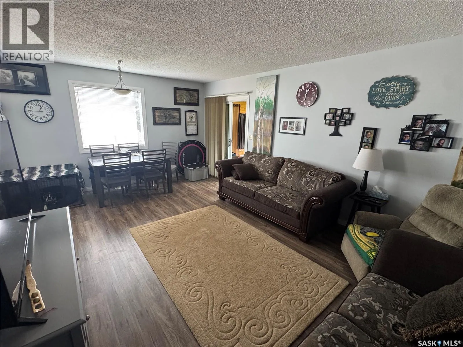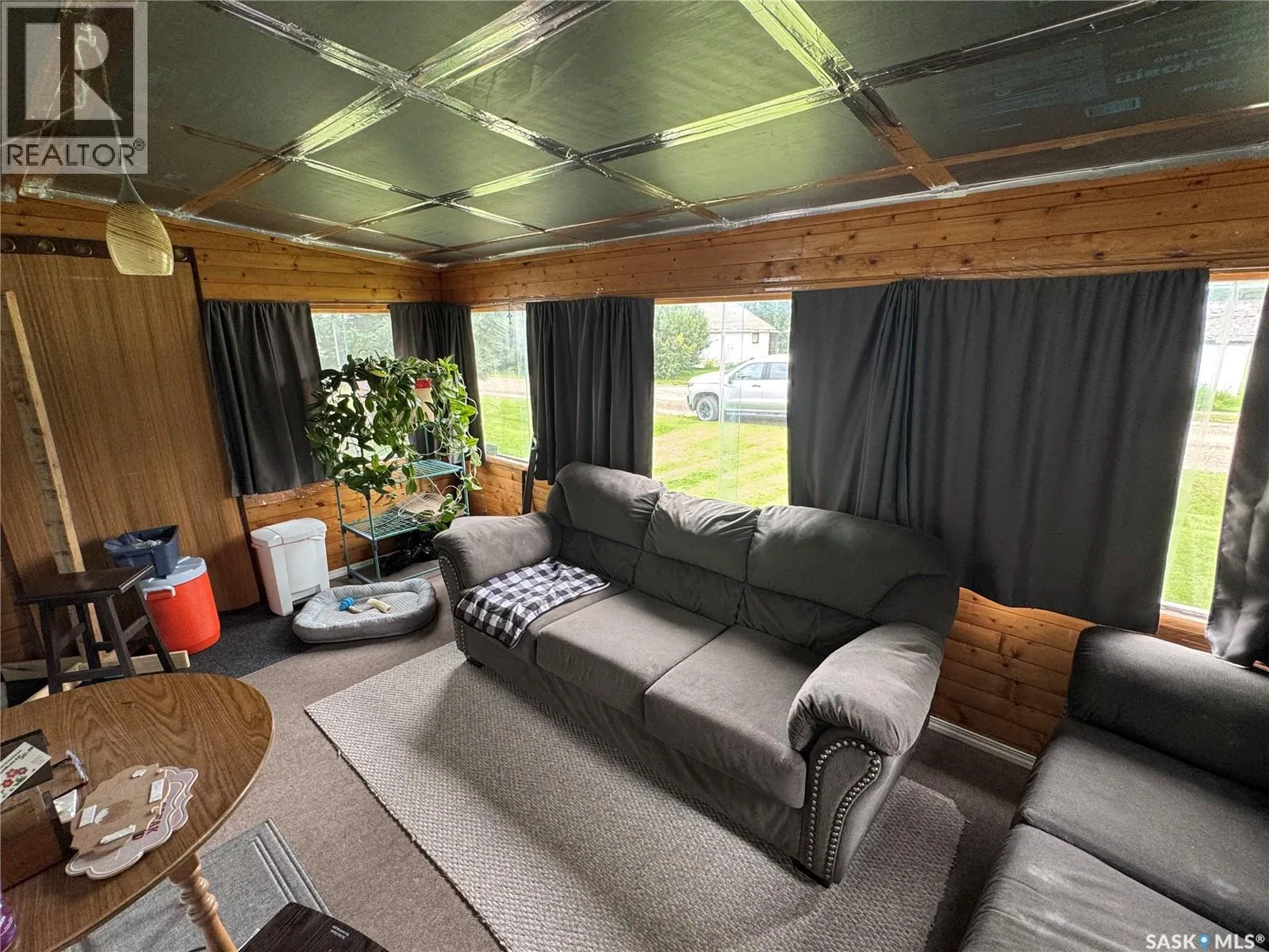 Take some time to slow down and relax in this beautifully maintained home located at 202 2nd Ave in the peaceful town of Spalding, SK, close to many employment opportunities in the area, including Shulte Industries, BHP Potash Mine, Doepker Industries, and more. If you are searching for a move-in ready property with plenty of space for a growing family, this charming bungalow may be exactly what you have been looking for. Built in 1950, this 947 square foot home sits on an oversized, fully fenced lot with a large backyard and large side deck that is perfect for entertaining when friends and family come to visit. The property offers exceptional storage options, including a 10 x 15 shed, a 16 x 24 detached garage, and an additional carport that provides ample covered parking and storage space. Upon entering through the back, you are welcomed by a spacious porch that offers plenty of storage and features convenient main floor laundry along with a generous four-piece bathroom. From there, you step into the inviting open-concept kitchen, dining, and living area, highlighted by new vinyl plank flooring that runs throughout the main level. At the front of the home, a spacious three-season sunroom provides a delightful extension of your living space and the perfect spot to relax on warm summer evenings. The main floor is completed by two comfortable bedrooms, both well-sized for a growing family. The basement is also in excellent condition and adds even more functional living space, offering one large bedroom, a spacious family room, and a three-piece ensuite bathroom. Solidly built and thoughtfully maintained, this home presents a wonderful opportunity at an affordable price. Some recent upgrades include: Furnace 2024, water softener 2025, deck 2024, new fence, insulated sunroom floor, new skirting on sunroom and new walls on carport. Schedule your viewing today. (id:27476)