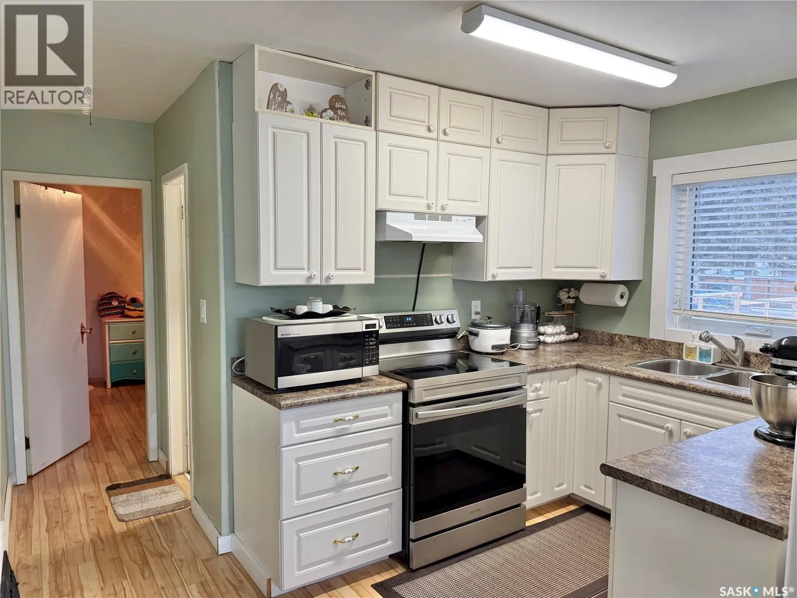 This inviting home is conveniently located just off Main Street and only a few blocks away from local schools. It offers two bedrooms on the main floor and a third bedroom in the basement. Updated in 2015, the home features additional living space on the main floor, including a laundry/mud room and a three-piece bathroom, along with an attached garage. A spacious living room flows into a kitchen/dining area, making it perfect for family gatherings. The partially framed basement, where renovations have already started, offers an opportunity to add more bedrooms and family living space. Newer basement windows meet egress standards, ensuring safety and compliance. The yard is fully fenced and provides back alley access for parking RVs or recreational vehicles. Since the addition in 2015, the home has seen several updates, including improvements to windows, doors, electrical and plumbing system, siding, and laminate flooring. The home is being sold fully furnished - so easy moving for you! Most of the furniture is very new! This home is ready for you to move right in, so don't hesitate to call for more information or to schedule your personal viewing. (id:27476)