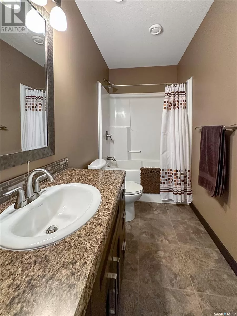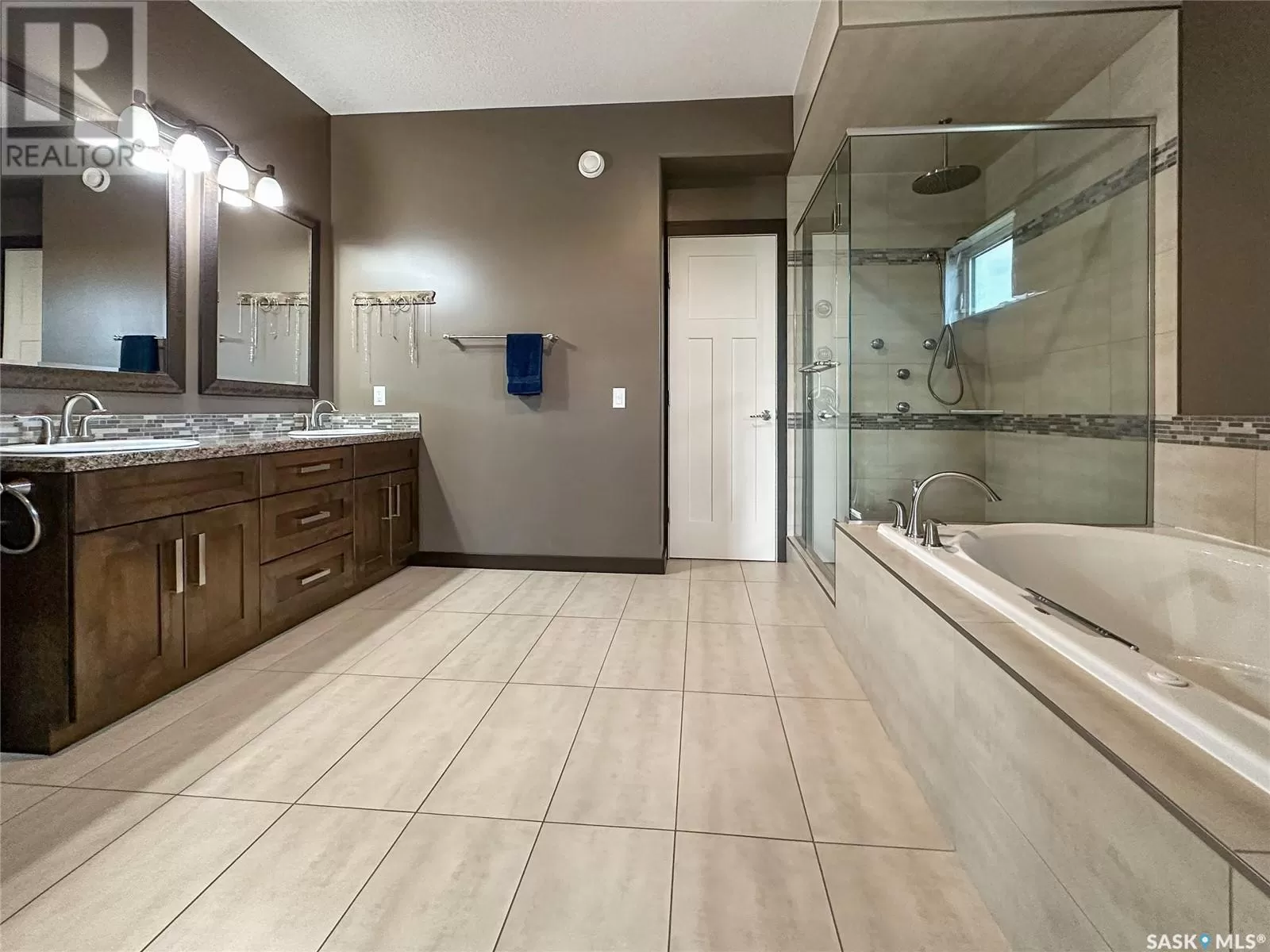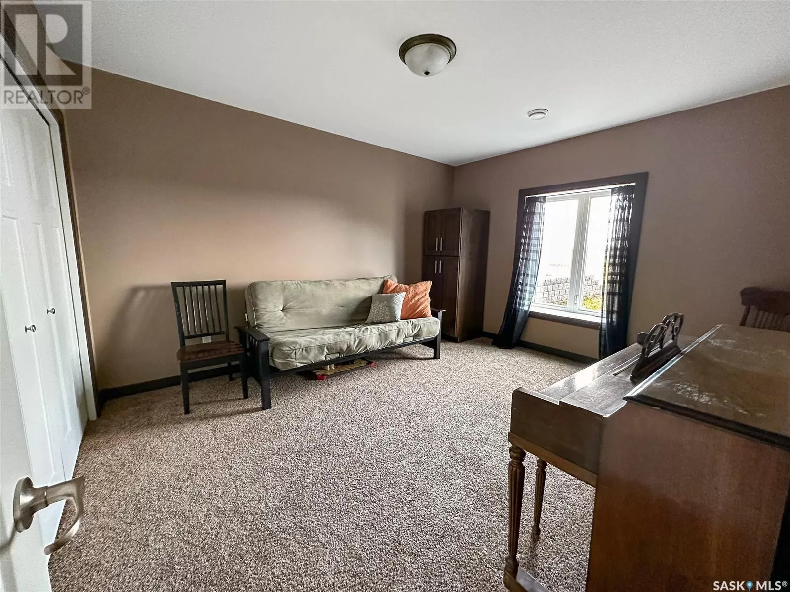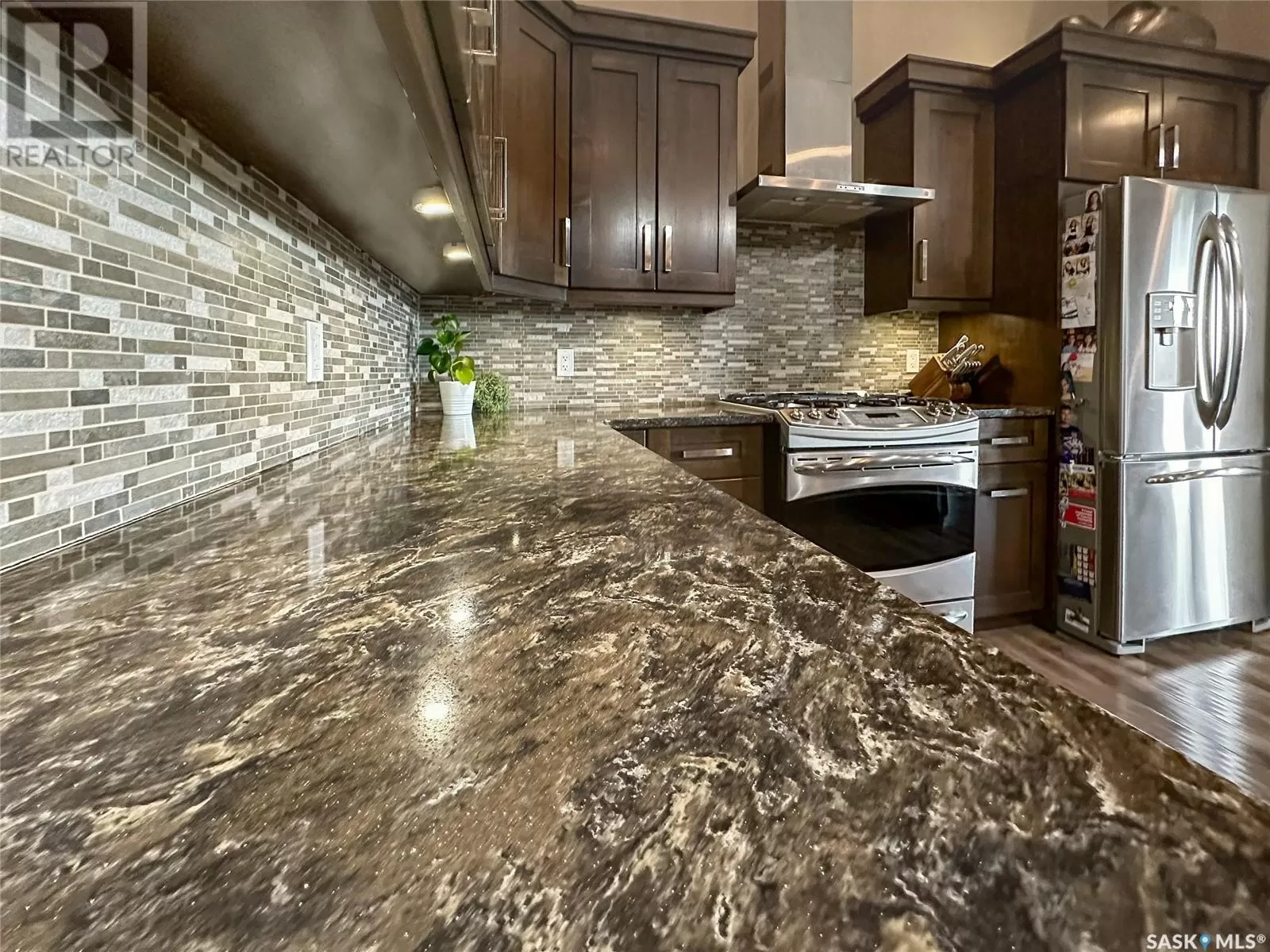 Kings & Queens, your castle is calling. Just off the beaten path of Holar Road you'll find a 15.09 walk out acreage & shop just west of HWY 8 with minimal gravel & maximum benefits. Covered decks, Vaulted ceilings, quartz countertops, a 2 way fireplace, stainless steel appliances and copious amounts of natural light set the stage for this show stopper from the front entrance to the top deck grilling station. Ceramic floor mudrooms are accented by a 2 pc bath of the double attached/insulated & heated garage so your snow gear or cow business isn't tracked through the house. A spacious office/gun room with a lane view keep business at the front and the party at the rear with all the bedrooms tucked in to their west and east facing areas of the home. A large kitchen with pull up bar stools, living room and formal dining room all flow with cohesive colorscheme and act as they should for the focus of the hub of this home. 2 bedrooms with large closets share a 4 pc bath on the west side of the home and separated by your homes hub on the eastern side is the colossal master, boasting a walk in closet & 5 pc ensuite including his & her sinks, soaker tub & custom shower with body jets. Below deck the walk out matches stride with the main floor in awesomeness with 2 extra guest beds, a massive home gym, laundry & 4 pc bath. The huge basement rec space have Sasks finest prairie views and with a handy wet bar & under stair wine room your set for some fantastic occasions at this location. Outside a mezzanine clad, 60 x 40 shop with 2/3s insulated & concrete floor with inflow heat lines ready to be hooked up await the next owners set up. The remaining area of the 60x40 runs as fantastic cold storage. Fire pits, huge mature trees, apple, Saskatoon and raspberry bushes add more value to the acres your about to acquire near the valley. Saskatchewan Potash Hot spot is calling you. Pull the trigger on your acreage owning dreams! (id:27476)