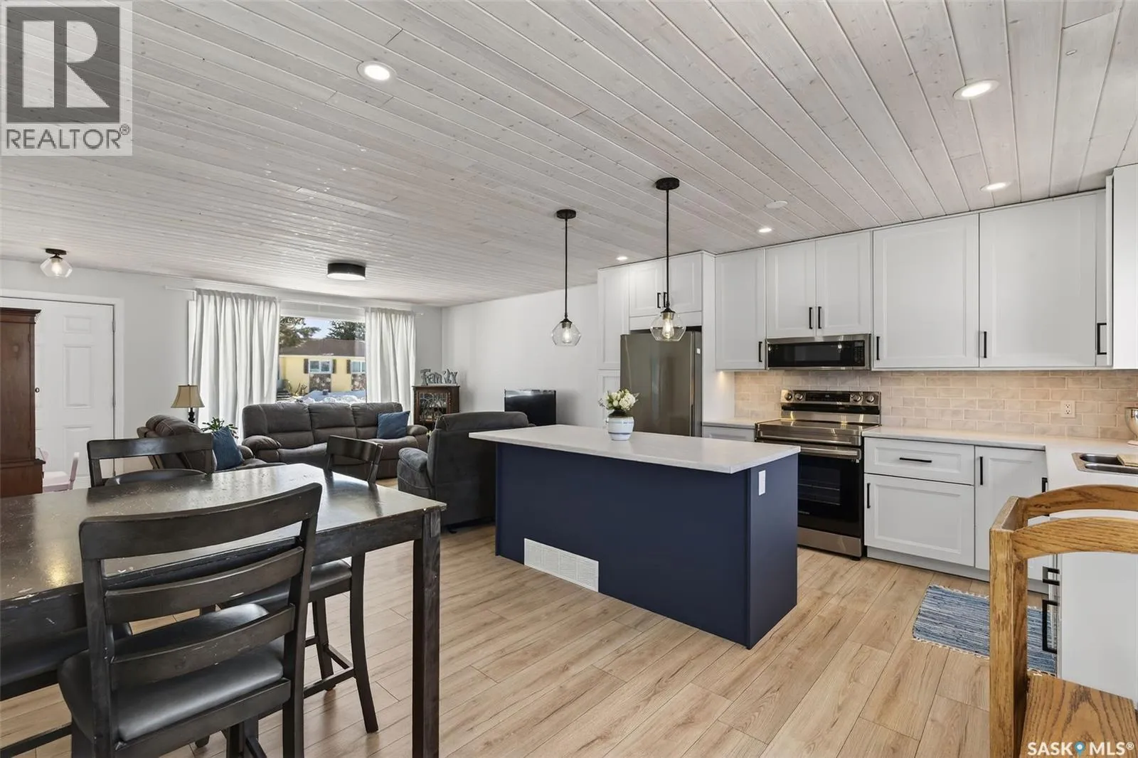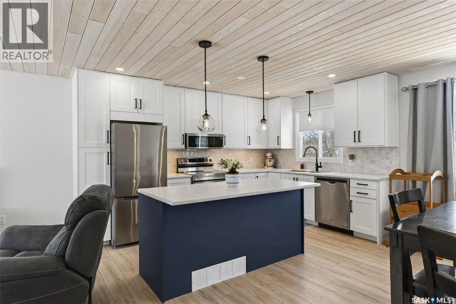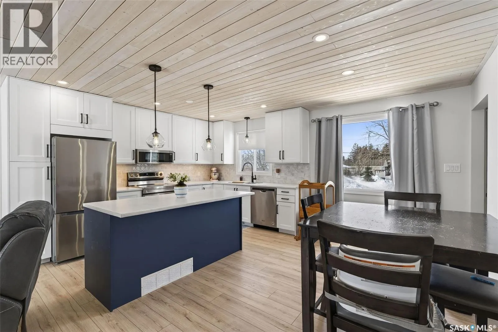 Welcome to 105 4th Avenue North, an immaculately maintained 1,062 sq. ft. bungalow in the vibrant small town of St. Brieux, Saskatchewan. From the moment you arrive, the pride of ownership is evident throughout this charming property. Situated on a massive 100 x 130 double lot, the home offers an ideal blend of space and comfort, all within walking distance of the local school. Outside, the expansive yard provides plenty of room to enjoy, while the spacious 26 x 30 detached garage offers ample space for parking, storage, or a workshop. Inside, youâll find a bright and welcoming open concept kitchen that has been completely redone in recent years, featuring modern appliances, an eat-in dining area, and brand-new laminate flooring. Just beyond, the cozy living room is filled with natural light thanks to large windows, creating a warm and inviting atmosphere. The main floor also includes a convenient laundry room off the kitchen, three comfortable bedrooms perfect for a growing family, and a beautifully updated four piece bathroom that reflects the same care and attention seen throughout the home. Downstairs, the finished basement adds even more versatility, offering an additional bedroom, a newly renovated three-piece bathroom, and a spacious family room with the potential to create another bedroom if desired. A large cold room and abundant storage space further enhance the homeâs functionality. Over the past five years, the home has seen numerous valuable upgrades, including new shingles, a fully renovated kitchen, new central air conditioner, updated bathrooms, vinyl siding, new appliances, and updated flooring on both levels, providing added peace of mind for buyers. Whether youâre a young family, looking to downsize, or searching for a move-in-ready home in a welcoming community, 105 4th Avenue North presents a rare opportunity. Book your private showing today. (id:27476)