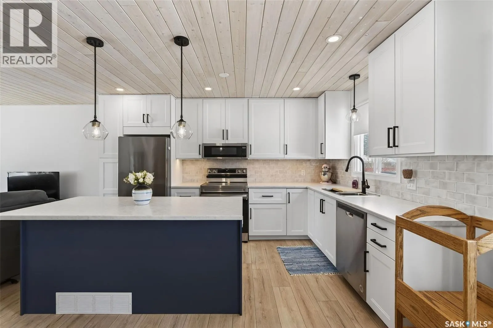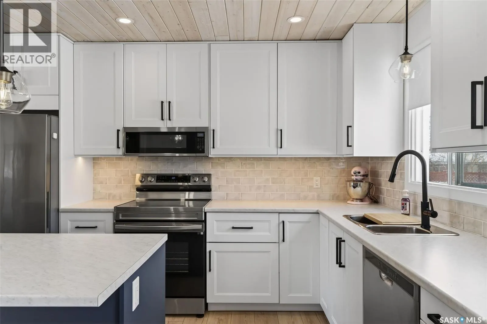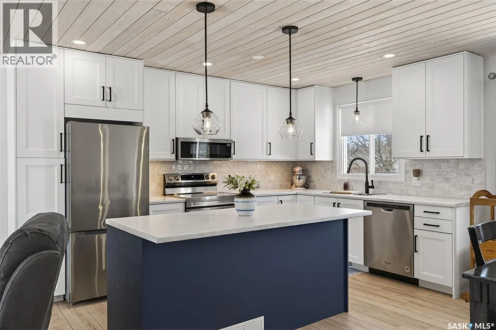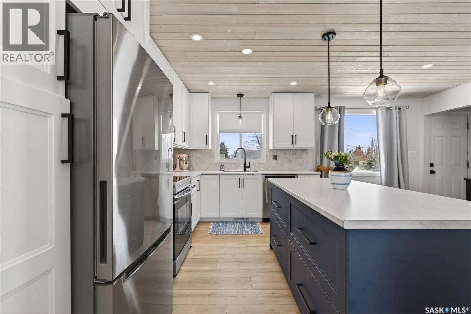 Welcome to 105 4th Avenue North, an immaculately maintained 1,062 sq. ft. bungalow in the vibrant small town of St. Brieux, Saskatchewan. From the moment you arrive, the pride of ownership is evident throughout this charming property. Situated on a massive 100 x 130 double lot, the home offers an ideal blend of space and comfort, all within walking distance of the local school. Outside, the expansive yard provides plenty of room to enjoy, while the spacious 26 x 30 detached garage offers ample space for parking, storage, or a workshop. Inside, youâll find a bright and welcoming open concept kitchen that has been completely redone in recent years, featuring modern appliances, an eat-in dining area, and brand-new laminate flooring. Just beyond, the cozy living room is filled with natural light thanks to large windows, creating a warm and inviting atmosphere. The main floor also includes a convenient laundry room off the kitchen, three comfortable bedrooms perfect for a growing family, and a beautifully updated four piece bathroom that reflects the same care and attention seen throughout the home. Downstairs, the finished basement adds even more versatility, offering an additional bedroom, a newly renovated three-piece bathroom, and a spacious family room with the potential to create another bedroom if desired. A large cold room and abundant storage space further enhance the homeâs functionality. Over the past five years, the home has seen numerous valuable upgrades, including new shingles, a fully renovated kitchen, new central air conditioner, updated bathrooms, vinyl siding, new appliances, and updated flooring on both levels, providing added peace of mind for buyers. Whether youâre a young family, looking to downsize, or searching for a move-in-ready home in a welcoming community, 105 4th Avenue North presents a rare opportunity. Book your private showing today. (id:27476)