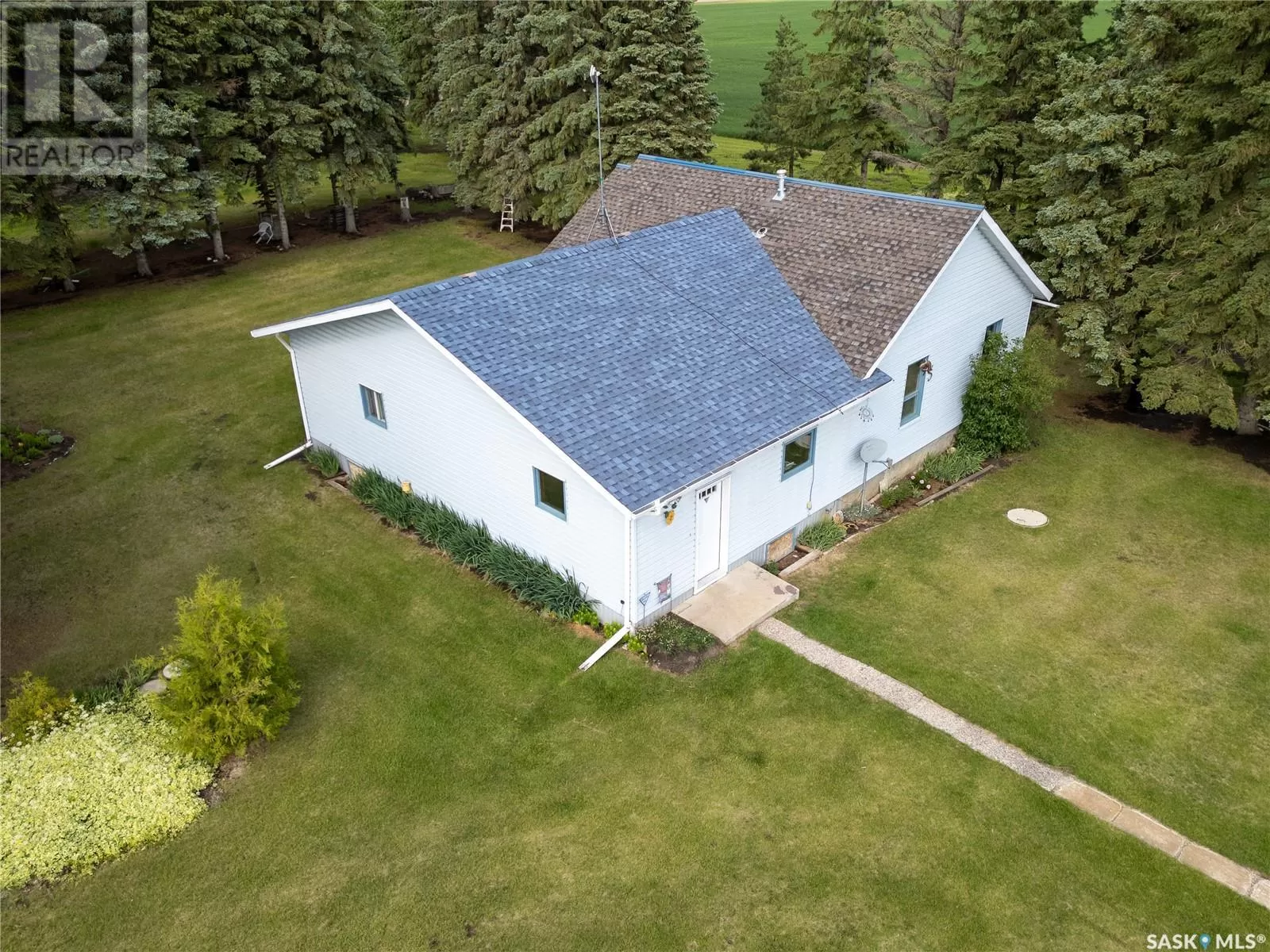 Spacious 1676 bungalow nestled in a well-groomed 10/acre yard site with a Sask. Water Pipeline. Featuring 3 bedrooms, 2 baths, with an open kitchen, dining room, living room combination all with a charming fresh air fireplace. Kitchen has been upgraded to solid oak cabinets with a gas kitchen range, a spacious main floor laundry area is conveniently located between the master bedroom and kitchen/dining rooms. Basement is partially finished, natural gas HEE Furnace and Hot Water Tank upgraded in 2022. Also included is a 40' x 48' insulated shop with hydraulic car lift and a 38' x 70' metal Quonset. Yard includes pines and poplar. Fruit trees include apples, pears, Saskatoons, sour cherry, raspberry patch, strawberry patch and a well-established asparagus patch. Other features are perennial flower beds, wild orchids, lilies, carnations, lilies, Irises, lupins and poppy patch. Call now and get moving! (id:27476)