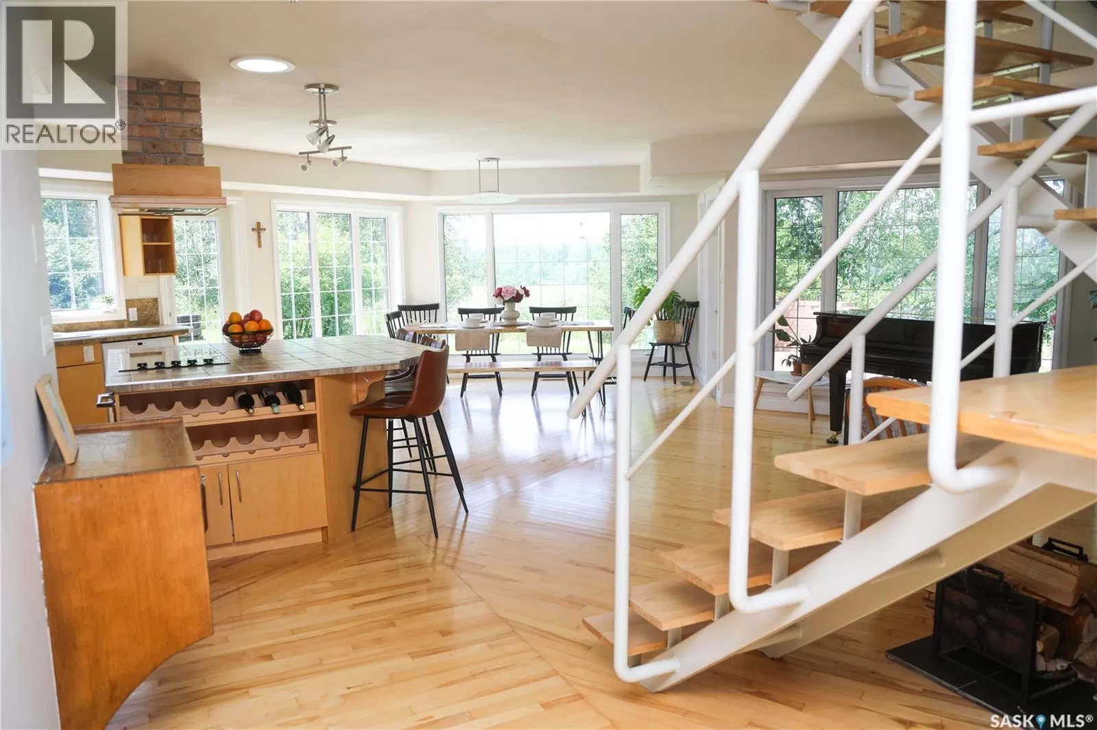 2 parcels along south Saskatchewan river south of St. Laurent Ferry. Stunning Riverfront Acreage â RM of St. Louis. Experience the perfect blend of luxury and nature on this 17-acre riverfront property along the South Saskatchewan River, just south of the St. Laurent ferry. This exceptional 1.5-storey home is designed to take full advantage of its picturesque surroundings, with large windows offering panoramic river views. The spacious, open-concept main floor features hardwood flooring, a cozy wood-burning stove, and a kitchen with built-in appliances, a large island with a cooktop, and a walk-in pantry. The adjoining dining and living areas flow effortlessly onto a generous patioâideal for entertaining or unwinding. The main floor also includes a luxurious primary bedroom with a 5-piece ensuite and walk-in closet. It also has a 2-piece guest bathroom, a laundry room, storage room and a mudroomâall connected to an insulated two-car garage. Upstairs, an open staircase leads to a bonus room, two more bedrooms, an office, and a 4-piece bathroom. The home is heated by a geothermal system, with utilities located in the crawlspace. The property offers complete privacy with mature trees, walking trails to the river, and a firepit area. Additional features include an orchard with Sea buckthorn , garden space and various fruit trees. PLUS a second home, a recently renovated 2-bedroom bungalow with a new deck. For hobbyists and storage, thereâs a massive 40' x 80' metal-clad shop with a concrete floor, plus a 25' x 35' cold storage shed. Peaceful, private, and rich with opportunity, itâs a place where you can enjoy all that Saskatchewanâs four seasons have to offer. Call today! (id:27476)