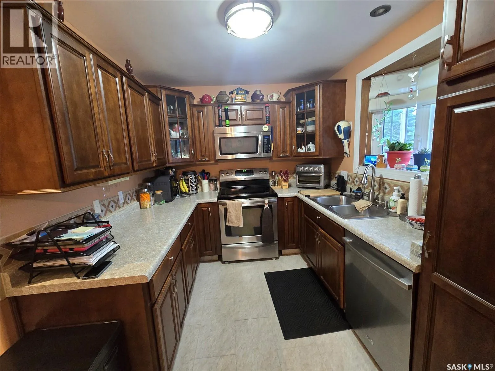 Looking for a great family home, come check out 808 Assiniboia Ave in Stoughton SK. This home offers 1216 sq.ft on the main level, the main level consists of the kitchen/dining room, living room, 3 bedrooms, 3 piece bathroom. The basement offers a living room, bonus room, bedroom, 4 pc bathroom, Utility room and a lot of storage rooms. The double attached garage is heated and insulated with room to have a work area, just behind the garage you will find the hot tub room. The backyard is a little oasis of it's own, with a large deck, flower beds and a little pond, natural gas fireboxes, natural gas bbq hookups at the front and back yards. (id:27476)