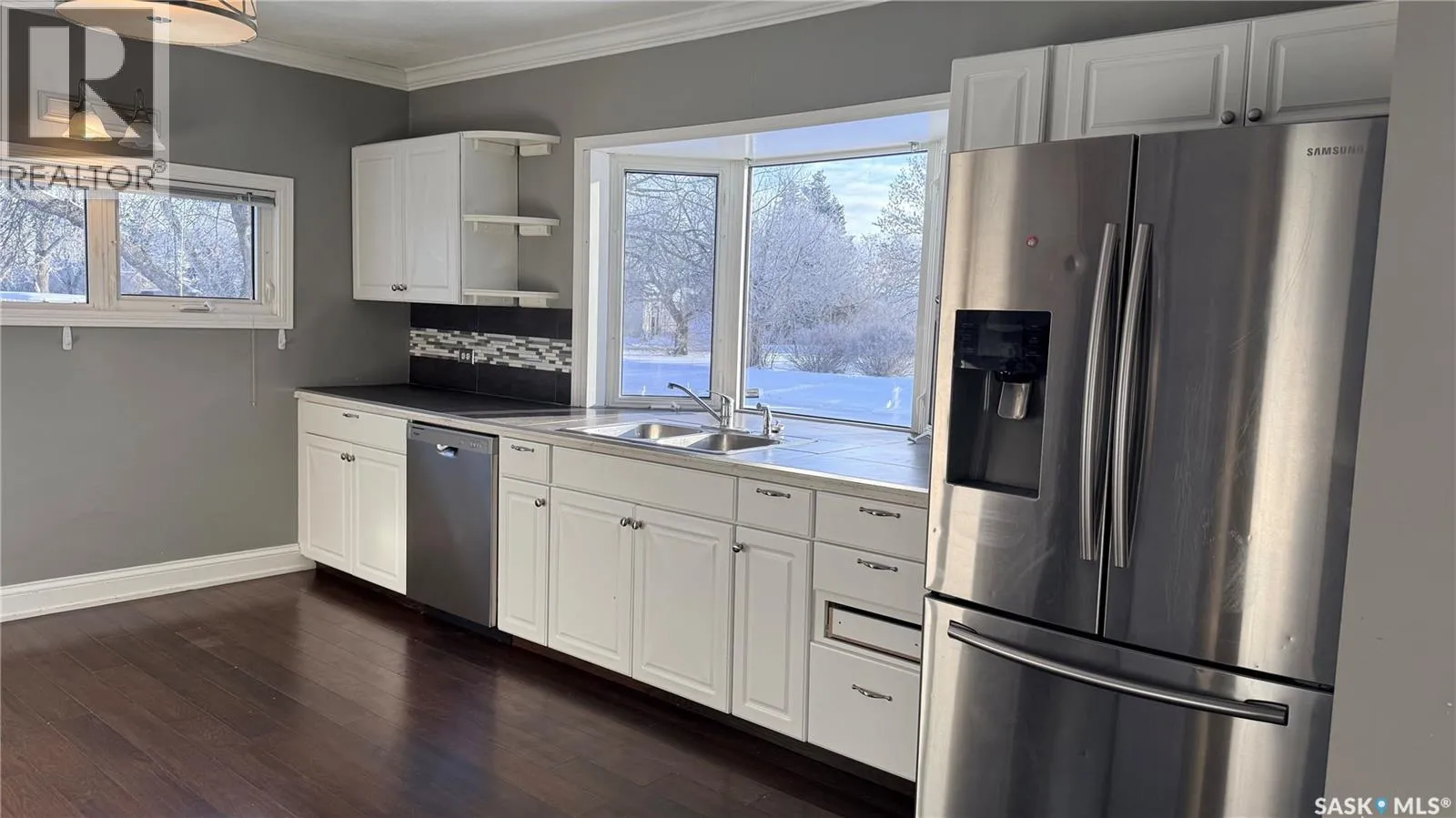 Welcome to this tastefully updated 936 sq. ft. bungalow, offering a perfect blend of comfort and style in a peaceful small-town setting. Situated on a spacious double lot, this bright and airy home features 3 bedrooms, 2 bathrooms, and a functional layout ideal for families, first-time buyers, or those looking to downsize. The fully finished basement adds valuable living space, perfect for a rec room, home office, or guest suite. Additional highlights include a double car garage, a partially fenced yard great for pets or outdoor entertaining, and plenty of room to grow. Move-in ready with modern updates throughout, this home combines charm, convenience, and spaceâall in a tranquil community setting. (id:27476)
