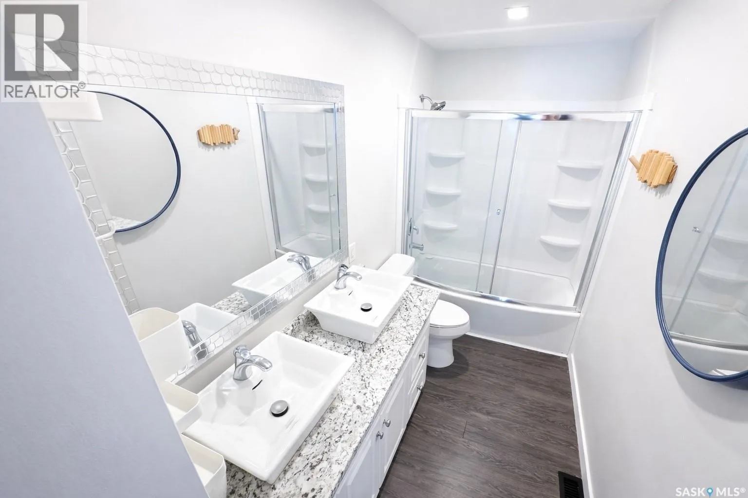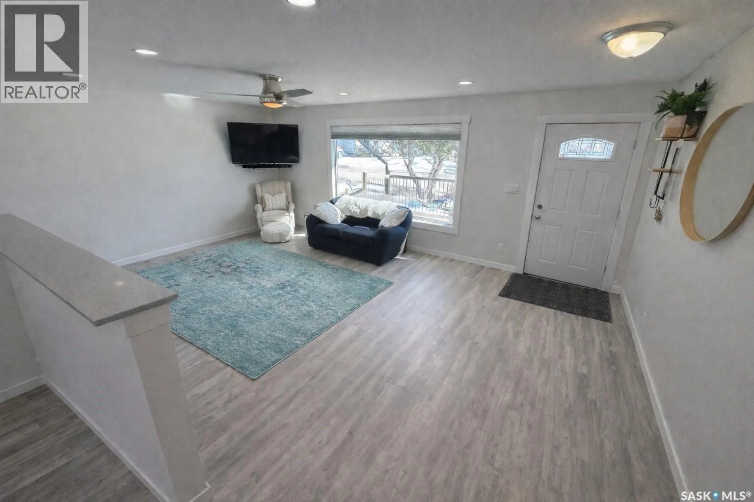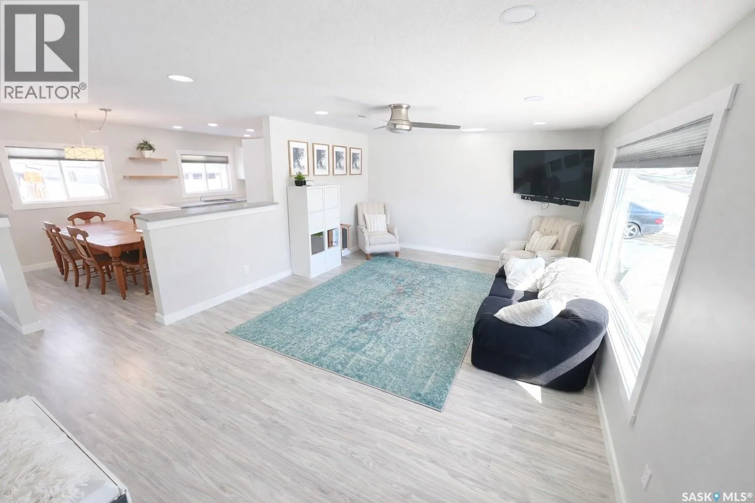 Welcome to 214 Pierce St in Strasbourg; where small town charm meets everyday convenience, just 45 minutes from Regina. Nestled near Last Mountain Lake, Rowanâs Ravine Provincial Park, and a collection of lakeside resorts and amenities, this location offers the perfect balance of relaxation and recreation. Strasbourg is a wonderful, tight knit community known for its welcoming atmosphere, slower pace, and quality of life; the kind of place where you truly feel at home. This beautifully updated 1,188 sq ft bungalow is filled with natural light and offers a bright, airy feel from the moment you step inside. The open concept layout is both functional and inviting, with fresh modern finishes throughout. The main floor features three spacious bedrooms and a stylishly renovated 4 piece bathroom with dual vanity. The fully updated kitchen is a true standout, showcasing granite countertops, newer cabinetry, and a clean, contemporary design ideal for both everyday living and entertaining. The fully finished basement extends your living space with a large, cozy family room, an additional bedroom, a 3 piece bathroom, and ample storage; perfect for growing families or hosting guests. Set on a generous double lot, the exterior has also been thoughtfully updated with newer vinyl siding, shingles, a front deck, new fencing, and a firepit; creating an ideal space to enjoy those beautiful Saskatchewan evenings. The oversized single detached garage adds even more functionality and value. Move in ready, bright, and beautifully updated; this home offers not just a place to live, but a lifestyle to love. (id:27476)