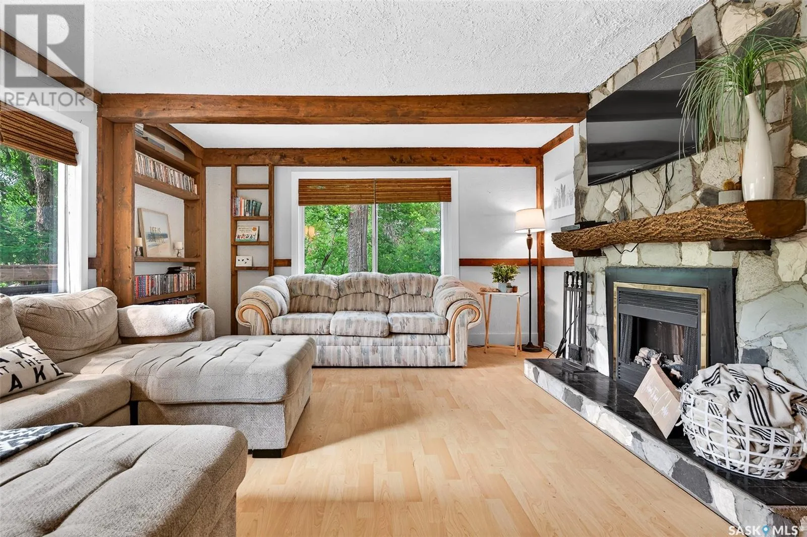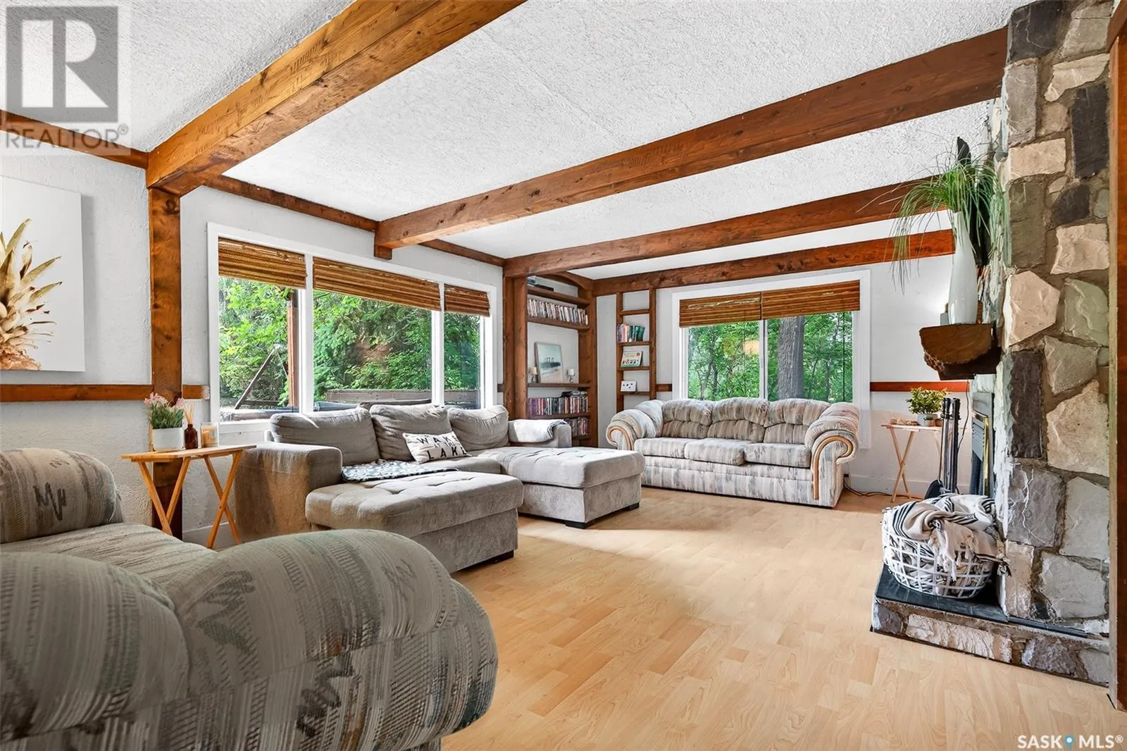 Are you looking for your own little spot to get away and relax? This might just be it! This super cute 4 bed / 1 bath four season cabin has all the charm you are looking for! Pulling up you will love the fully treed yard providing shade and lots of privacy. The large front deck features a large timber frame pergola. Heading inside you are greeted by a large mudroom - the perfect spot for getting ready for the lake. Heading into the spacious kitchen you are sure to love the wood burning stove, super chic dinette and patio doors to the back deck! We then head into a large living room with a rustic feel - a large stone heart with an electric fireplace and large wooden beams are sure to impress. There is a large primary bedroom with lots of built-ins and a 4 piece bathroom also on this level. Heading upstairs we find 3 more bedrooms - perfect for the kids! Off the back of the home we have a second large deck complete with an outdoor shower! The backyard runs up a hill and at the top is a super cool treehouse! If you are looking for a great spot to relax and let the kids grow up at the lake then this could be just the spot! This cabin has hookups for a washer and dryer. Available fully furnished to make your life easy! Reach out today to book your showing! (id:27476)