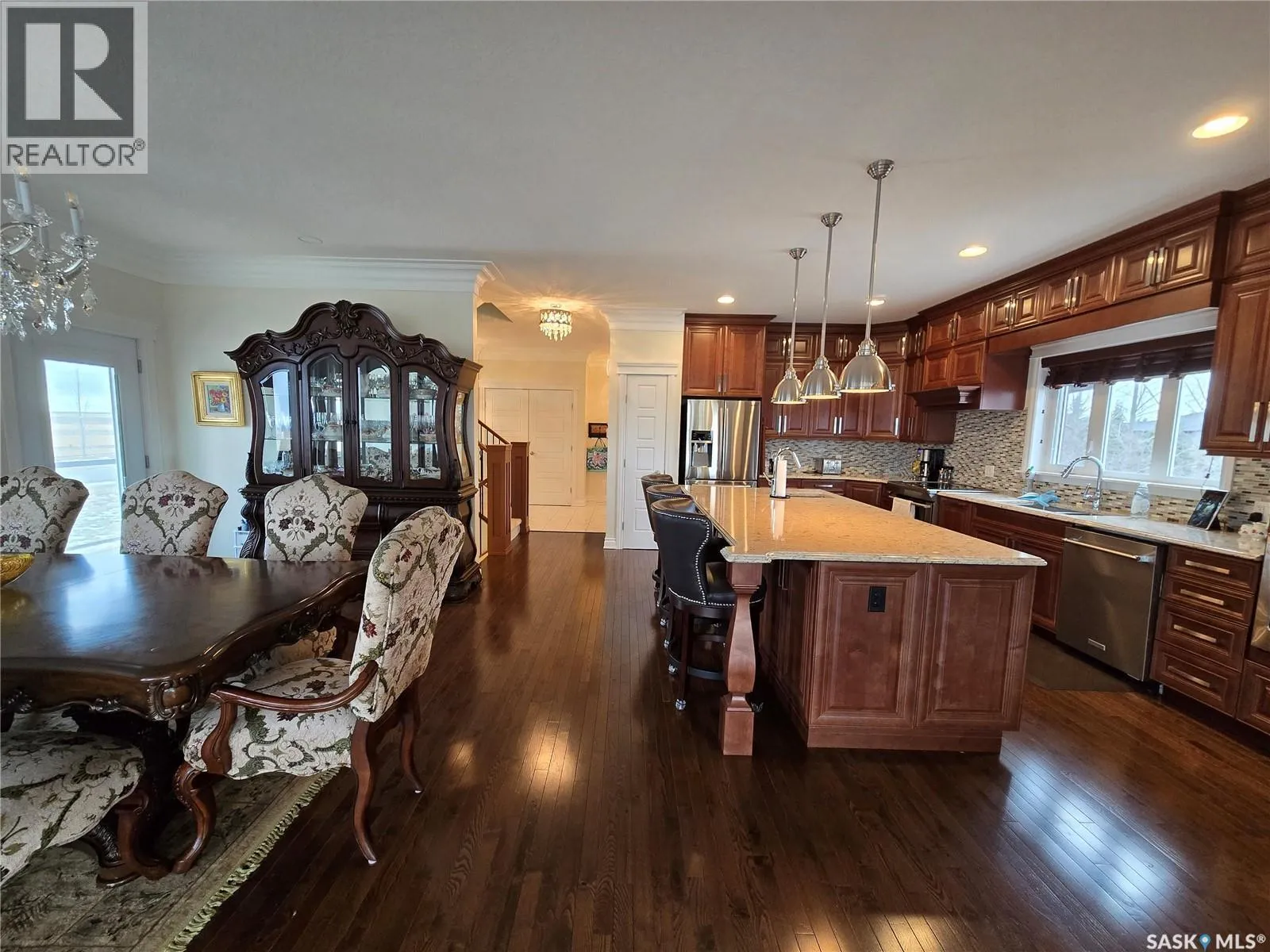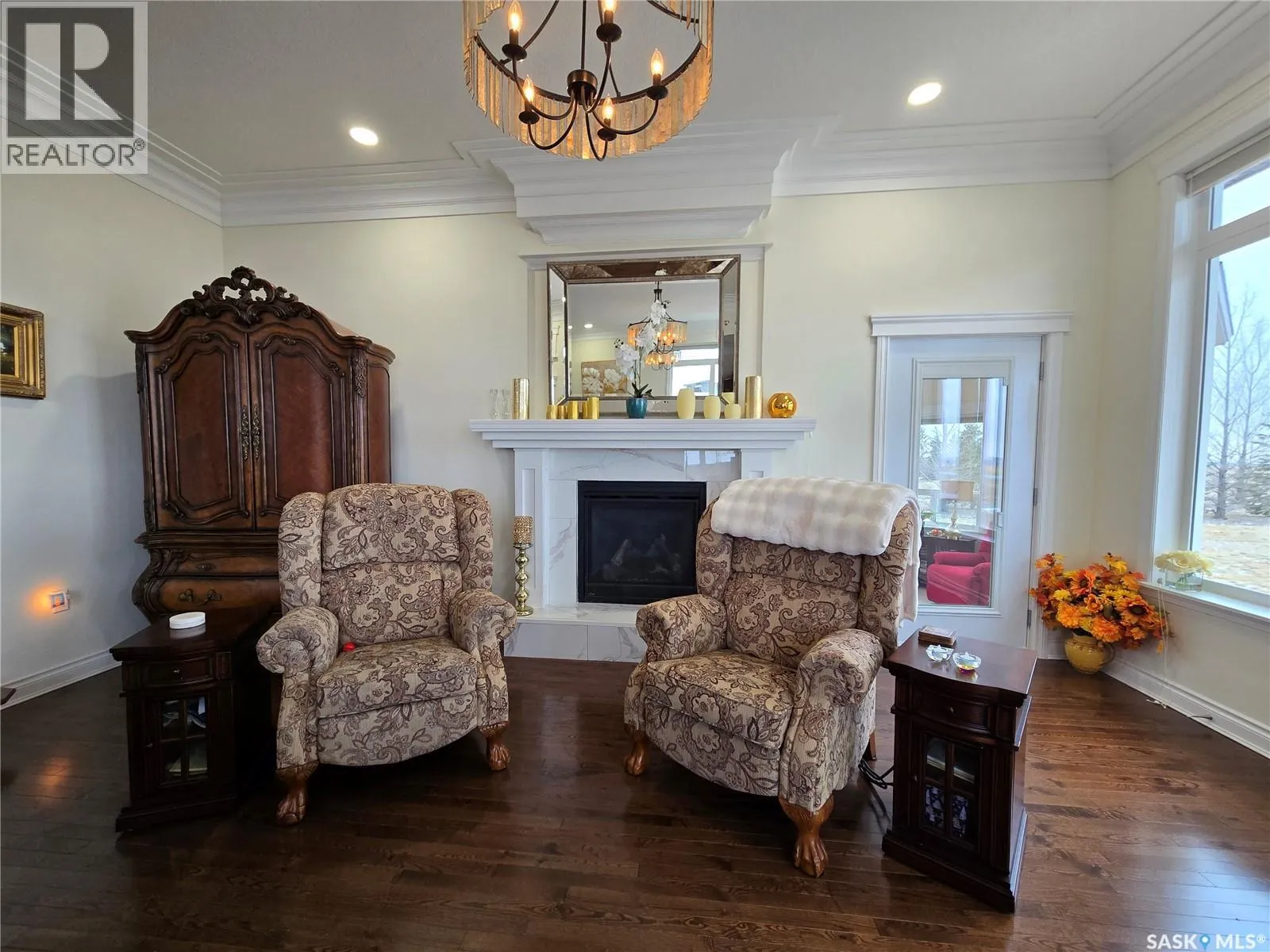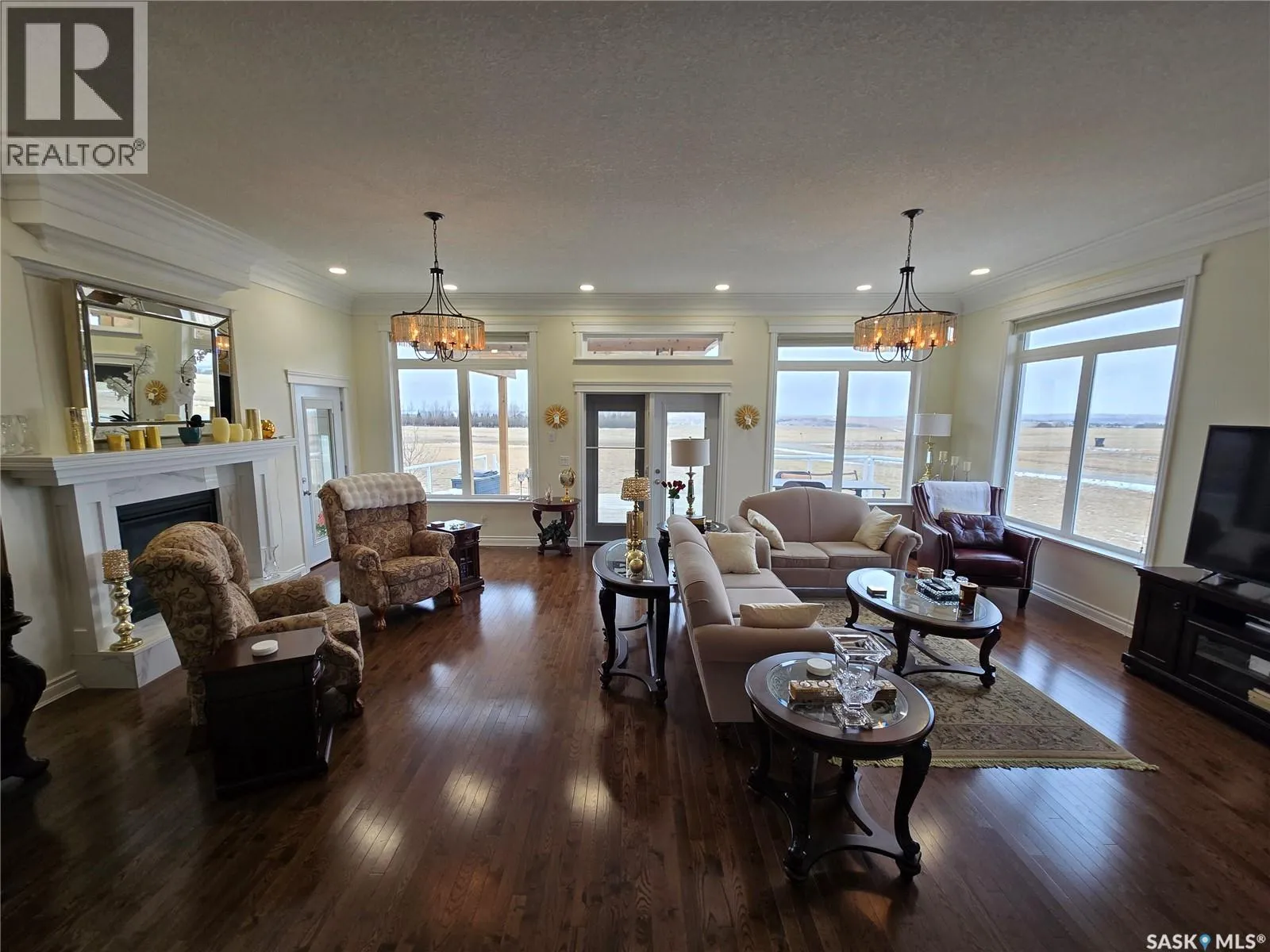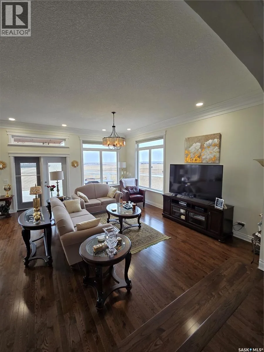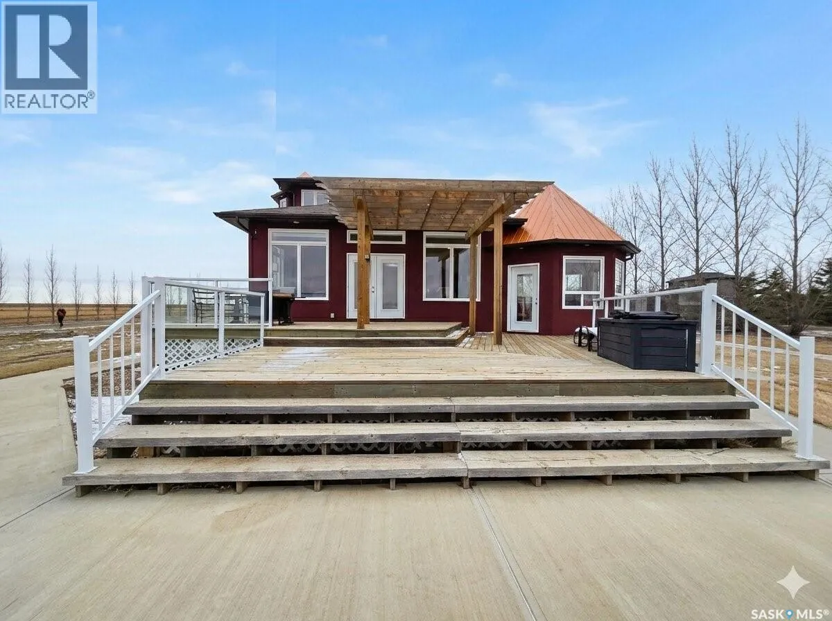 Set on 2.51 acres just outside Swift Current, this executive acreage was built with a clear vision â no expense spared and no detail overlooked. From the moment you step inside, the quality is obvious. A stunning entrance leads into a home finished with oak hardwood flooring, a high-end custom kitchen with quartz countertops and beautifully crafted cabinetry, and spaces designed to feel both elevated and comfortable. Built with both comfort and quality in mind, the home is double walled to enhance sound resistance and create a quieter, more solid feel throughout. Beautiful crown moulding adds character and craftsmanship to the main living spaces, while the dropped living room on the main floor creates depth and a subtle architectural statement. The home is also wired for an alarm system The primary suite is truly next level â double door entry, massive layout, private balcony, walk-in closet, and a 5-piece ensuite that feels like a retreat. A bright 3-season sunroom and large outdoor deck make it easy to enjoy both sunrise coffee and summer evenings. Downstairs features in-floor heat (on its own thermostat) and a fully set-up theatre room with built-in surround sound â perfect for movie nights, game days, or turning up the volume without disturbing the rest of the house. And then thereâs the shop. The 30x40 insulated shop is what truly sets this property apart. Whether you need serious workspace, storage for toys, or room for projects, this is a feature thatâs truly in demand. Add in the triple attached garage with mezzanine storage, and you have space for everything your lifestyle demands. The paved driveway and concrete work surrounding the home were thoughtfully designed to ensure proper grading and move water away from the foundation â just another example of the care and investment poured into this property. Make sure you book your showing today! (id:27476)