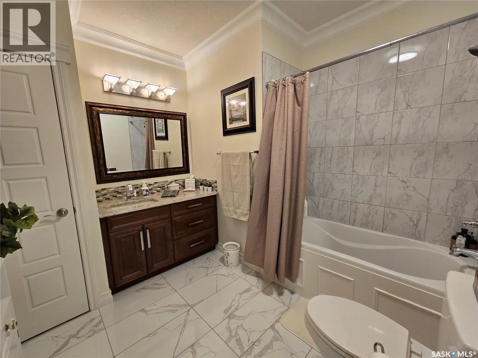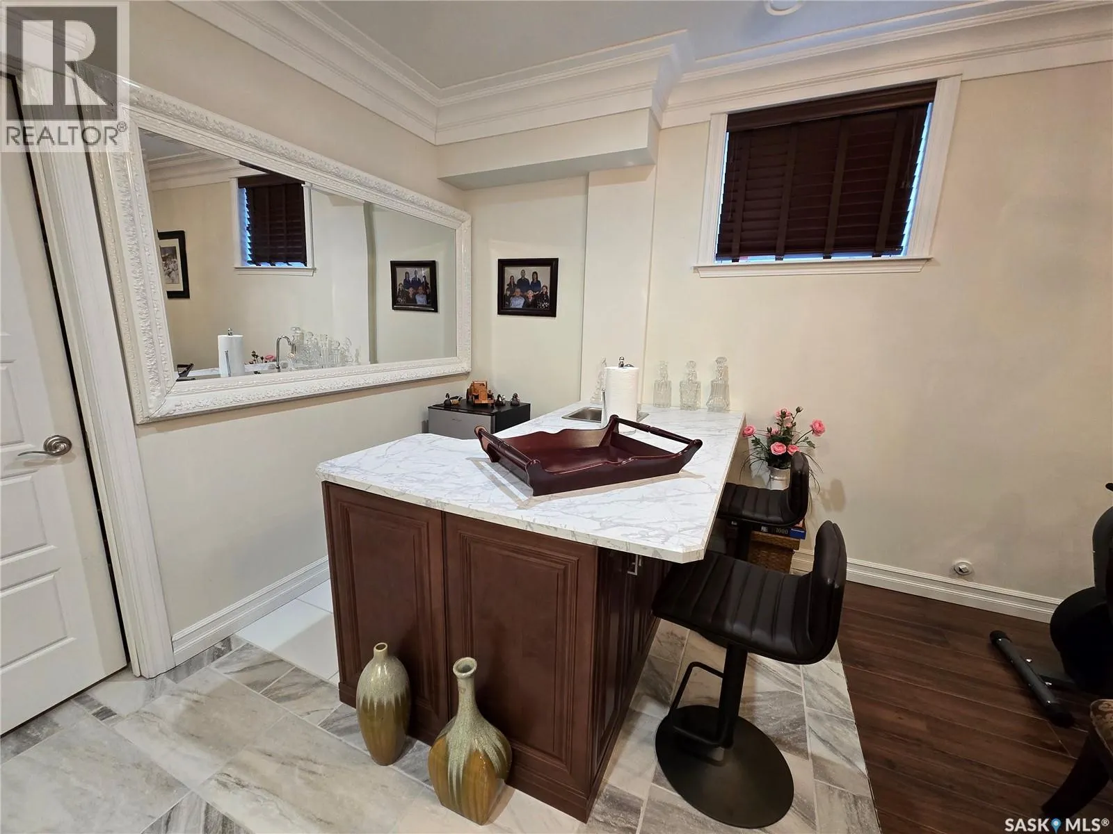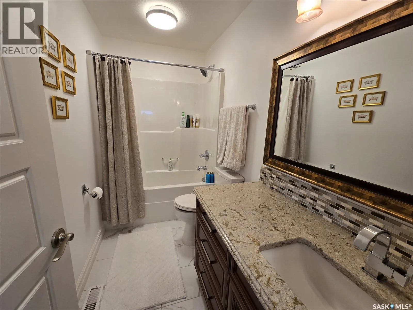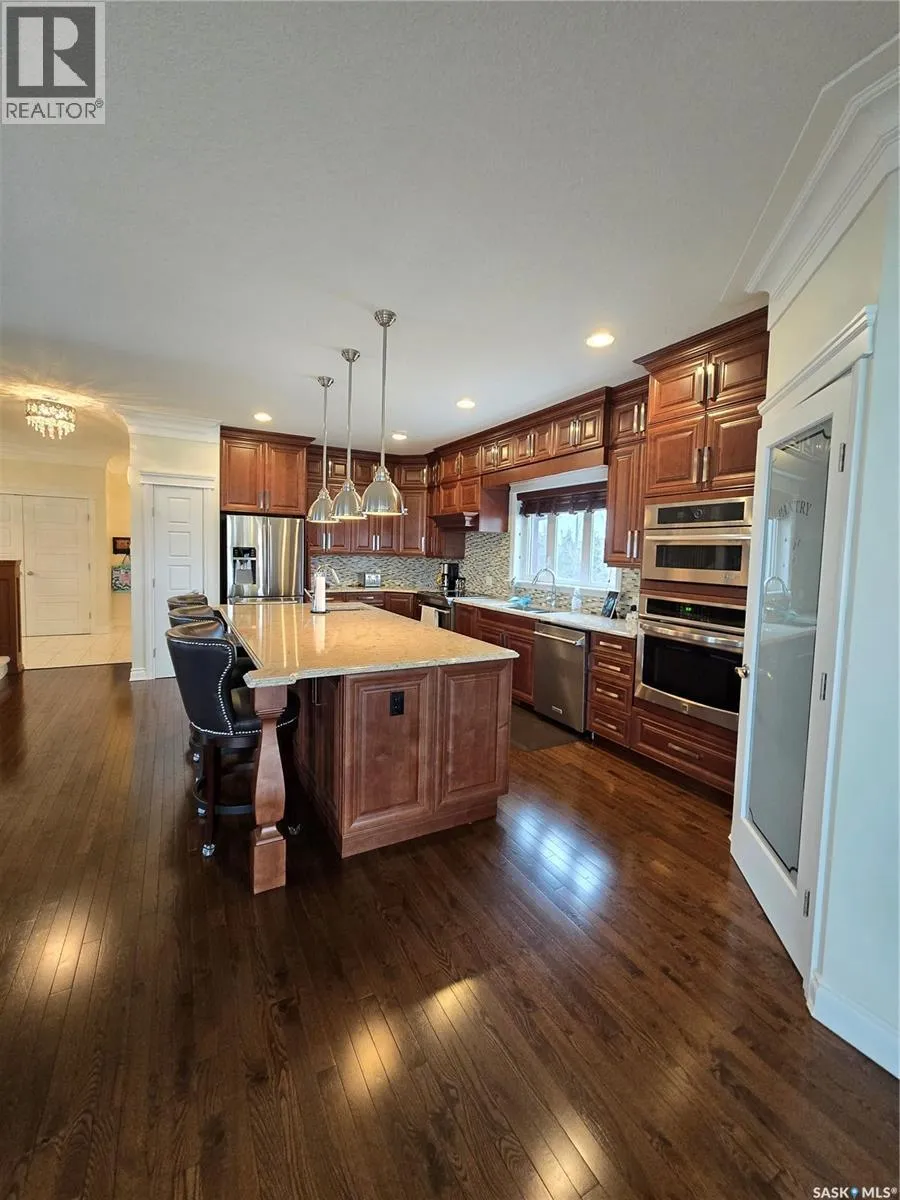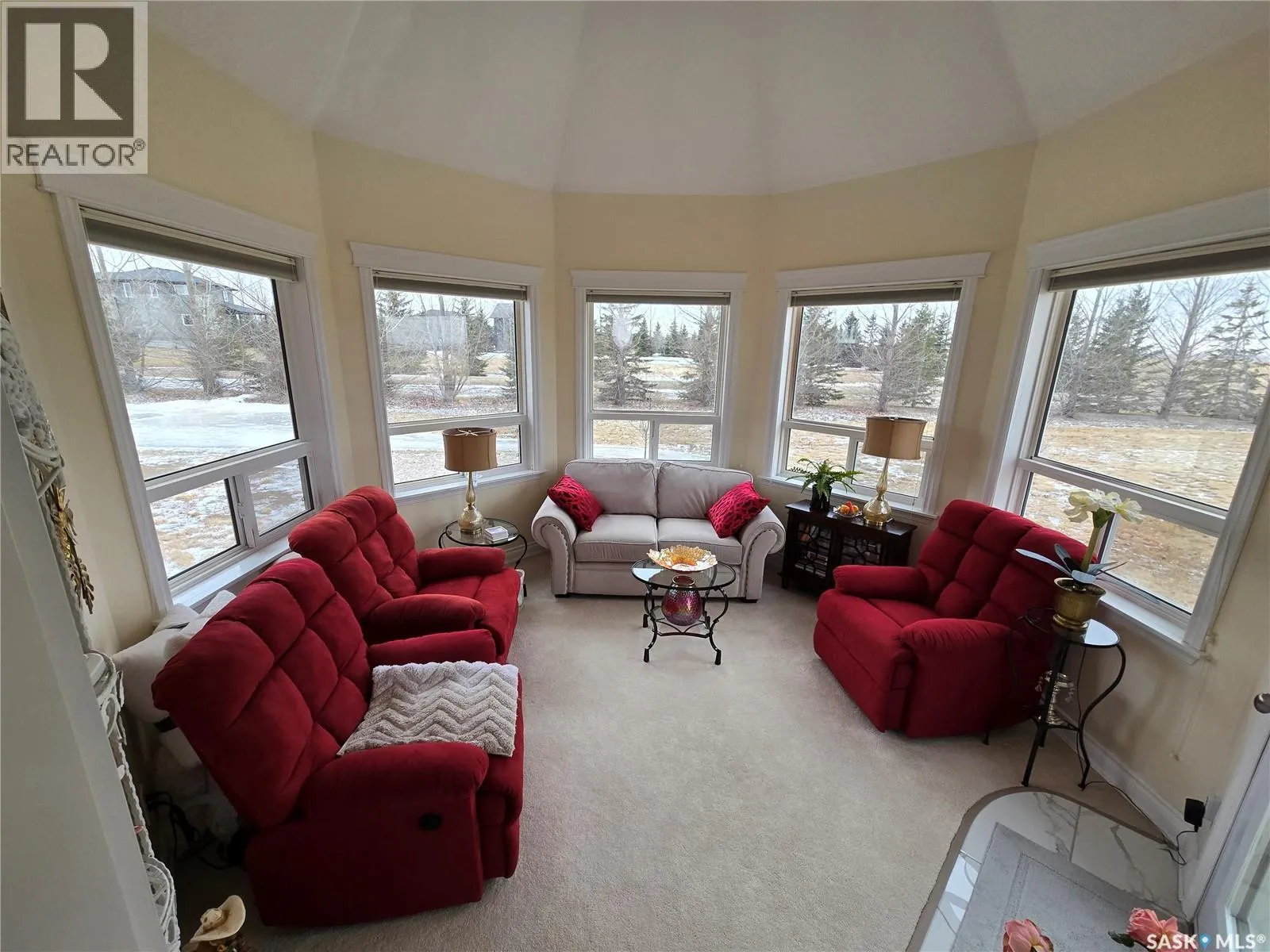 Set on 2.51 acres just outside Swift Current, this executive acreage was built with a clear vision â no expense spared and no detail overlooked. From the moment you step inside, the quality is obvious. A stunning entrance leads into a home finished with oak hardwood flooring, a high-end custom kitchen with quartz countertops and beautifully crafted cabinetry, and spaces designed to feel both elevated and comfortable. Built with both comfort and quality in mind, the home is double walled to enhance sound resistance and create a quieter, more solid feel throughout. Beautiful crown moulding adds character and craftsmanship to the main living spaces, while the dropped living room on the main floor creates depth and a subtle architectural statement. The home is also wired for an alarm system The primary suite is truly next level â double door entry, massive layout, private balcony, walk-in closet, and a 5-piece ensuite that feels like a retreat. A bright 3-season sunroom and large outdoor deck make it easy to enjoy both sunrise coffee and summer evenings. Downstairs features in-floor heat (on its own thermostat) and a fully set-up theatre room with built-in surround sound â perfect for movie nights, game days, or turning up the volume without disturbing the rest of the house. And then thereâs the shop. The 30x40 insulated shop is what truly sets this property apart. Whether you need serious workspace, storage for toys, or room for projects, this is a feature thatâs truly in demand. Add in the triple attached garage with mezzanine storage, and you have space for everything your lifestyle demands. The paved driveway and concrete work surrounding the home were thoughtfully designed to ensure proper grading and move water away from the foundation â just another example of the care and investment poured into this property. Make sure you book your showing today! (id:27476)