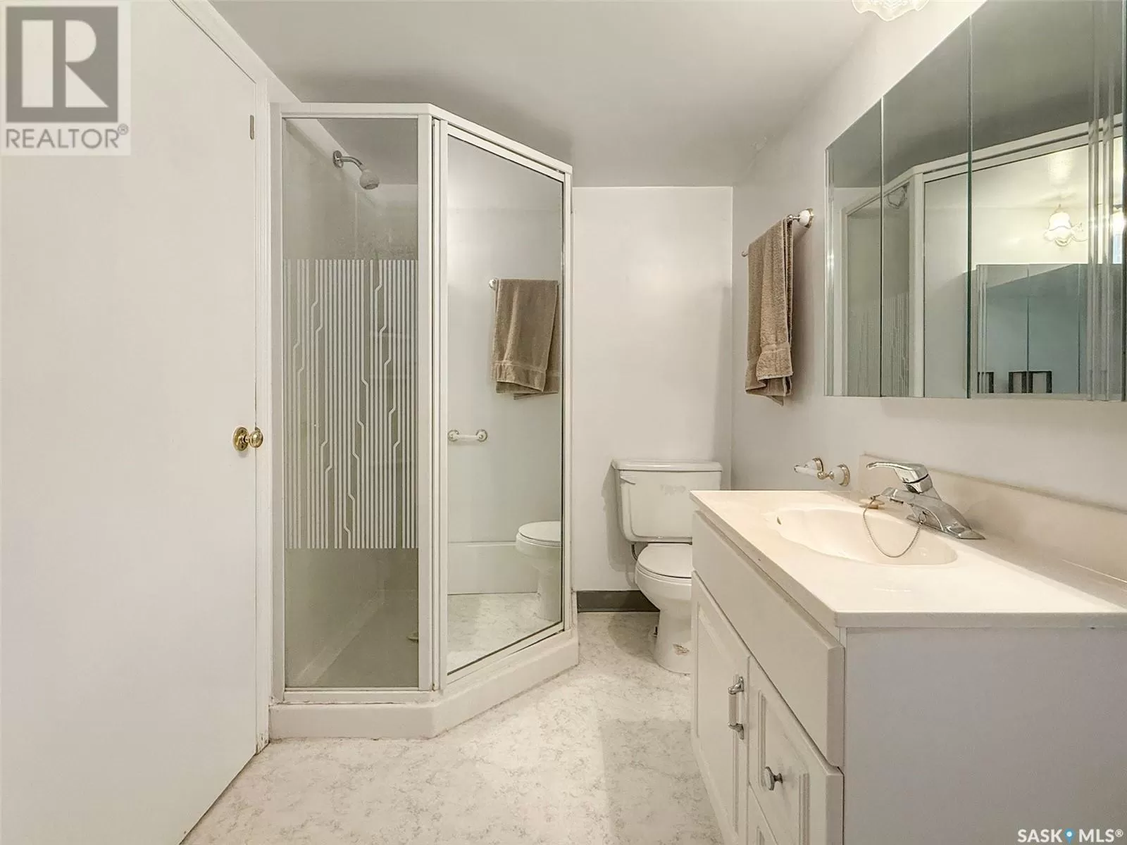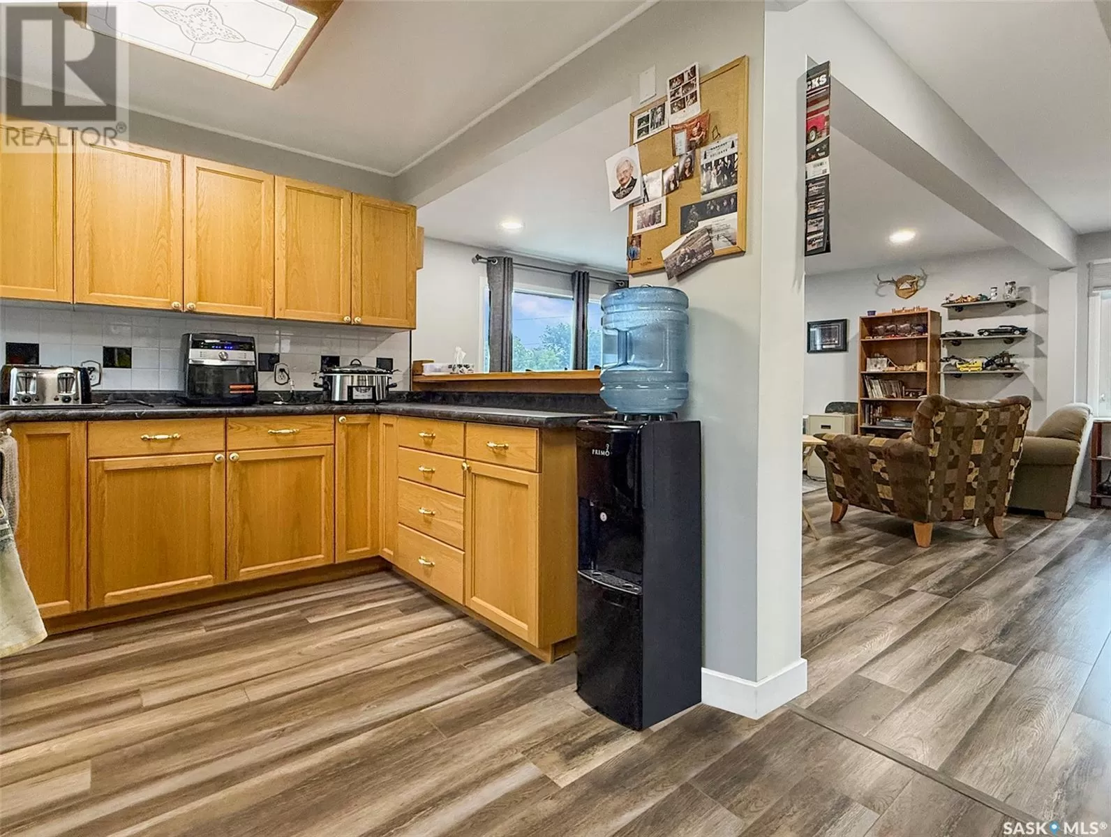 Welcome to this charming residence situated in a cozy northwest neighborhood. This home is move-in ready, allowing you to easily add your personal touch. Upon entering, you will be greeted by a spacious, open-concept living area with modern paint, updated baseboards, and trim, complemented by contemporary laminate flooring. The expansive kitchen, measuring 14 by 7 feet, is equipped with modern cabinetry and an island that seamlessly connects to the airy living room. It features a stainless steel appliance package, including a dishwasher, a tiled backsplash, and a double sink overlooking the yard. Enjoy the inviting front deck that overlooks the mature neighbourhood. On the main floor, you will find a fully renovated bathroom designed for relaxation, complete with a deep soaker tub surrounded by elegant tiles, along with an updated vanity, toilet, and vinyl tile flooring. The second floor boasts two spacious bedrooms, with the primary offering the convenience of two closets for his and hers. The partially finished basement includes a family room, ample storage spaces, a finished three-piece bathroom, and an updated utility room. In the utility room, you will discover a new PEX piping manifold, an energy-efficient furnace, and a central air conditioning system. This home features numerous PVC windows, updated pot lights, and trendy dark vinyl siding on the exterior, enhancing its curb appeal. The back of the property showcases a large porch, ideal for removing your boots after a day outdoors. The double-wide asphalt driveway provides ample off-street parking, complemented by adjacent green space that is perfect for outdoor activities for both pets and family members. Additionally, multiple sheds are included for extra storage. This residence offers a wonderful opportunity to experience comfortable living in a desirable location. (id:27476)