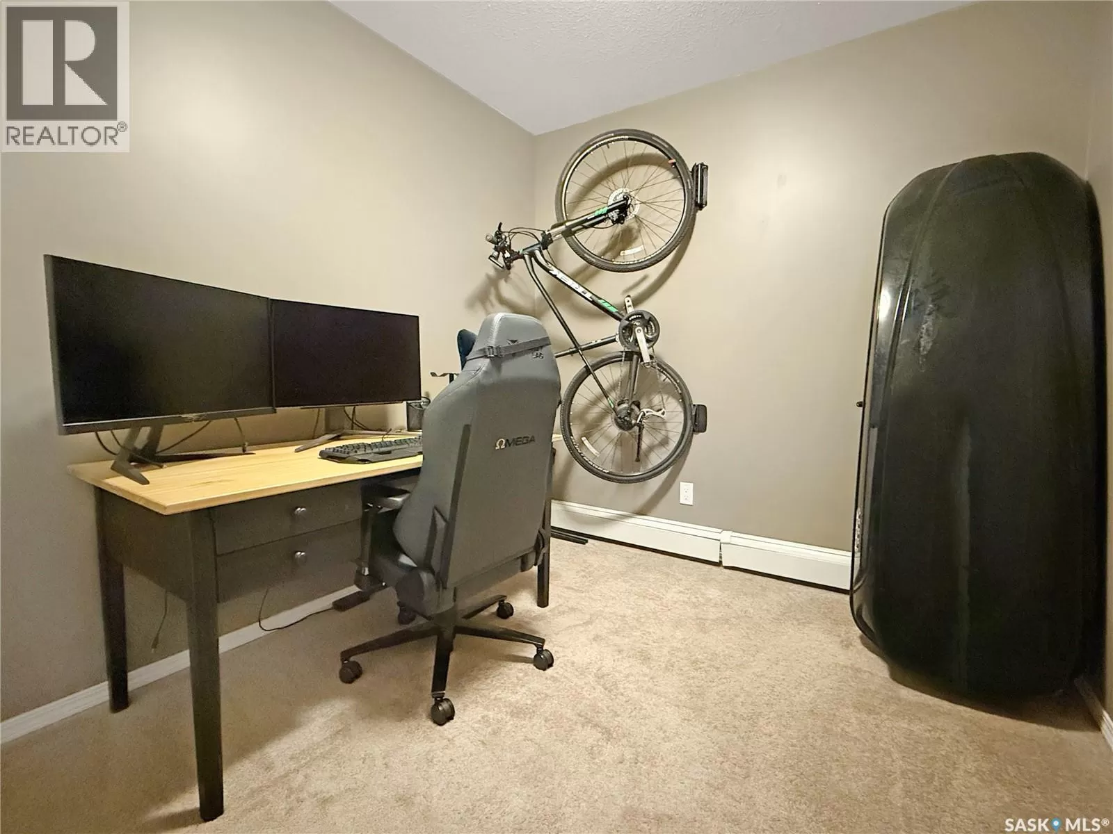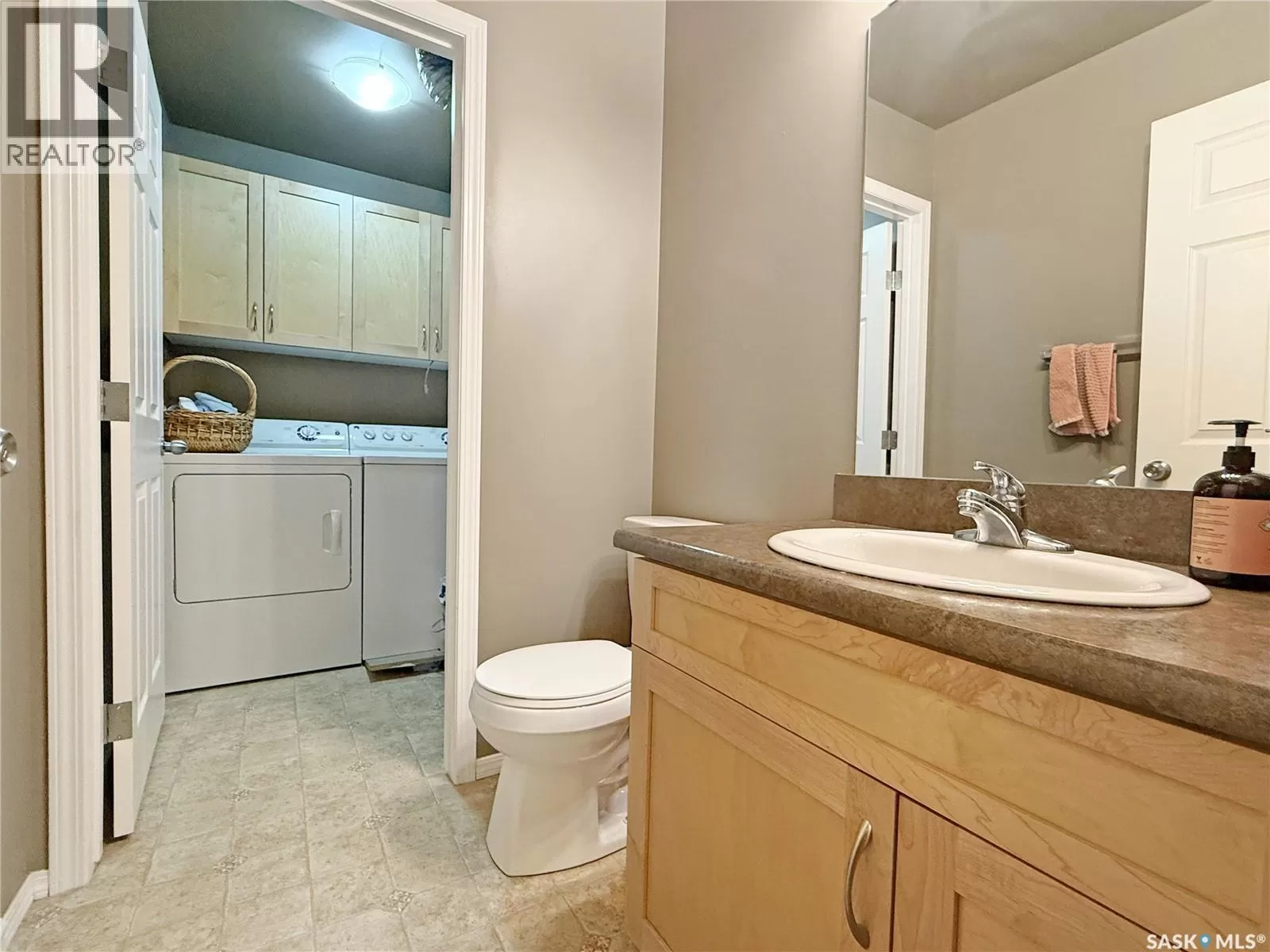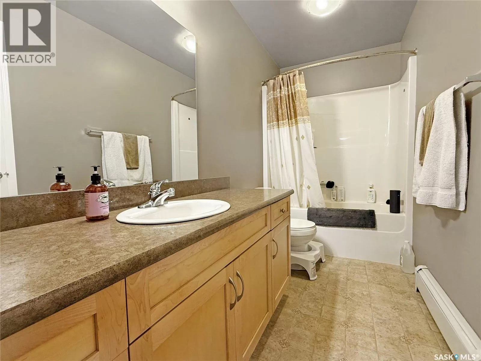 Discover the charm of 214 875 Gladstone St. E., a stylish condo that marries modern design with an open-concept floor plan in a fantastic location. Nestled near Swift Current Creek, this property offers convenient access to beautiful walking paths, the Chinook Golf Course, and Riverside Park. Built in 2015, this welcoming condo community caters to contemporary living. Inside, you'll find a spacious open-concept area featuring a U-shaped kitchen with blonde cabinetry, including a dishwasher, stove, and fridge. The kitchen provides ample room for an island, flowing into a sizable dining area and a bright living room with a balcony. The unit includes two spacious bedrooms, with the master bedroom featuring a four-piece bathroom accessible both as an en suite and from the rest of the unit. An additional two-piece bathroom is located conveniently near the laundry room, which is equipped with an air exchanger to ensure excellent air circulation. Down the hall, you'll find a versatile den/ flex area. This condo features PVC windows and efficient boiler heating, included in your condo fees along with common area insurance, water, and maintenance. Enjoy the convenience of maintenance-free exterior living, with no snow shoveling or lawn care required. This unit is close to a grocery store, gas station, multiple parks, walking paths, a swimming pool, and a K-12 school, all within a short walk to the community college and downtown. Call today for more information or to book your personal viewing. (id:27476)