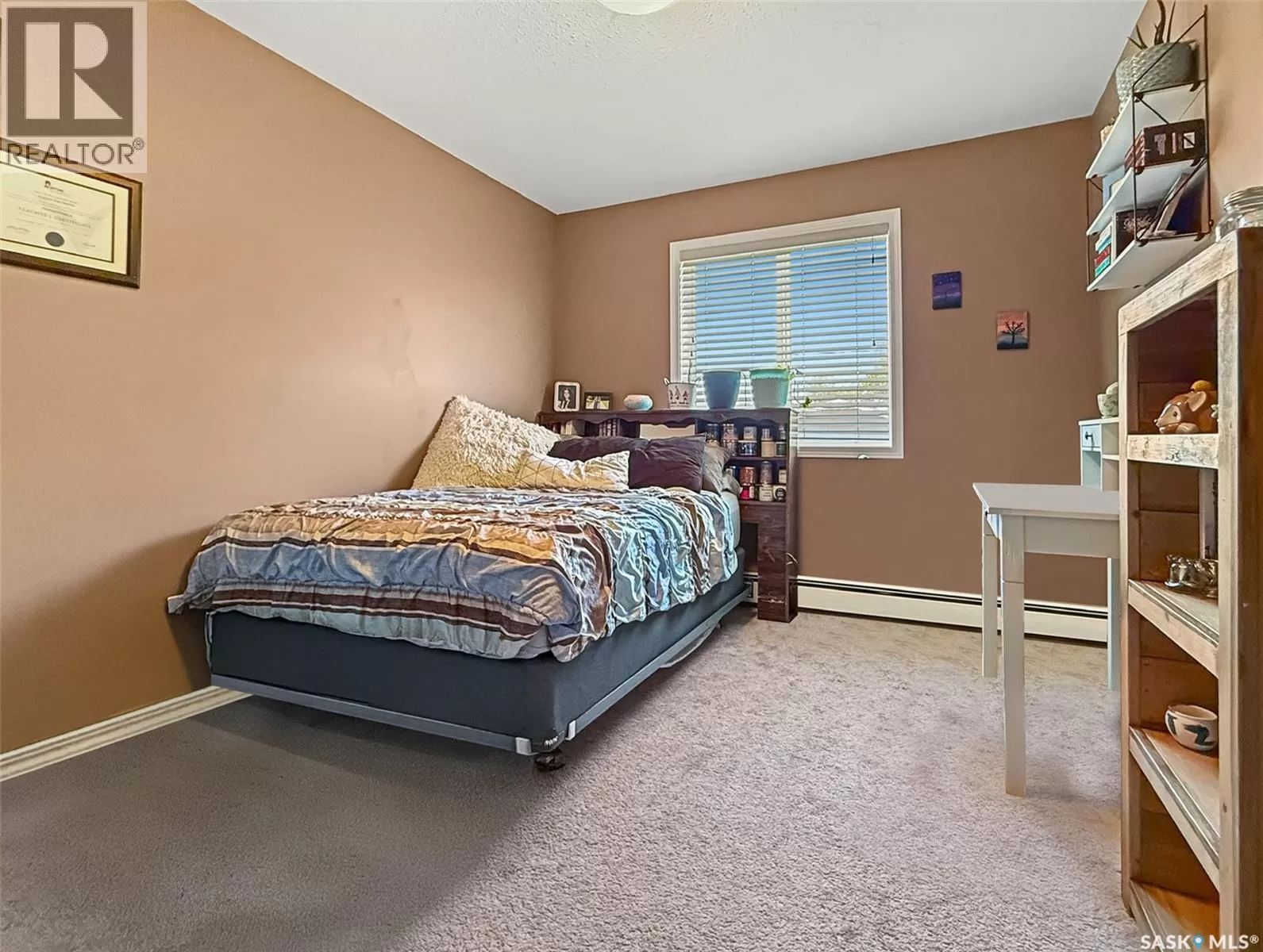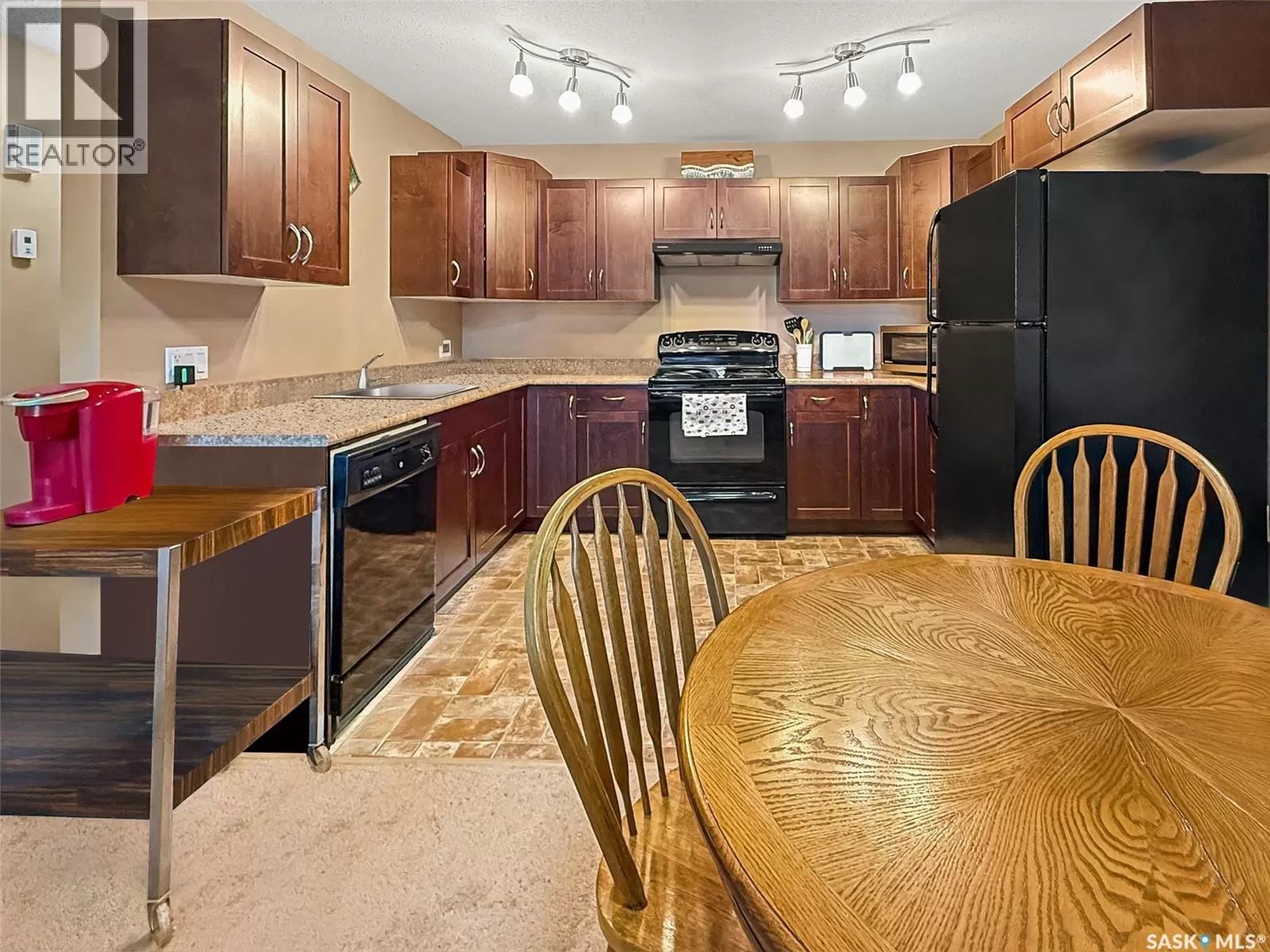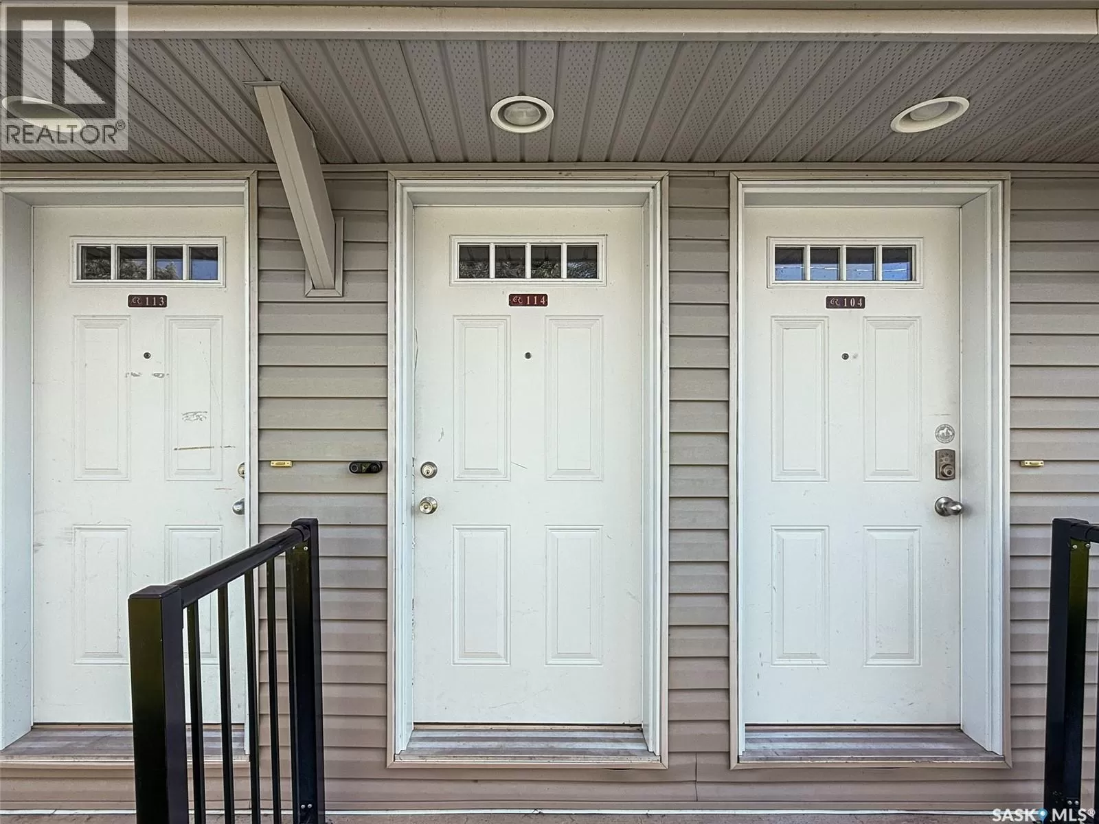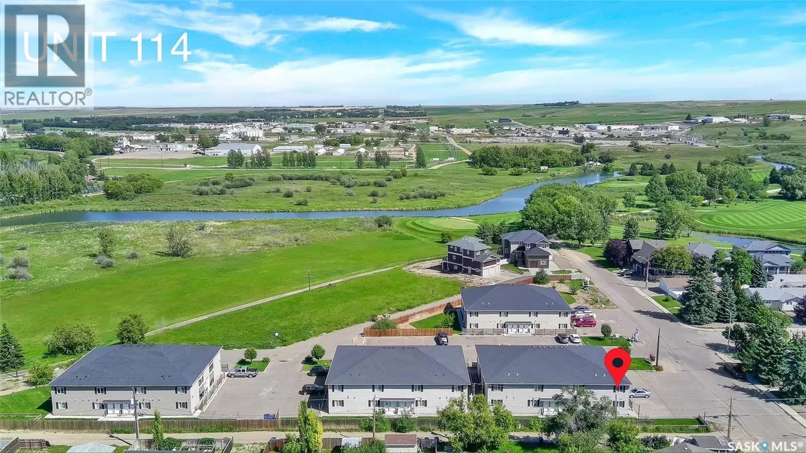 Welcome to 114-825 Gladstone St. E., an exquisite condo that combines modern construction with an open-concept layout in a prime location. Situated near Swift Current Creek, this property offers easy access to scenic walking paths, the Chinook Golf Course, and Riverside Park. Constructed in 2014, this inviting condo community is designed for contemporary living. Upon entering, you'll be greeted by a spacious open-concept layout featuring a U-shaped kitchen equipped with rich cabinetry, including a dishwasher, stove, and fridge. The kitchen provides ample space for an island, seamlessly connecting to a generous dining area and a bright living room with a balcony sporting an excellent view. The suite includes two generously sized bedrooms. The master bedroom features a four-piece bathroom with dual access, functioning as an en suite while remaining accessible from the second door. Additionally, a two-piece bathroom is conveniently located alongside a laundry room, which includes an air exchanger for optimal air circulation. Further along the hall, discover a versatile den adaptable for use as an office, playroom, workout area, or flex space. This unit boasts PVC windows and efficient boiler heating, included in your condo fees along with common area insurance, water, and maintenance. Enjoy maintenance-free exterior living, with no need for snow shoveling or lawn care, allowing you to indulge in the comforts of a modern property and a carefree lifestyle. Nearby amenities include a grocery store, gas station, multiple parks, walking paths, a swimming pool, and a K-12 school, all within walking distance to the community college and downtown. Call today for more information or to book your personal viewing. (id:27476)