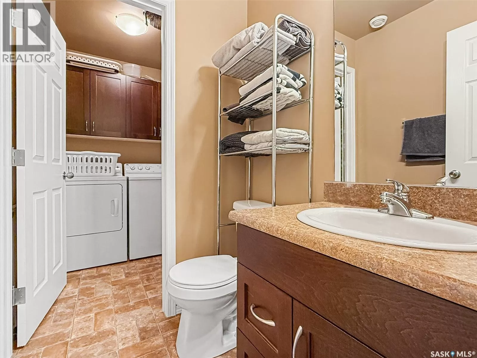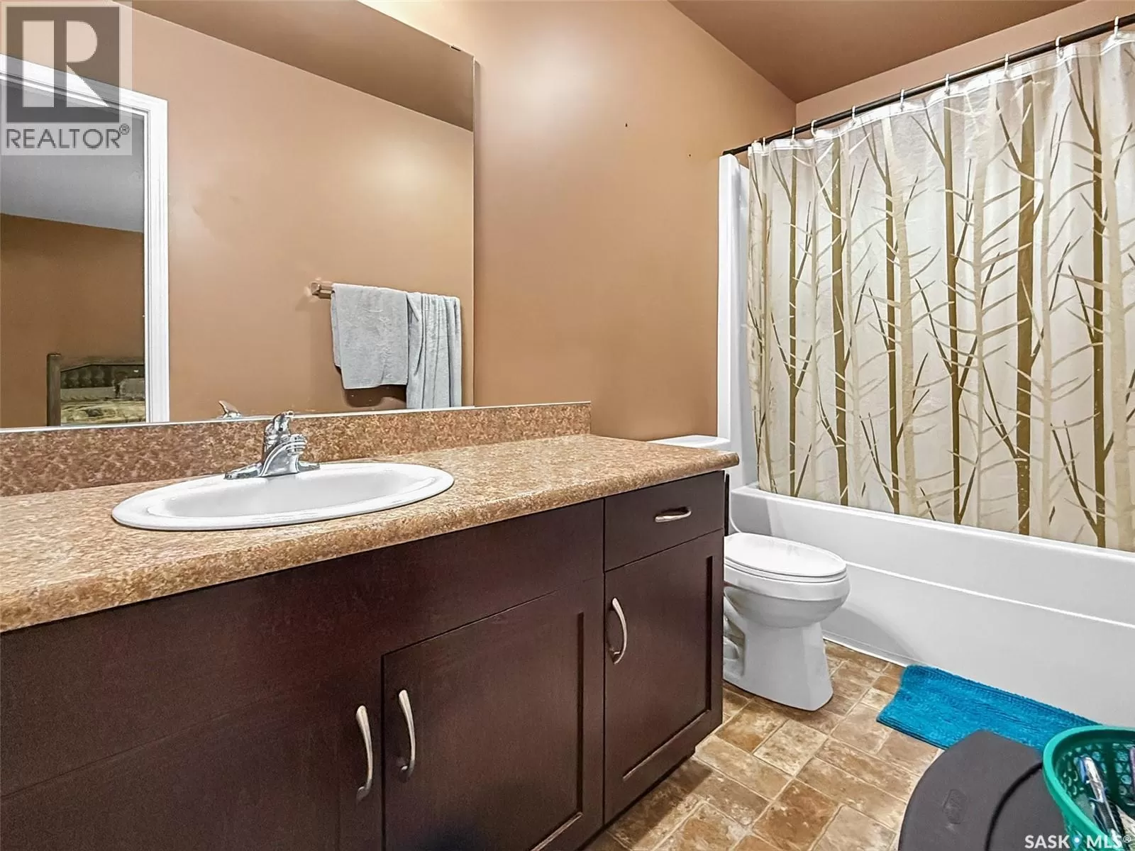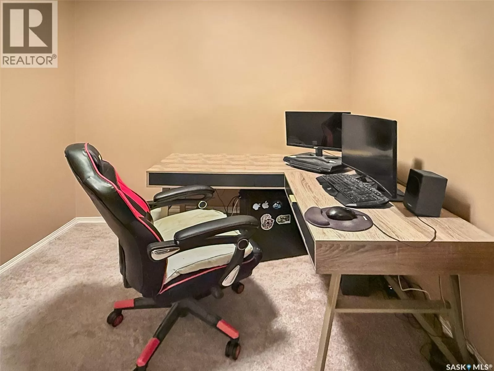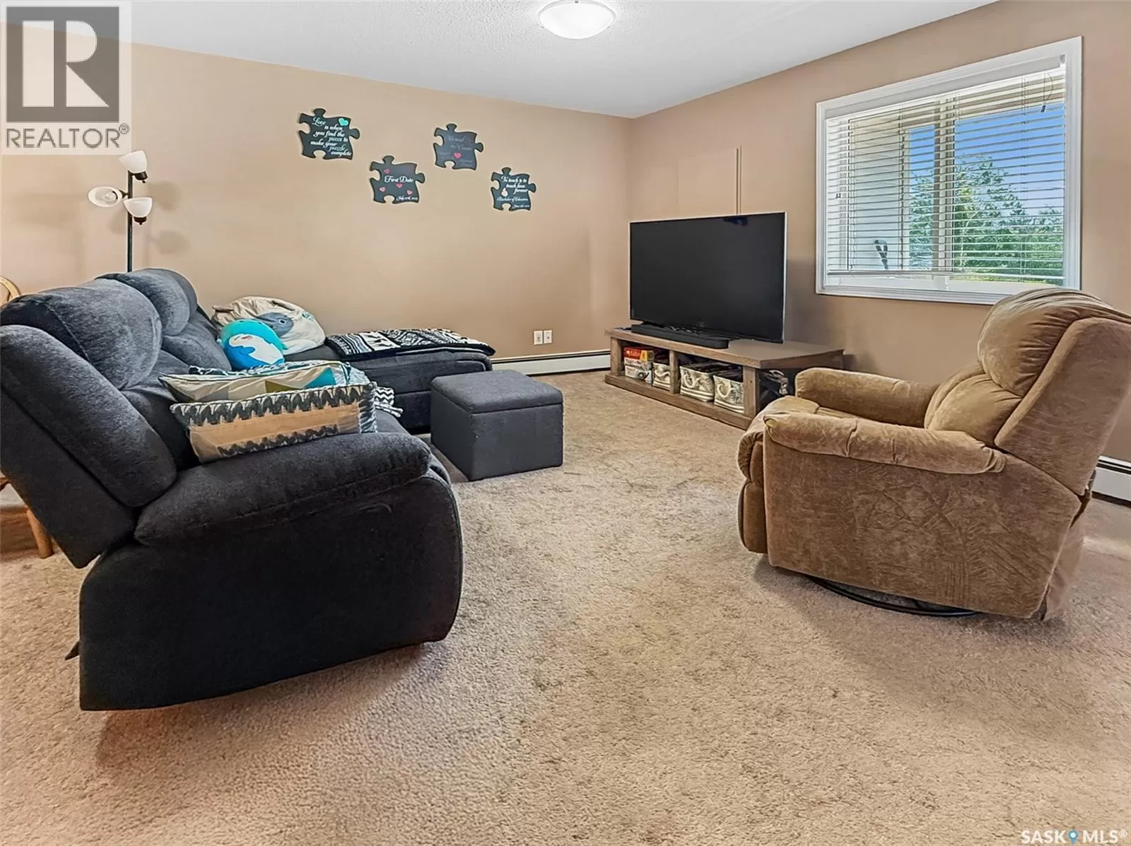 Welcome to 114-825 Gladstone St. E., an exquisite condo that combines modern construction with an open-concept layout in a prime location. Situated near Swift Current Creek, this property offers easy access to scenic walking paths, the Chinook Golf Course, and Riverside Park. Constructed in 2014, this inviting condo community is designed for contemporary living. Upon entering, you'll be greeted by a spacious open-concept layout featuring a U-shaped kitchen equipped with rich cabinetry, including a dishwasher, stove, and fridge. The kitchen provides ample space for an island, seamlessly connecting to a generous dining area and a bright living room with a balcony sporting an excellent view. The suite includes two generously sized bedrooms. The master bedroom features a four-piece bathroom with dual access, functioning as an en suite while remaining accessible from the second door. Additionally, a two-piece bathroom is conveniently located alongside a laundry room, which includes an air exchanger for optimal air circulation. Further along the hall, discover a versatile den adaptable for use as an office, playroom, workout area, or flex space. This unit boasts PVC windows and efficient boiler heating, included in your condo fees along with common area insurance, water, and maintenance. Enjoy maintenance-free exterior living, with no need for snow shoveling or lawn care, allowing you to indulge in the comforts of a modern property and a carefree lifestyle. Nearby amenities include a grocery store, gas station, multiple parks, walking paths, a swimming pool, and a K-12 school, all within walking distance to the community college and downtown. Call today for more information or to book your personal viewing. (id:27476)