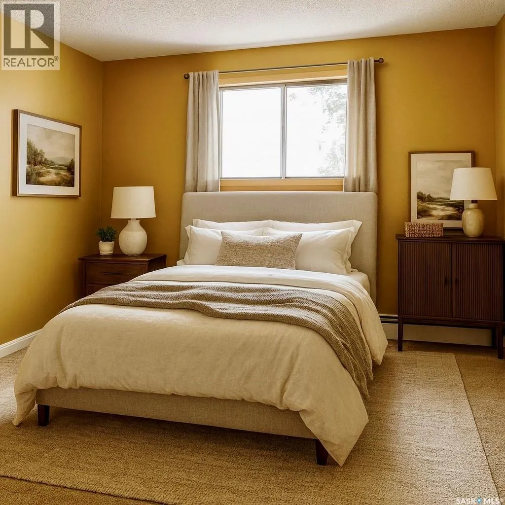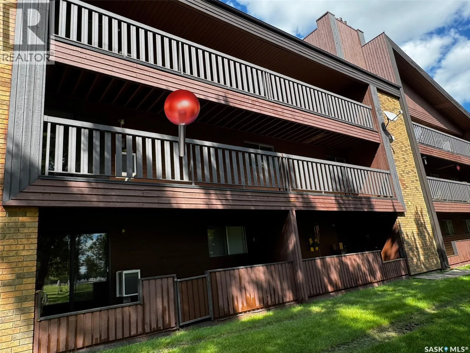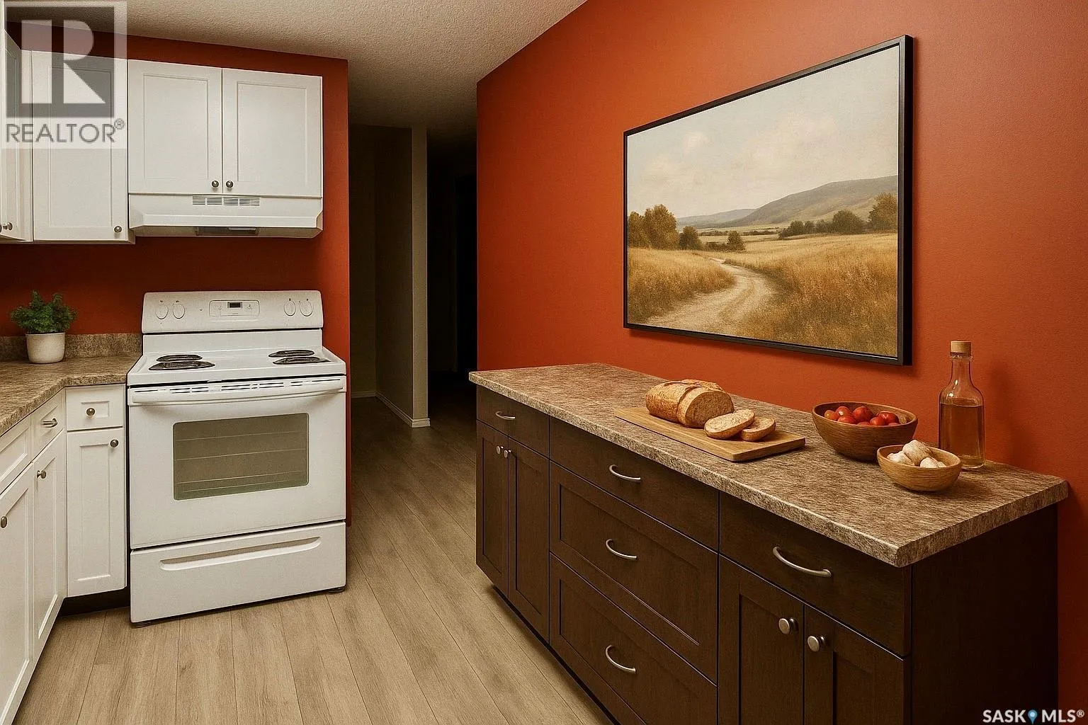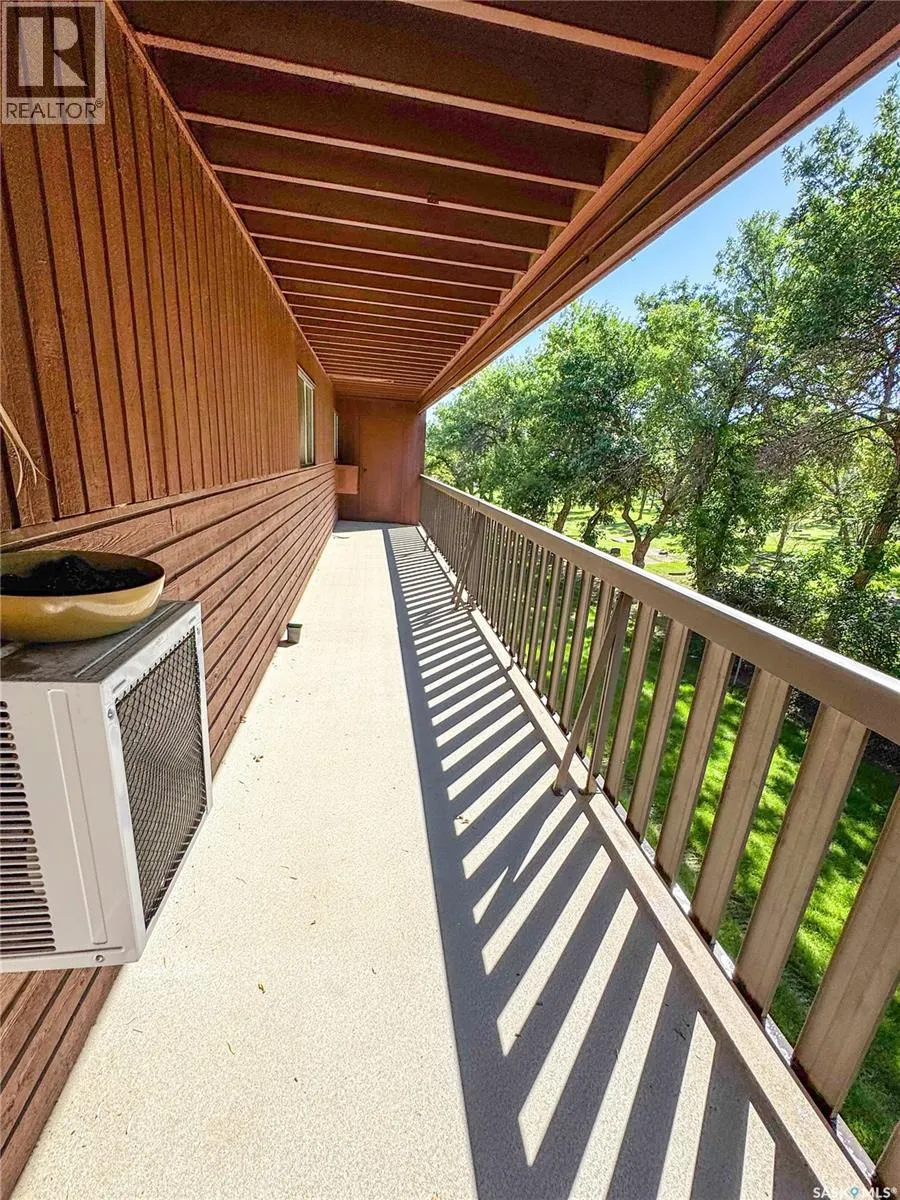 Welcome to this rarely available 2-bedroom, 2-bathroom condo boasting quiet south-facing views and 1,160 sq ft of comfortable living space. The spacious white kitchen offers ample cabinetry, generous counter space, and a full appliance package, seamlessly flowing into the oversized living and dining area. Step through the balcony doors onto your expansive 37-foot-long balcony, complete with convenient storage units at each end. Down the hall, you'll find a dedicated laundry space and two well-proportioned bedrooms. The sizable master suite is a true retreat, featuring its own 3-piece ensuite washroom, a wall air conditioner, and two large closets. This property presents an excellent opportunity for affordable living or a valuable addition to your revenue portfolio. Embrace the ease of condo living, where building maintenance, grass cutting, and snow removal are all taken care of for you. Conveniently located near the Aquatic Centre, various restaurants, Swift Current Comprehensive High School, and Irwin School. Call your REALTOR ® today and schedule your viewing! (id:27476)