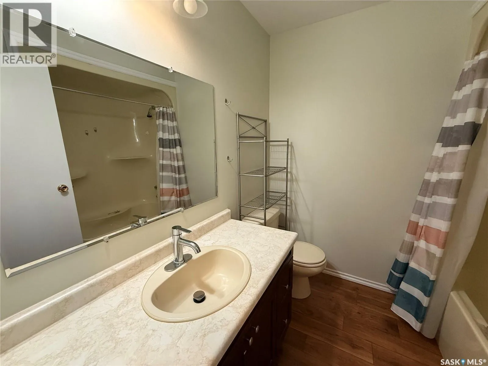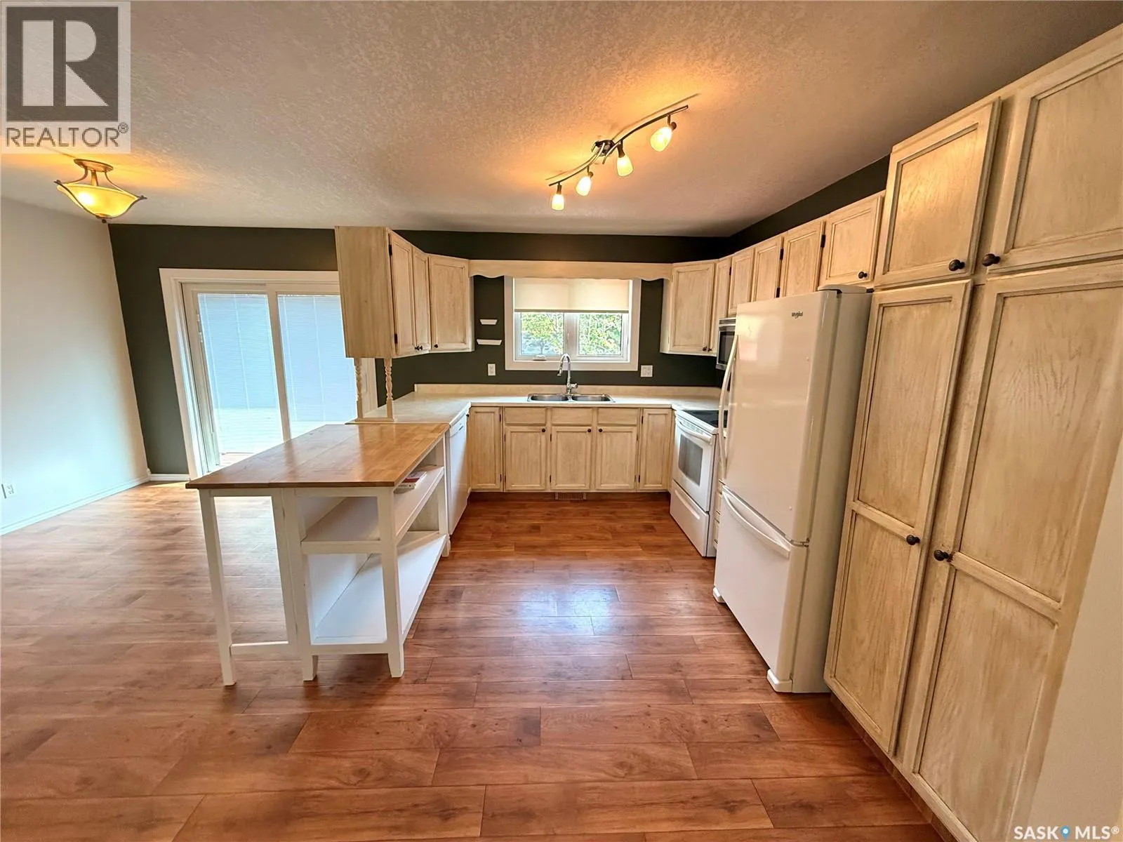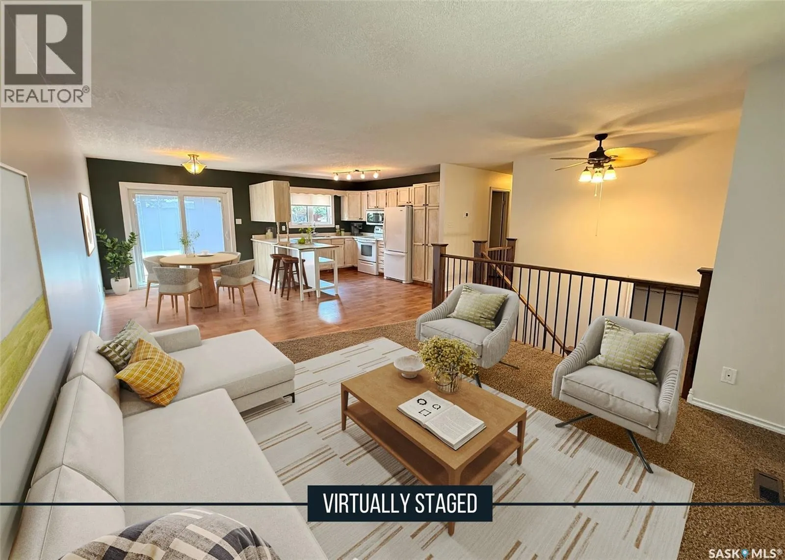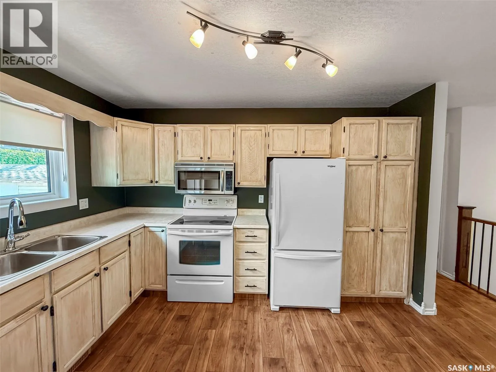 Updated Bi-Level in Northeast Swift Current â Close to Walking Paths & Downtown! If youâre looking for a move-in ready home in a prime location, this bi-level in the northeast has it allâmodern updates, spacious design & a backyard made for privacy. Nestled near walking paths & just a short walk to downtown, youâll enjoy convenience paired with comfort. Step inside to a bright entryway leading upstairs to the main floorâs open-concept layout. The U-shaped kitchen features pickled white oak cabinetry, a full appliance package & flows seamlessly into the generous dining area & oversized living room. Garden doors open to an east-facing deck, perfect for morning coffee or summer evenings. Down the hall are 3 bedrooms, including a primary with 2-piece ensuite, 2 additional well-sized bedrooms & a full 4-piece bath. The lower level offers fantastic bonus space with a large family room, an additional bedroom & a beautifully updated bathroom (2020). A versatile rec/media room is set up for a projector & screen, complete with a rear nook ideal for a home office. The laundry/mechanical room completes this level. This home has seen numerous upgrades: fresh paint in the living room, new shingles (2011), newer front & patio doors, updated soffit, fascia & eaves, main floor windows (2022), water softener (2018), central air (2021), plus vinyl plank & fresh paint in the primary. Outdoors, enjoy a fully landscaped yard with mature trees, a private deck & a large storage shed. Quick possession available! A fantastic blend of location, space & updatesâthis northeast bi-level is the perfect place to call home. (id:27476)