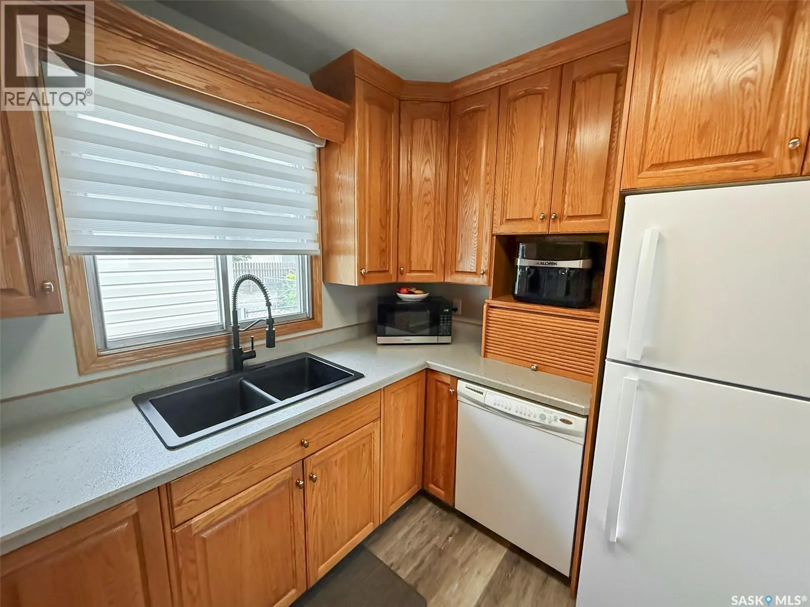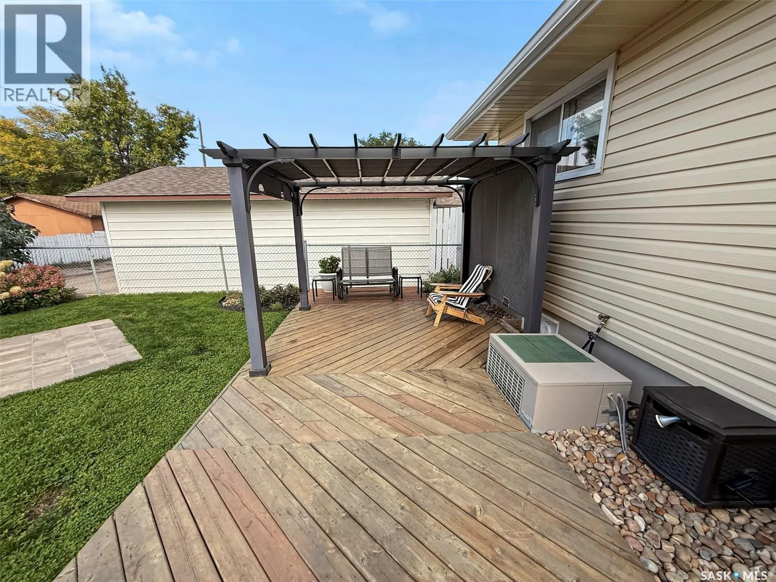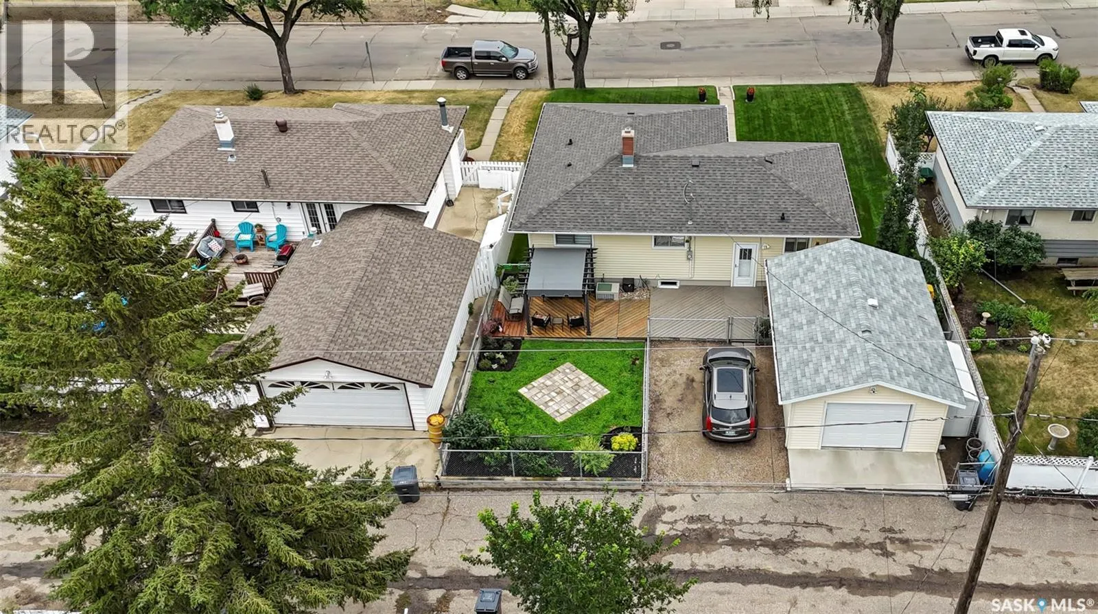 This 1,136 sq ft bungalow is pristine, immaculate, and move-in ready â a home that reflects years of meticulous care inside and out. Situated on a manicured, east-facing lot just steps from green space, the curb appeal shines with aluminum siding, NEWER shingles (2024) and a lush lawn. The NEWER front door greets you upon arrival! The main floor freshly painted in 2023 features updated vinyl plank flooring, carpet and boasts a spacious U-shaped custom oak kitchen with a full appliance package, dining area, and an oversized living room with oak hardwood and a large east-facing PVC window. Three bedrooms, including a comfortable primary, and a 4-piece bath with custom tiled tub surround complete this level. The fully developed basement offers a generous family room, 3-piece bath, den, laundry, utility room, and abundant storage â three large storage cabinets included. Step outside to a rear wood deck that spans the entire length of the house, complete with pergola, a fully fenced yard with no-maintenance fencing, shrubs, and underground sprinklers front and back. A 16.2â x 24.5â insulated garage (2011) plus gravel drive provides ample parking. Additional upgrades include: Updated toilets, kitchen sink and tap, vanities, doors, and trims, blinds throughout, newer rear screen door. Electrical updates completed with garage build in 2011 including a mast. Heat equalized at $65/m. Located in a highly desirable area, youâre just steps from the Chinook Pathway, Chinook Golf Course, and close to the Co-op grocery, liquor store, and fuel station. This home truly blends quality, care, and location â a rare find you wonât want to miss. QUICK possession is possible! Gas heating costs are very reasonable! (id:27476)
