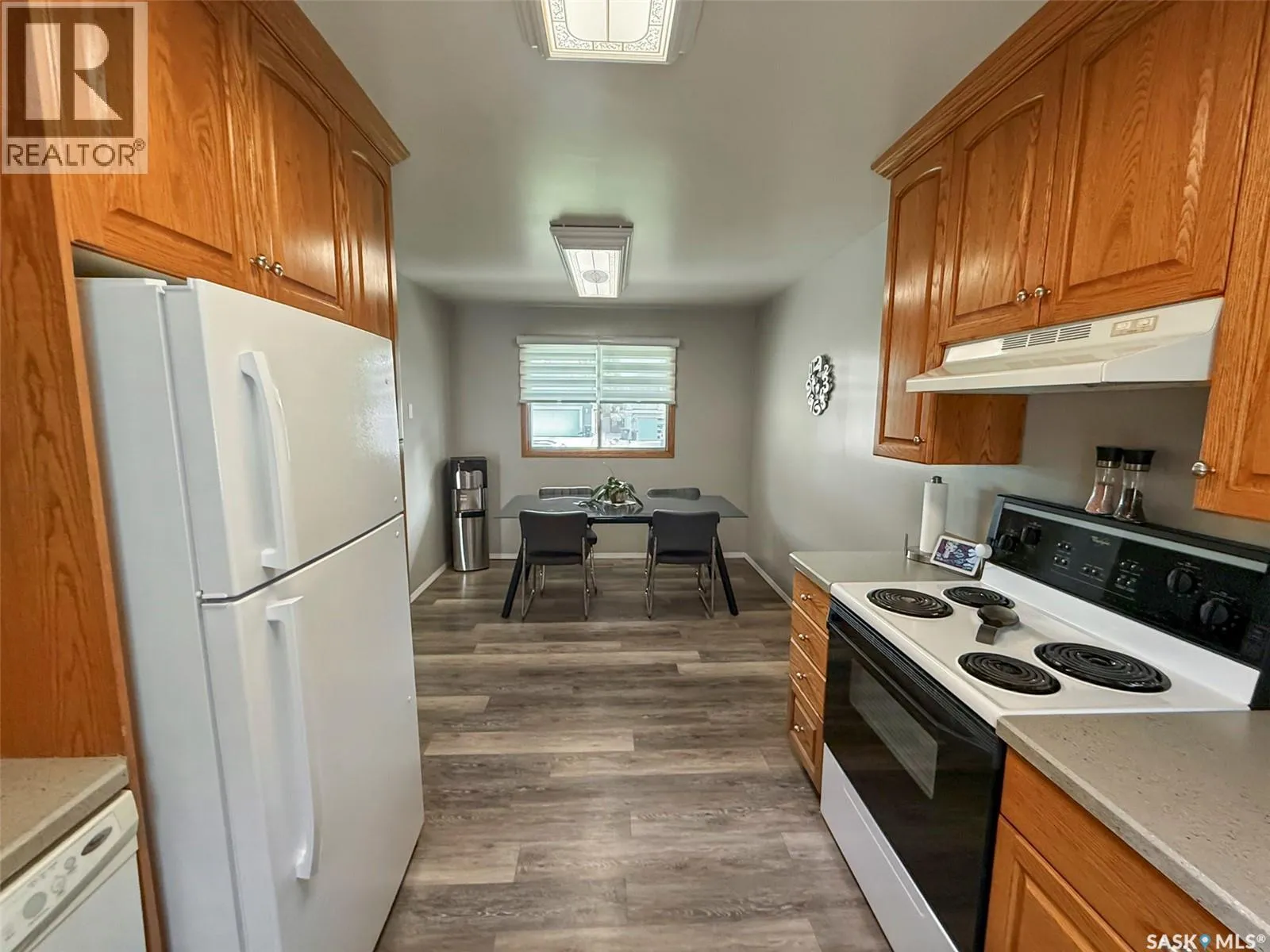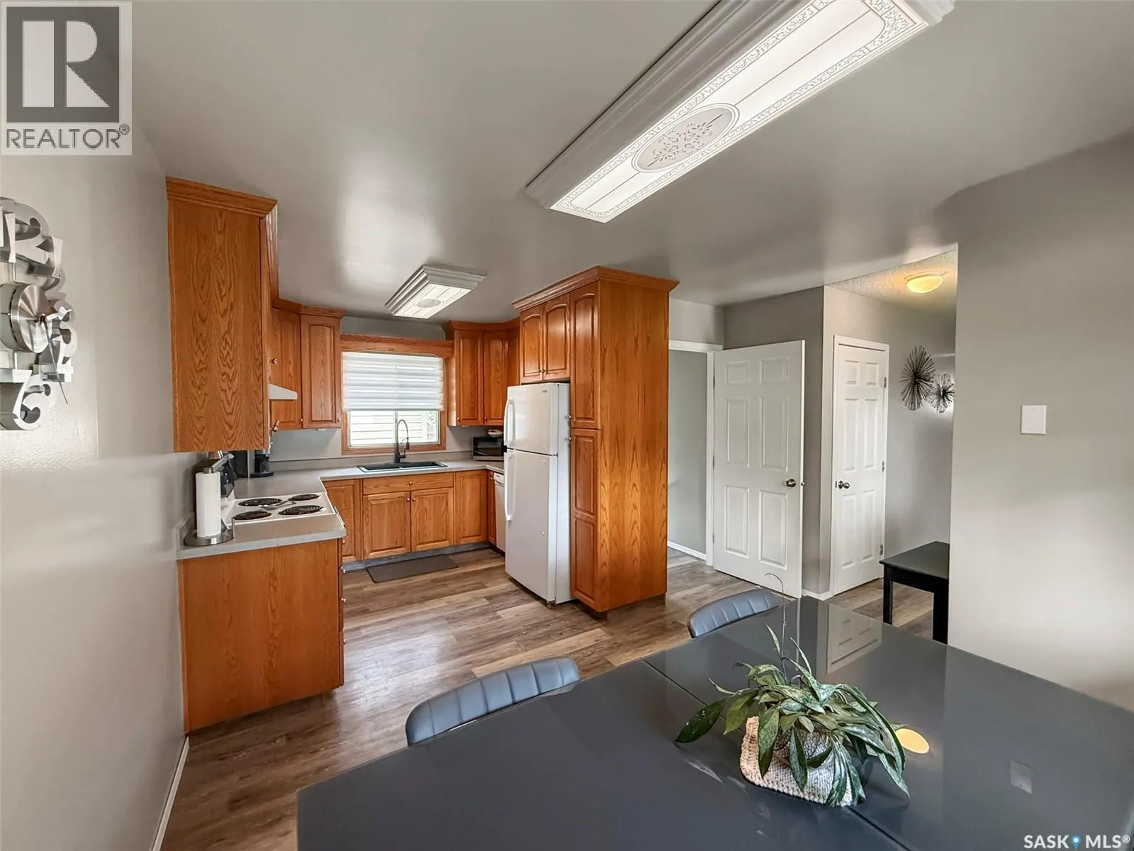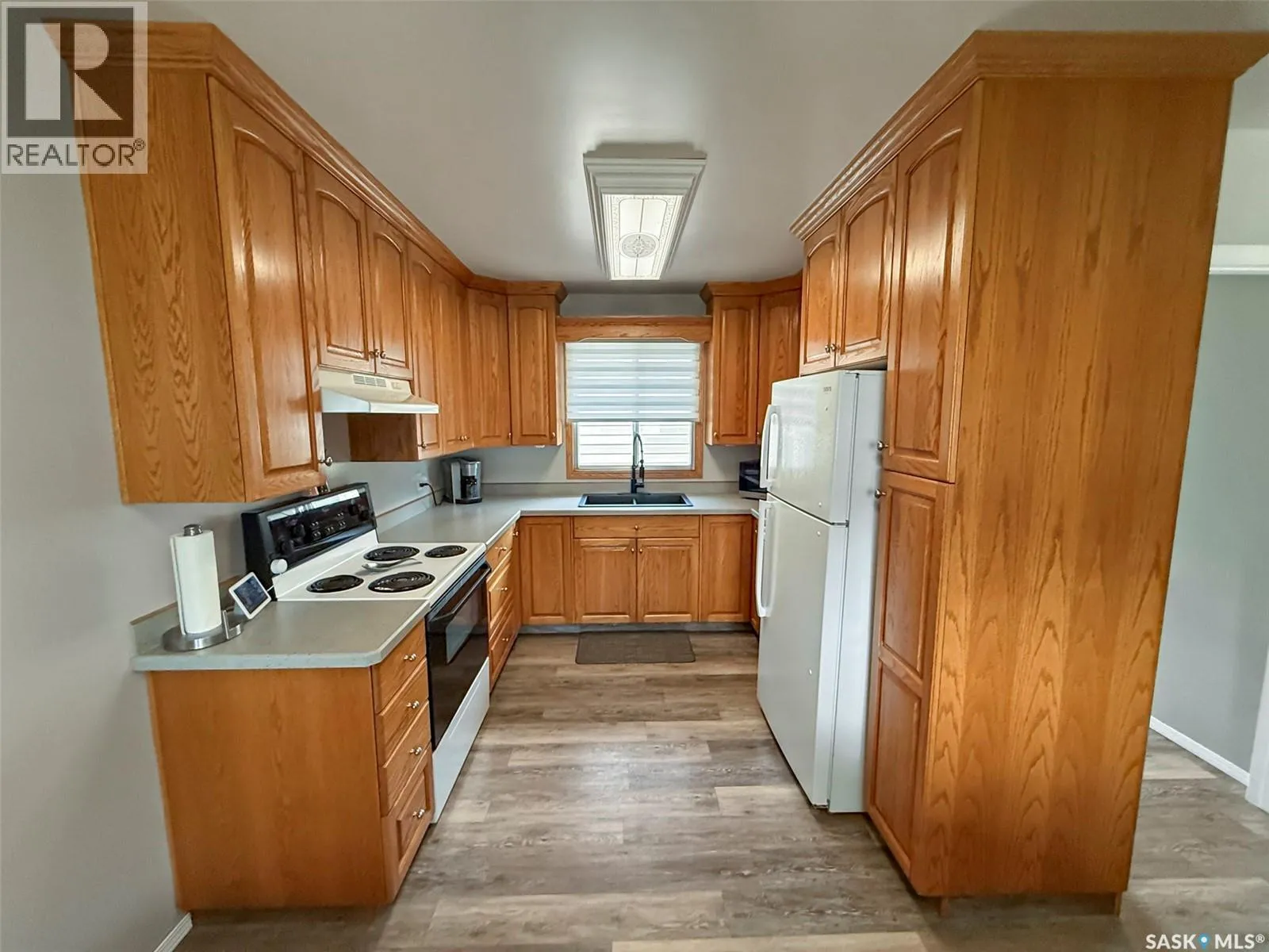 This 1,136 sq ft bungalow is pristine, immaculate, and move-in ready â a home that reflects years of meticulous care inside and out. Situated on a manicured, east-facing lot just steps from green space, the curb appeal shines with aluminum siding, NEWER shingles (2024) and a lush lawn. The NEWER front door greets you upon arrival! The main floor freshly painted in 2023 features updated vinyl plank flooring, carpet and boasts a spacious U-shaped custom oak kitchen with a full appliance package, dining area, and an oversized living room with oak hardwood and a large east-facing PVC window. Three bedrooms, including a comfortable primary, and a 4-piece bath with custom tiled tub surround complete this level. The fully developed basement offers a generous family room, 3-piece bath, den, laundry, utility room, and abundant storage â three large storage cabinets included. Step outside to a rear wood deck that spans the entire length of the house, complete with pergola, a fully fenced yard with no-maintenance fencing, shrubs, and underground sprinklers front and back. A 16.2â x 24.5â insulated garage (2011) plus gravel drive provides ample parking. Additional upgrades include: Updated toilets, kitchen sink and tap, vanities, doors, and trims, blinds throughout, newer rear screen door. Electrical updates completed with garage build in 2011 including a mast. Heat equalized at $65/m. Located in a highly desirable area, youâre just steps from the Chinook Pathway, Chinook Golf Course, and close to the Co-op grocery, liquor store, and fuel station. This home truly blends quality, care, and location â a rare find you wonât want to miss. QUICK possession is possible! Gas heating costs are very reasonable! (id:27476)