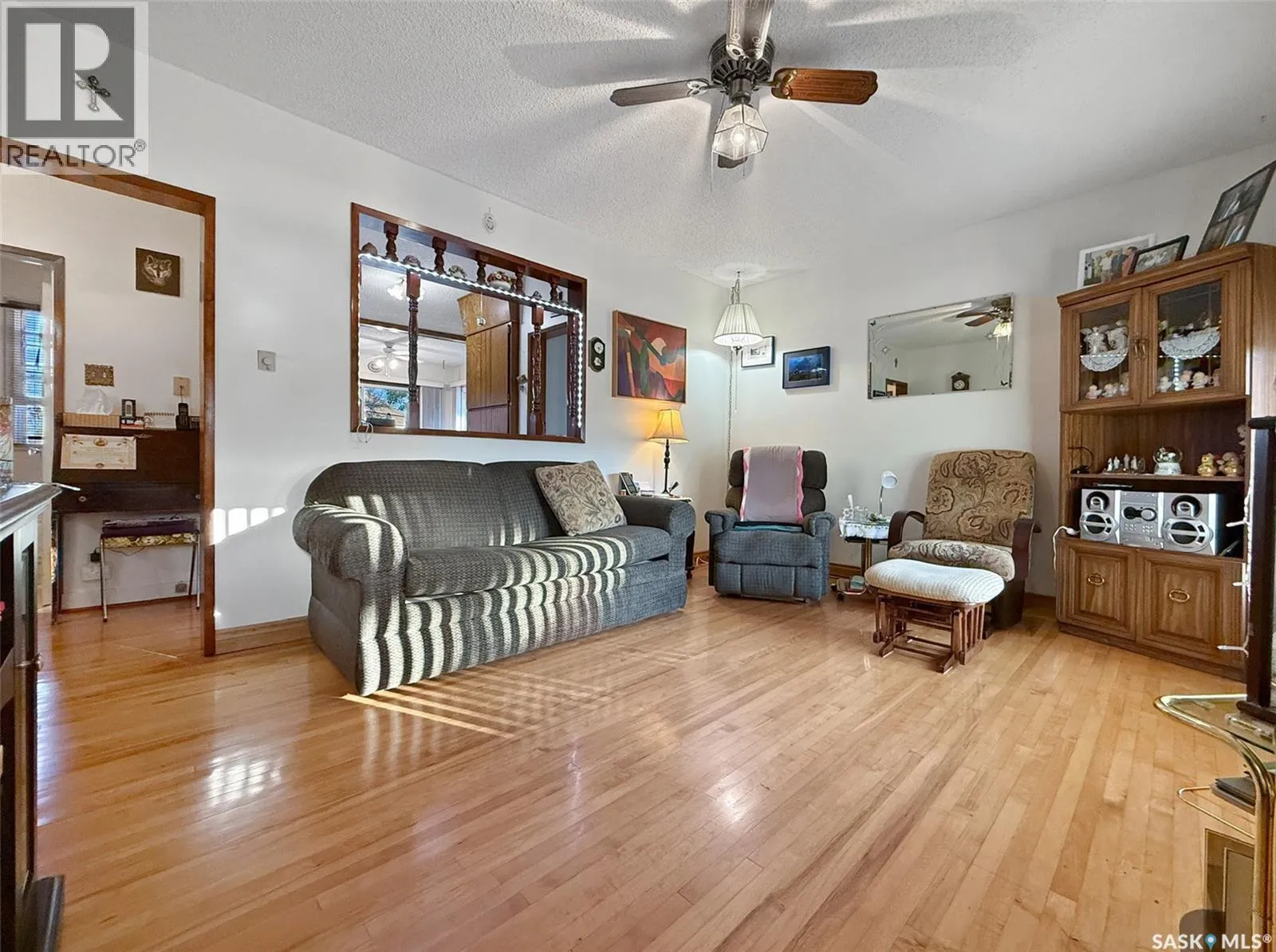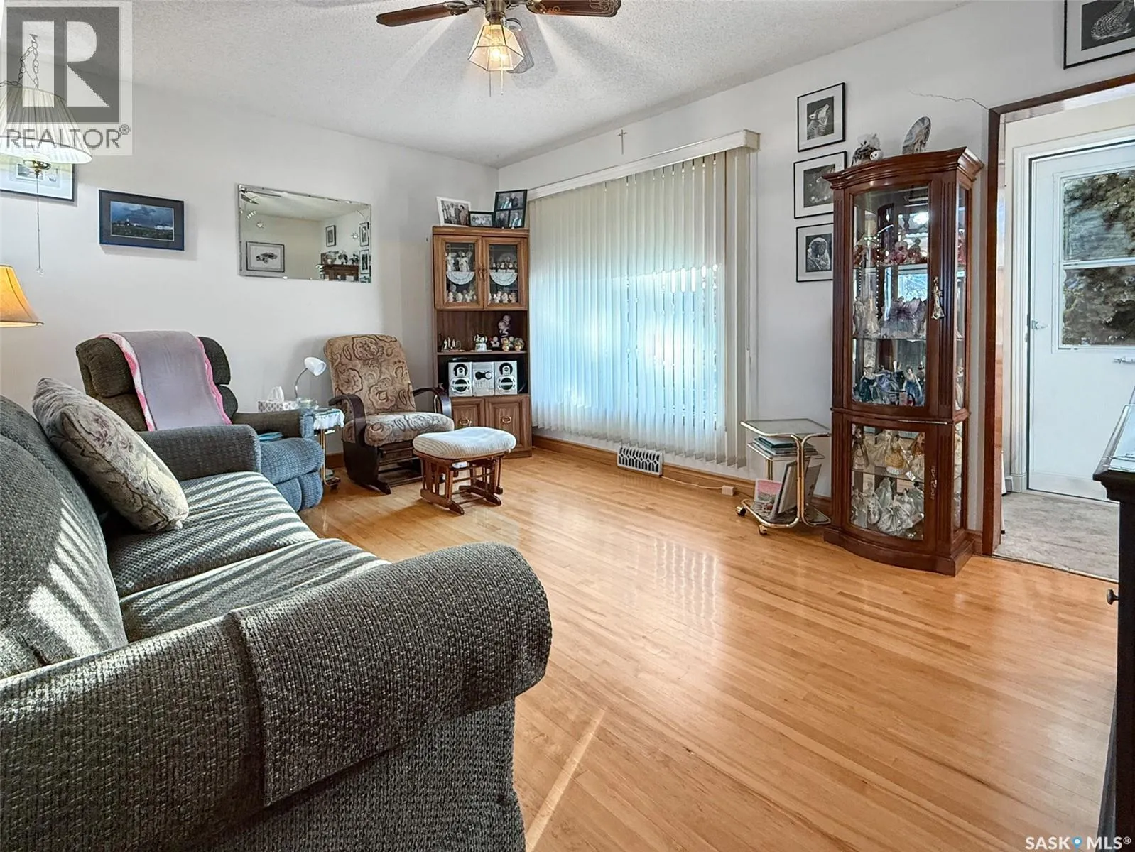Presenting 359 5th Ave. NW, a meticulously maintained bungalow perched atop a hill, conveniently located near downtown, a K-8 school, parks, and various amenities. This home has been lovingly cared for by the same owner for many years, with consistent attention to its upkeep. Upon entering, you are welcomed by a cozy front porch entering into the spacious living room offering a pleasant view of the yard. Adjacent to this space is a generously sized eat-in kitchen, enhanced by an addition that provides ample room for entertaining. This kitchen features plenty of cabinetry and countertop space, along with a dining area that overlooks the deck, accessible through back patio doors. The home's layout includes two comfortable bedrooms and a four-piece bathroom situated down the hallway. Descending to the lower level, you will discover a cozy family room, along with a utility/laundry/storage area that occupies the remainder of the basement. The exterior of the property boasts a well-maintained yard that is partially fenced, complete with a 10 x 12 shed and a back deck measuring 11'10" x 9'3". The front yard has been landscaped to feature âno maintenanceâ terrain along with a large driveway to accommodate plenty of offstreet parking. Numerous updates have been made over the years, including refinished hardwood floors, some updated windows, updated siding, and the installation of a water softener. Experience the charm of this mature neighbourhood, characterized by beautiful trees and an excellent location. This property offers a unique blend of comfort and convenience, making it an exceptional opportunity. Call today for more information or to book your personal viewing. (id:27476)