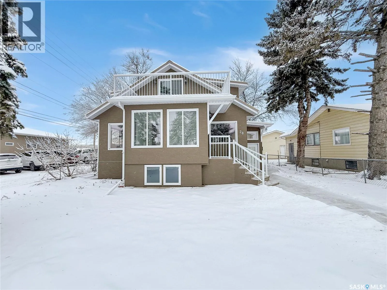 Public Remarks: Welcome to 28th 3rd Ave. NE, a stunning property in a prime location, just steps from downtown, a short block to the Great Plains College, and near scenic parks and walking paths. Step inside to find a BRAND-NEW kitchen connected to a cozy window filled breakfast nook with patio doors to a deck in the backyard, and with a butler's pantry with motion-activated lighting and two plug-ins for spare refrigerator/freezer and workstation. Leading off the kitchen is a den, and a bedroom with a walk-in closet. This level also includes a formal dining area, an oversized living room, a cozy front 4-season sunroom, and a three-piece bath/laundry room. The second level features three bedrooms, one of which has a front balcony and connects to the main bathroom via a Jack and Jill door. The primary suite at the rear boasts its own private balcony, 3 closets including a spacious motion activated lighting walk-in closet, and a fully renovated en suite. The third bedroom has its own walk-in closet with motion activated lighting. The open basement offers development potential with plumbing access for a washroom, space for 2-3 additional bedrooms, suite code basement windows, and a separate outdoor access. This newly renovated home features multiple storage rooms, a new forced air furnace, on demand hot water tank, new central air, and updated electrical service. The home has been gutted to the studs and fully refurbished including but not limited to a new metal roof, insulation upgrades, over-sized new windows, new exterior balconies and deck, sidewalks, newly painted walls, trim and doors, new LVP flooring/carpet, and complete renovations to the electrical and plumbing systems. Insulation upgrades enhance energy efficiency. In the backyard there is a 30AMP plug-in for RV use, which can be upgraded to a 50AMP for EV charging. Call today for more information! (id:27476)