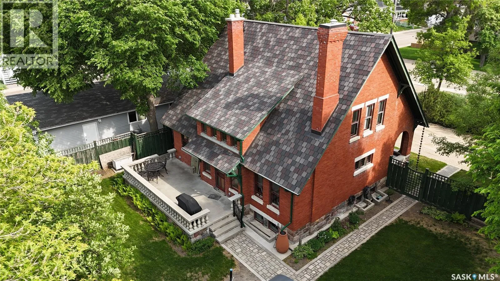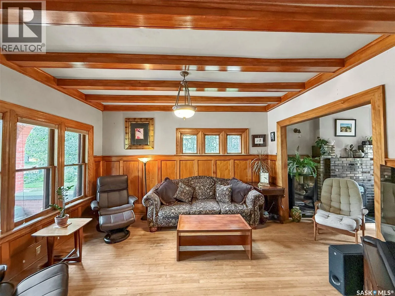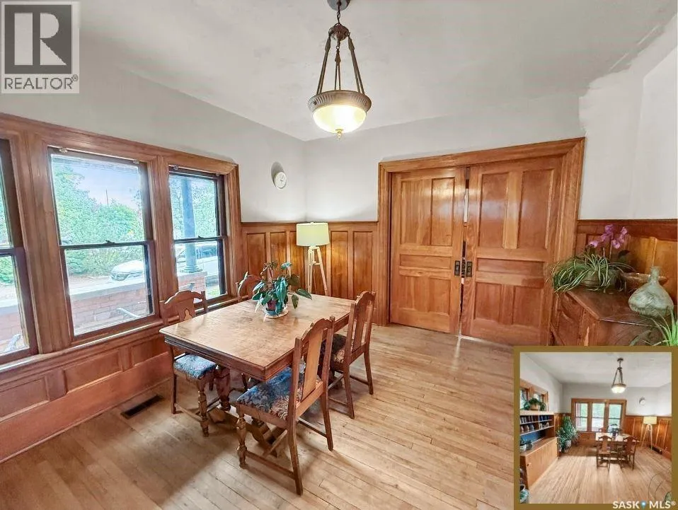 Welcome to Ashley Park Manor â a rare opportunity to own a beautifully restored piece of Swift Current history. Built in 1912 in the English Arts & Crafts style, this iconic double-brick home offers 2,104 sq ft of character-rich space, perfectly blending timeless charm with modern updates. Ideally located in the heart of Ashley Park, just steps from Elmwood Park and the Chinook Parkway, this home sits on a mature oversized lot with an inviting curved drive & rebuilt covered verandah. Lovingly refurbished inside and out: foundation fully reinforced, all-newer sewer & plumbing lines (including to the street), upgraded electrical throughout, lifetime shingles, & restored or rebuilt original windows. Heating equalized $90/m Inside youâll find original hardwoods and millwork (maple on main floor, fir on 2nd) wainscotting, leaded glass & decorative ceiling beams in the great room. The grand entry hosts a stately staircase, flanked by two sets of wood sliding doors opening to a formal dining room and a spacious living area with a sitting room behind that features a cozy gas fireplace with refaced brick. A 2-pc bath at the rear echoes the homeâs classic elegance. The kitchen includes a full stainless steel appliance packageâfeaturing a premium BlueStar gas rangeâand awaits your finishing touches for cabinetry, flooring, and trim. Upstairs offers three bedrooms, including a spacious primary with dual closets and access to a sunny second-level sunroomâperfect for a future ensuite. The main 4-pc bath blends vintage charm with modern comfort, featuring classic hex tile alongside fully updated contemporary fixtures and finishes. The lower level features a clean mechanical area with high-efficiency furnace, on-demand hot water, reverse osmosis, softener, air filter, laundry, and ample storage. The peaceful yard includes stonework, concrete patio, NG BBQ hookup, and storage sheds. A true Swift Current landmarkârestored with care and ready for its next chapter. (id:27476)