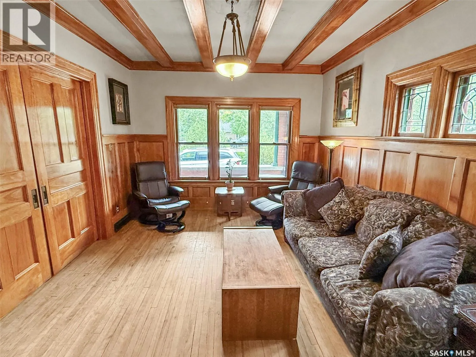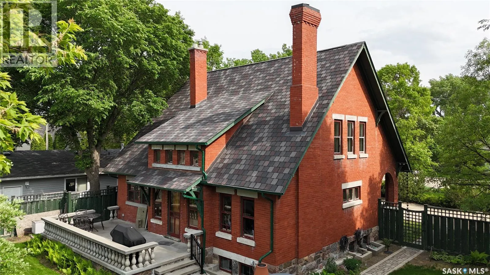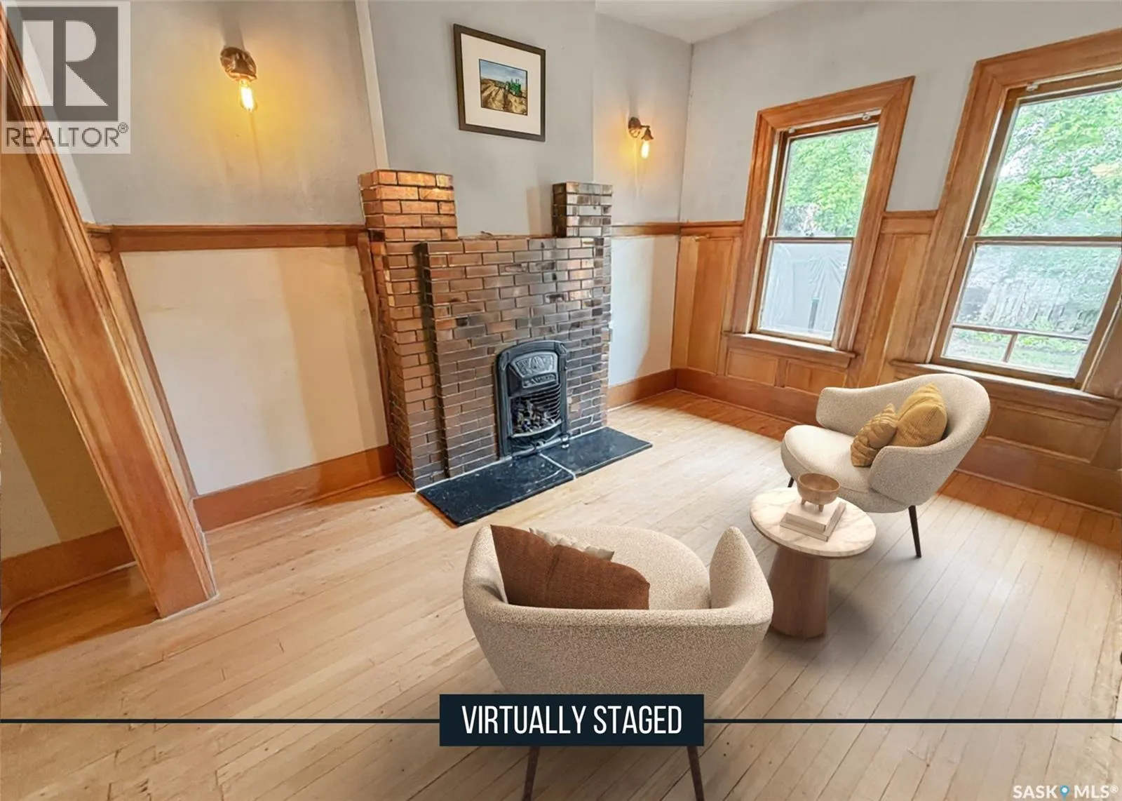 Welcome to Ashley Park Manor â a rare opportunity to own a beautifully restored piece of Swift Current history. Built in 1912 in the English Arts & Crafts style, this iconic double-brick home offers 2,104 sq ft of character-rich space, perfectly blending timeless charm with modern updates. Ideally located in the heart of Ashley Park, just steps from Elmwood Park and the Chinook Parkway, this home sits on a mature oversized lot with an inviting curved drive & rebuilt covered verandah. Lovingly refurbished inside and out: foundation fully reinforced, all-newer sewer & plumbing lines (including to the street), upgraded electrical throughout, lifetime shingles, & restored or rebuilt original windows. Heating equalized $90/m Inside youâll find original hardwoods and millwork (maple on main floor, fir on 2nd) wainscotting, leaded glass & decorative ceiling beams in the great room. The grand entry hosts a stately staircase, flanked by two sets of wood sliding doors opening to a formal dining room and a spacious living area with a sitting room behind that features a cozy gas fireplace with refaced brick. A 2-pc bath at the rear echoes the homeâs classic elegance. The kitchen includes a full stainless steel appliance packageâfeaturing a premium BlueStar gas rangeâand awaits your finishing touches for cabinetry, flooring, and trim. Upstairs offers three bedrooms, including a spacious primary with dual closets and access to a sunny second-level sunroomâperfect for a future ensuite. The main 4-pc bath blends vintage charm with modern comfort, featuring classic hex tile alongside fully updated contemporary fixtures and finishes. The lower level features a clean mechanical area with high-efficiency furnace, on-demand hot water, reverse osmosis, softener, air filter, laundry, and ample storage. The peaceful yard includes stonework, concrete patio, NG BBQ hookup, and storage sheds. A true Swift Current landmarkârestored with care and ready for its next chapter. (id:27476)
