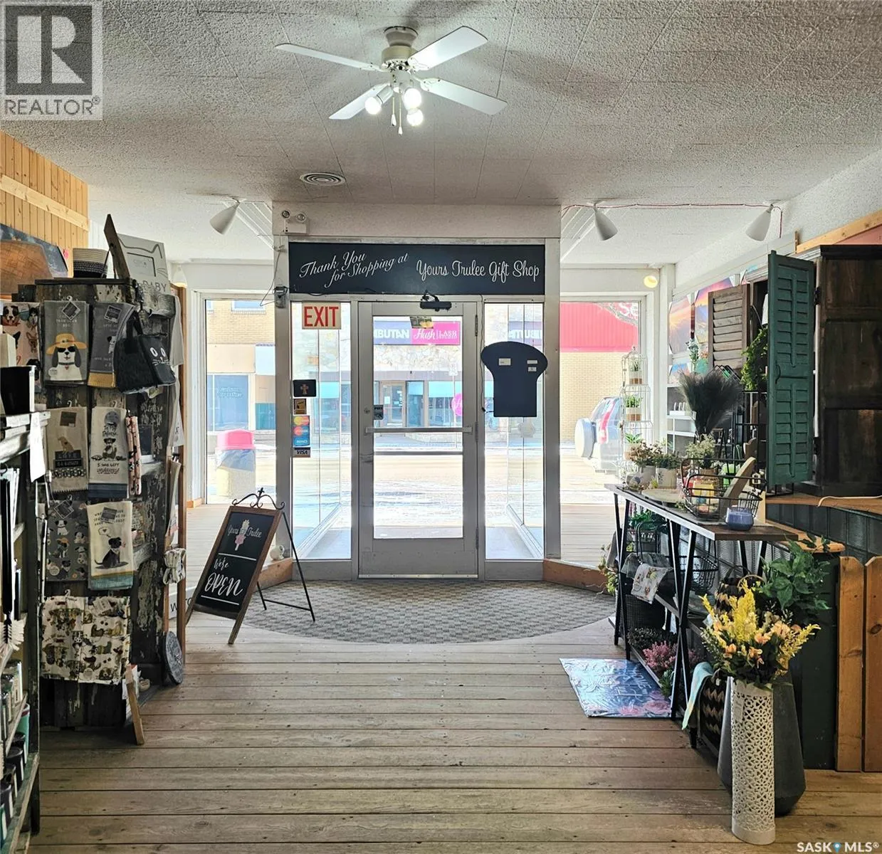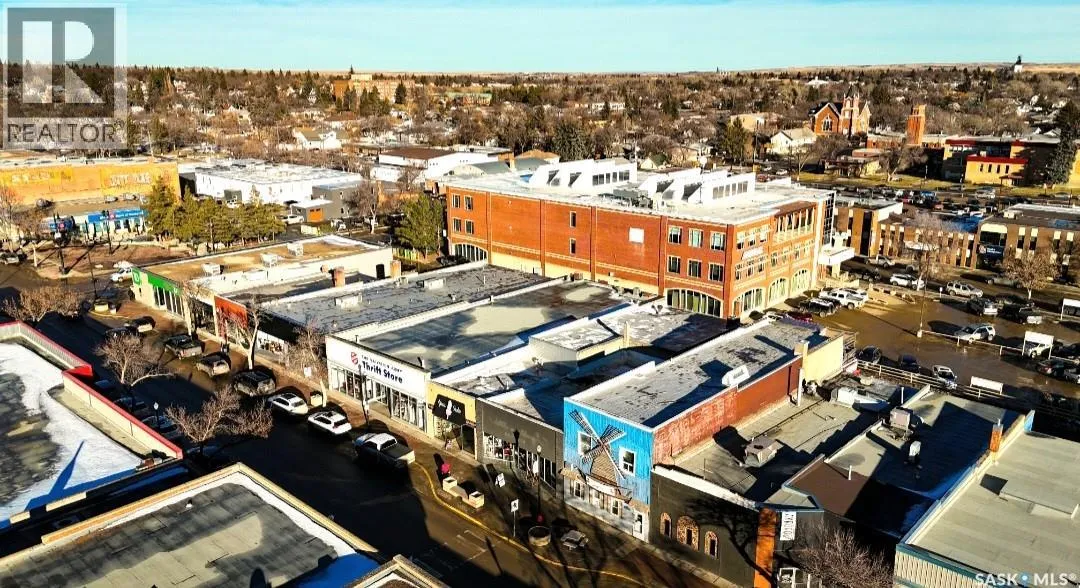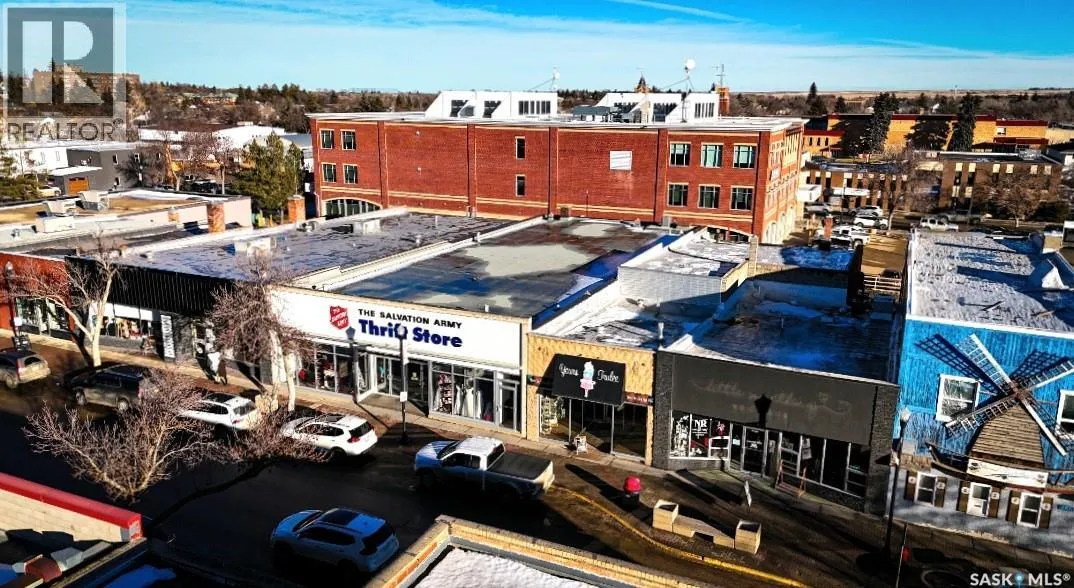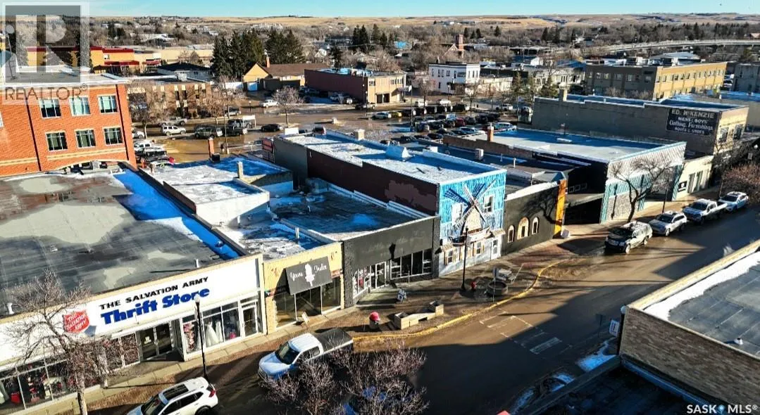 Your new creative business opportunity awaits! Positioned right in the middle of the downtown Swift Current business core and offering 3,320 sq ft of open commercial space with unbeatable foot + vehicle traffic exposure, this single storey building features a brick + stone exterior, a low slope roof, 9.5 ft ceilings, an employee washroom, ample storage/work space, dual partial basements for additional storage, classic wood floors and a natural gas fireplace. This space also highlights two window staging display areas, to showcase your business attributes. These large, updated windows contain a protective UV tint, to avoid fading of window displayed products. New ownership headaches are alleviated, as this building is equipped with 200 amp electrical service, an HE furnace (2017), central air conditioning (2018), updated water lines, and an updated foam roof (approx 10 years ago) to prevent any issues. This historic building has been very well maintained and is suitable for a variety of business ideas, one of which could possibly be to build separate rooms for independent leased spaces! Located on one of the main through streets, leading into the downtown area, this highly visible gem of a business opportunity is priced at approximately $90/sq ft for all of this! Please call for additional details and to schedule your private tour. (id:27476)