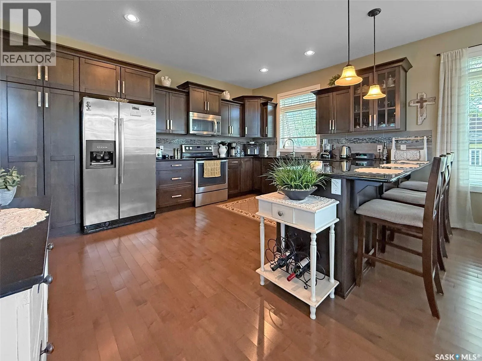 Set on four city lots at the edge of Swift Current, this exceptional custom-built bungalow delivers the privacy and âacreage-in-the-cityâ feel youâve been dreaming ofâwithout sacrificing proximity to amenities. Tucked into a mature shelter belt and overlooking the creek and open field beyond, the setting is tranquil and secluded, yet youâre just steps to walking paths, tennis courts, and minutes to downtown. Spanning 1,709 sq. ft., this luxurious home was designed by a contractor as their primary residence, with quality evident throughout. Inside, 9â ceilings, oversized windows, hardwood flooring, and pot lights create an elevated, airy atmosphere. The kitchen is a standoutâgranite countertops, an inviting sit-up island, and bright east-facing windows make it as functional as it is beautiful: truly a kitchen âfor her.â The dining area is wrapped in windows with serene yard views, flowing seamlessly into the spacious living room. Youâll also appreciate the main-floor laundry, plus a discreet 2-piece powder room. Three main-floor bedrooms include a generous primary suite, with a walk-in closet and ensuite. The second main floor bedroom also houses a walk-in closet and en suite, both rooms enhanced with added insulation for exceptional privacy. Downstairs offers a large flex space ideal for a gym or games area, a spacious family room, two additional bedrooms with large windows, and a full bath with tiled walk-in shower.For him, the parking and shop space are simply unmatched: a 26â x 26â heated, insulated attached garage and an incredible 30â x 50â heated shop (2014) with 7-vehicle capacity, 12â ceilings, tinned interior, washroom, kitchenette/man-cave. Outdoors, enjoy sitting areas on three sides, two substantially covered decks, underground sprinklers, additional asphalt parking, and peace of mind with optimal gradingâraised above regulation. Subdivision potential into two lots adds even more value to this rare offering. Call to request the detailed information pkg (id:27476)