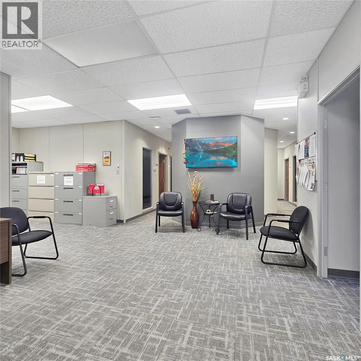 Downtown Swift Current With close to 9,500 sq ft of beautiful, upper end finished office space and located in one of the most prominent business blocks in downtown Swift Current, this professional top floor business center is almost at full occupancy and is accompanied with a long-standing anchor tenant. Encompassing a vast amount of space on 1st Ave NE, the entire top floor of buildings 137 (1995 build), 145 (1966 build) + 151 (1980 build) feature concrete block framing with a concrete foundation, classic brick + stucco exterior, double glazed aluminum windows, 10' ceiling heights + paved alley way accessibility, coupled with a 50 x 115 parking lot (121 1st Ave NE). The main entrance is equipped with a Savaria V-1504 vertical platform lift to carry one wheelchair + one passenger to the main reception area. In 2016, an 1,100+ sq ft addition was built at the rear of the building for additional professional office space. Inside are three kitchenettes, washrooms, a common copier room, a large reception are with seating, plenty of file storage space, a classy boardroom with its own kitchenette, along with multiple professional meeting/office spaces. This professional business center is literally turnkey, with the following improvements/updates completed over the past 6 years: an entire new roof (2022) with a new skylight, 3 new rooftop units (2020 & 2025), an exterior ladder to meet safety regulations, new flooring and paint (2025), along with updated light fixtures and ballasts (2025) with LED lighting (2025). This business center also provides an abundance of windows for its tenants, forced air natural gas heating, central air conditioning, 400 amp electrical service + modern, key fob entry for security. Together with its premium + turnkey commercial space with upgrades + improvements, situated in a superior + established location, with a long standing anchor tenant makes for a great long-term investment for the right investor. Please inquire for additional details. (id:27476)